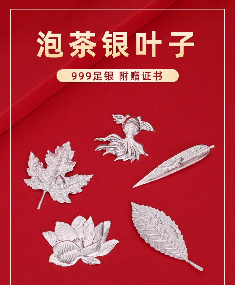 Pure Silver 999 Tea Set Silver Leaf Silver Arowana Style