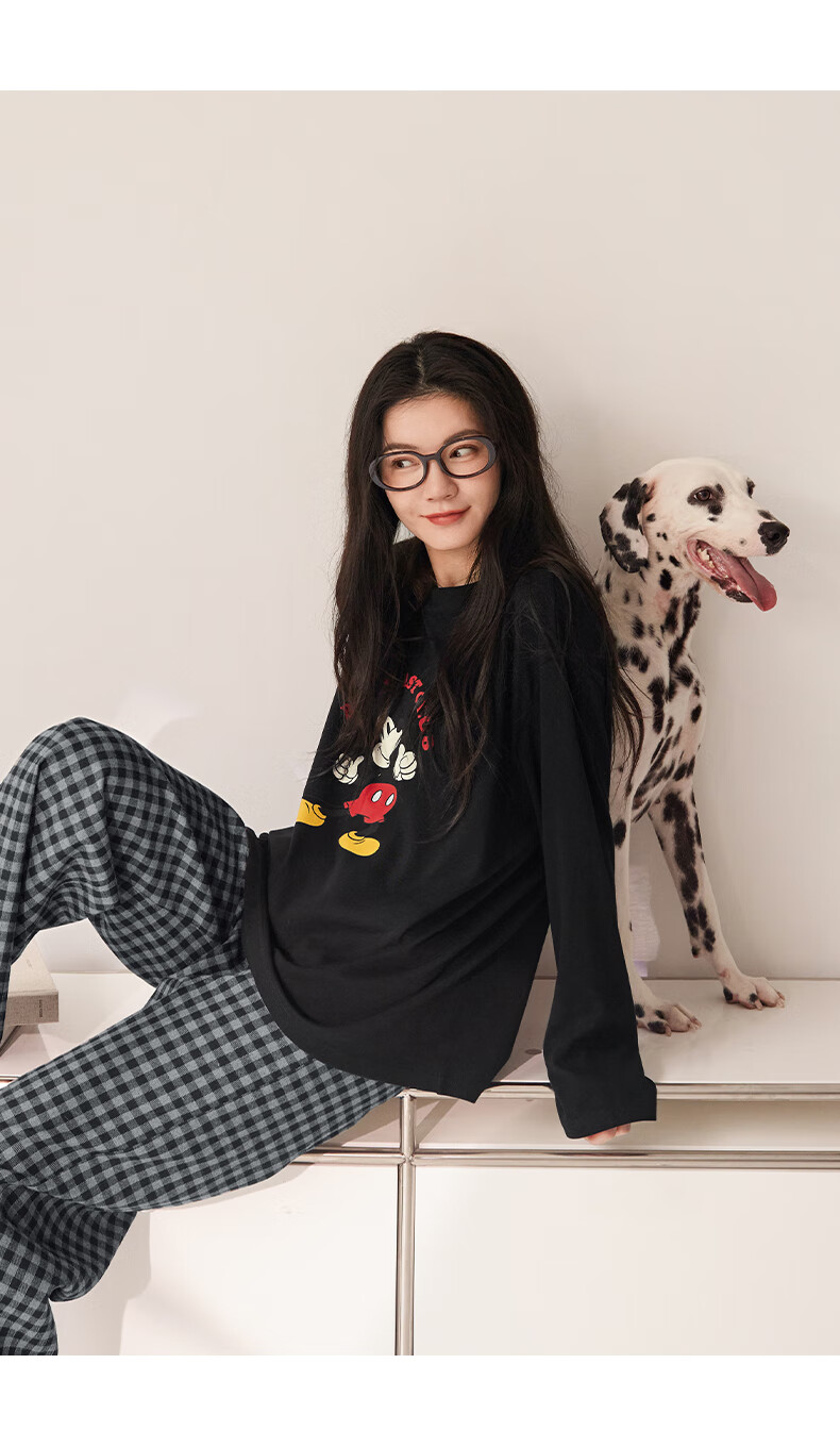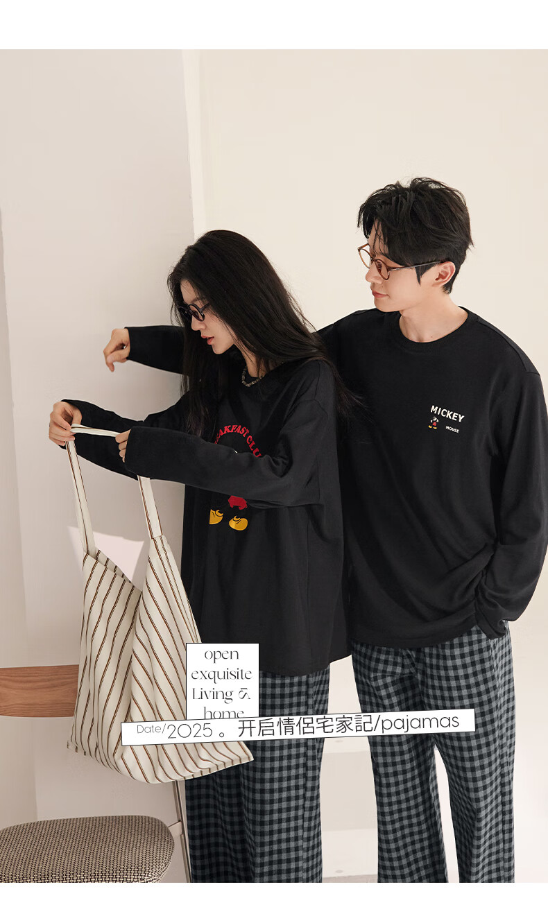 Beiyan couple pajamas for men spring and autumn new style soft cotton long-sleeved trousers Mickey home wear women's large size suit can be worn outside C21058 women's XL size