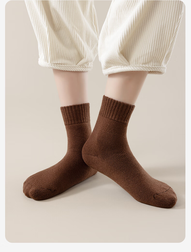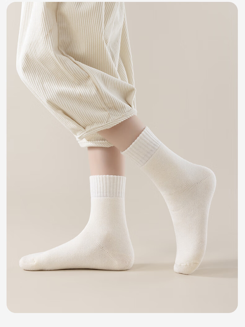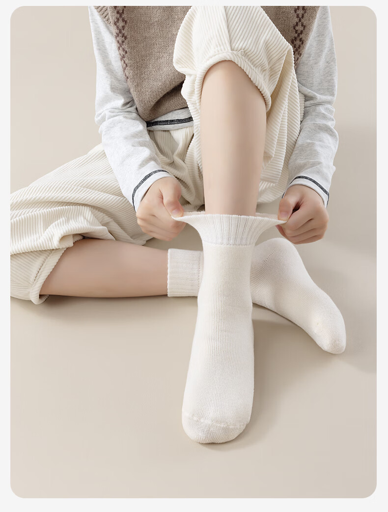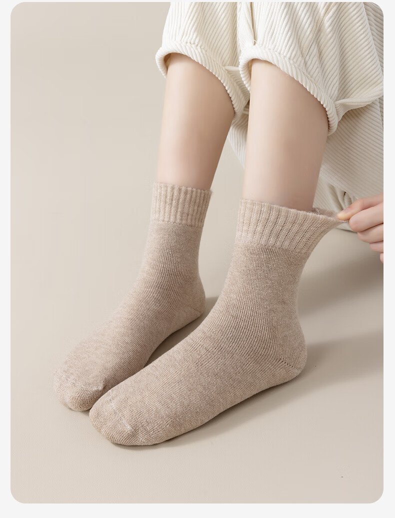 MiiOW children's socks, winter thickened mid-calf socks for boys and girls, warm plus velvet woolen hoop socks, autumn and winter style, long, thick terry style, black + hemp gray + white (package) 3 pairs, 3-5 years old, foot length 18-21cm, shoe size 37-41 M