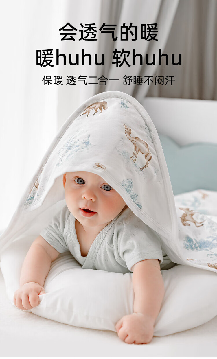 Artist co-signed baby blanket Newborn baby spring and summer blanket simple cotton blanket four seasons blanket spring and summer model forest trip room temperature 26 or above 90x90cm