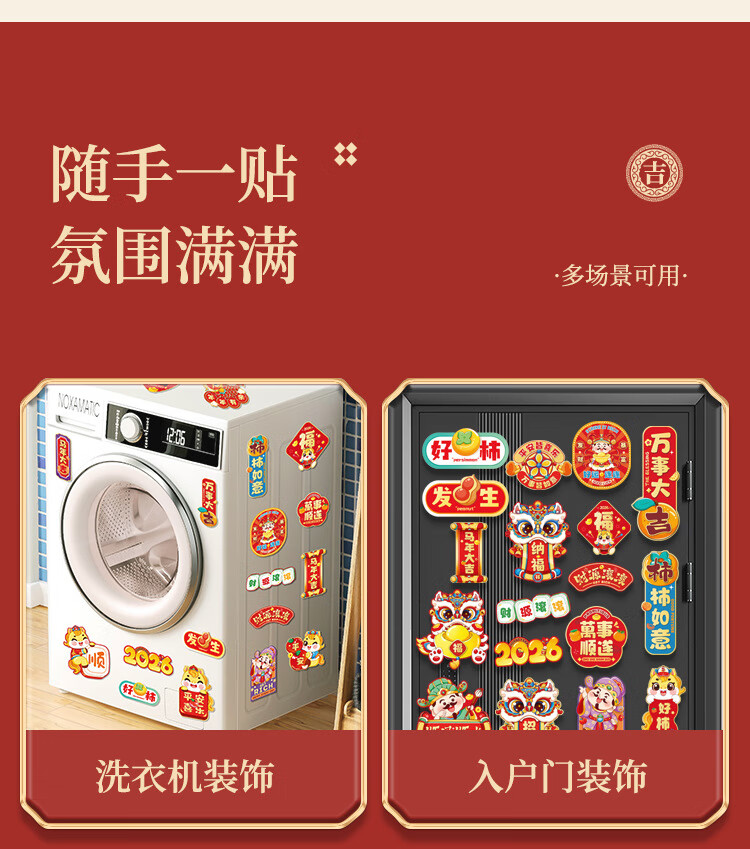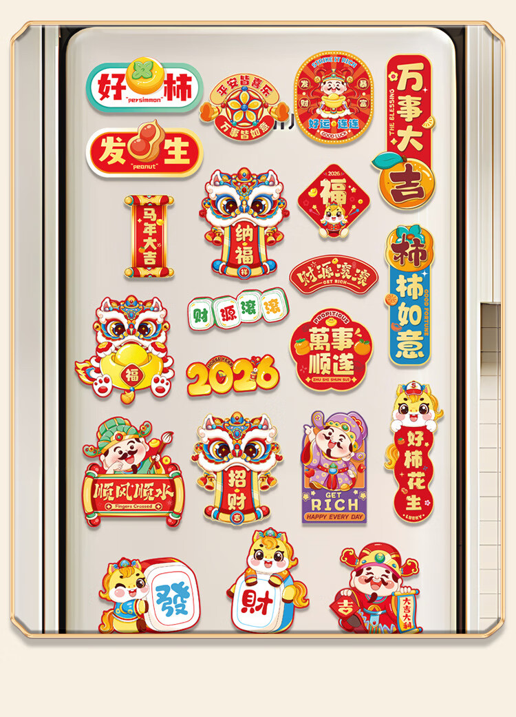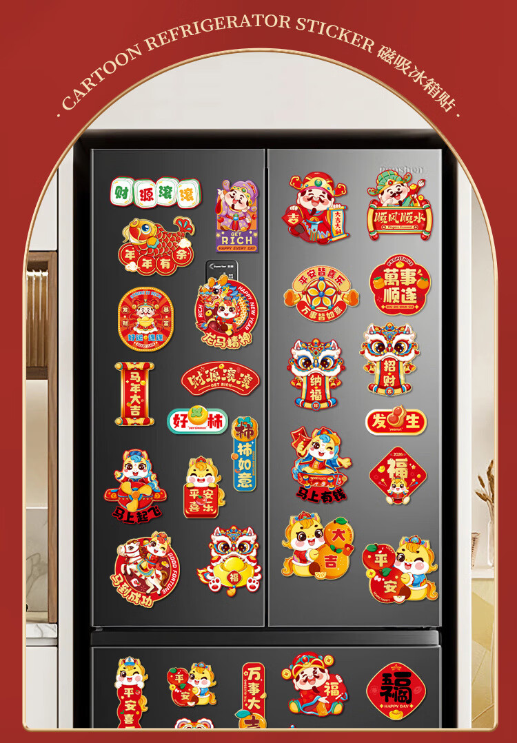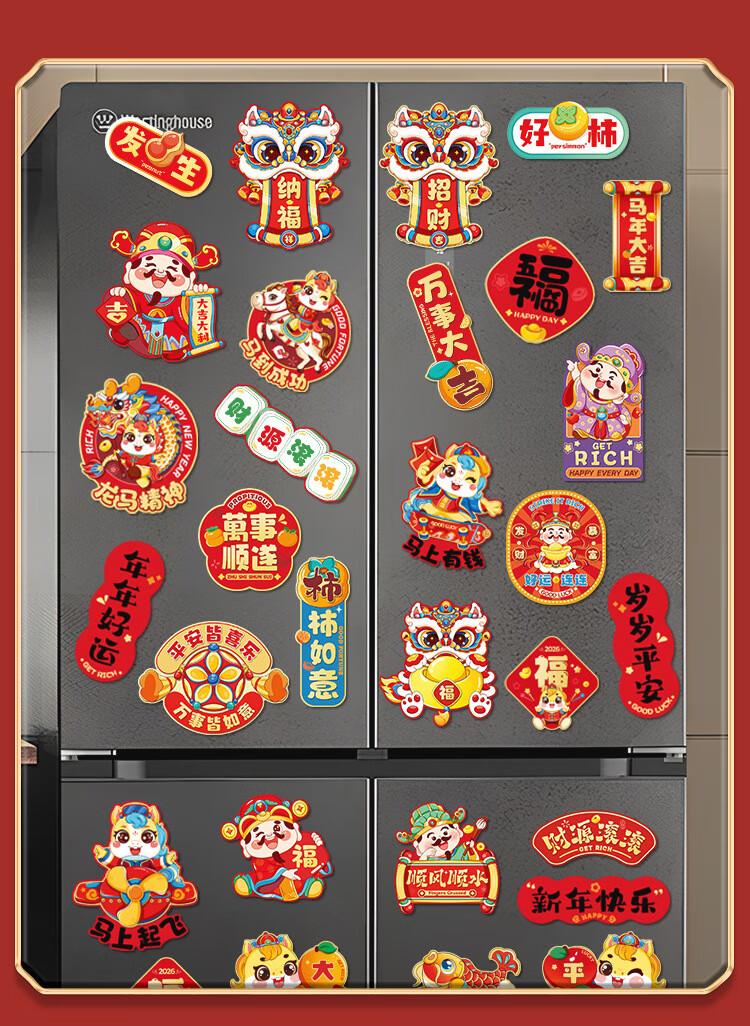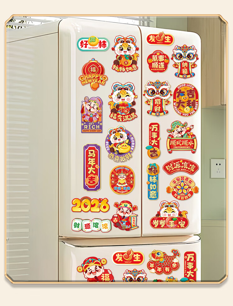 2026 Year of the Horse Refrigerator Magnet Door Sticker New Year Decoration Couplet Magnetic Blessings Creative Spring Festival Scene Layout Rainbow Horse - Magnetic Refrigerator Magnet 8 Pieces No Specifications