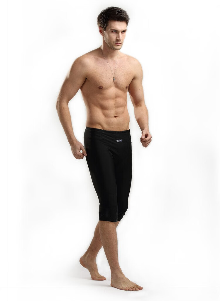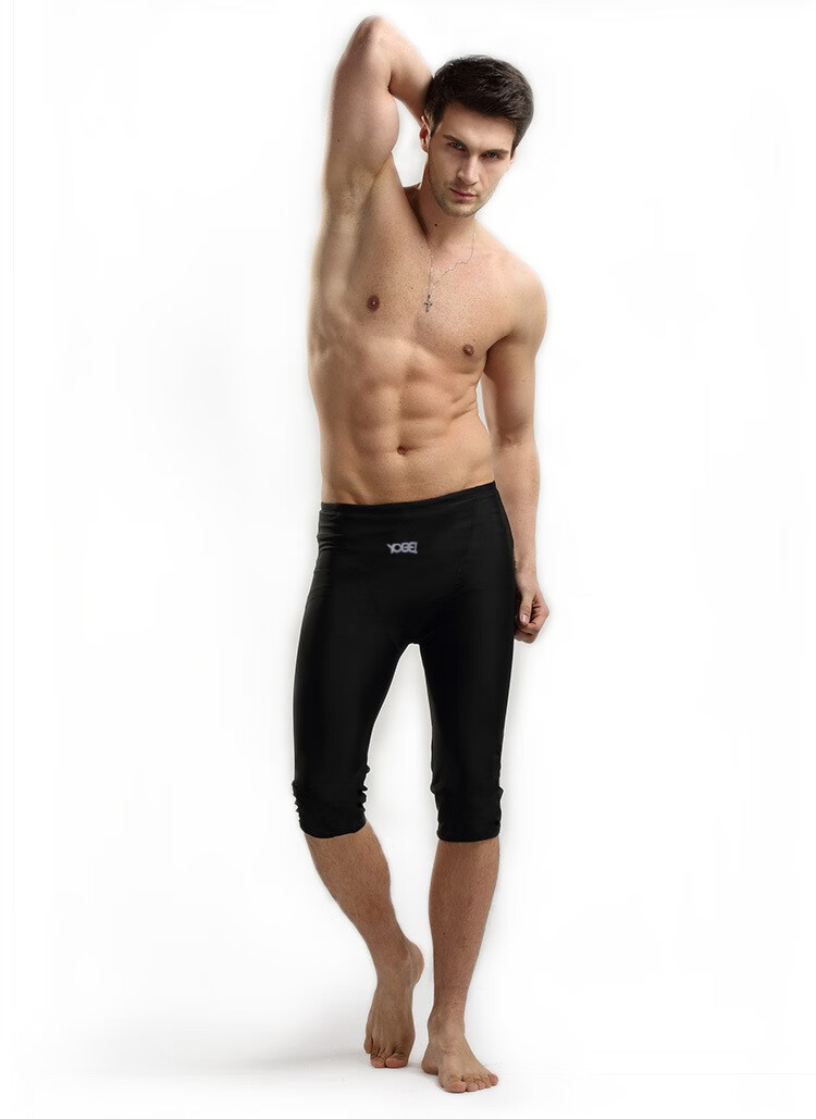 Zailou men's three-quarter swimming trunks quick-drying split knee-length flat-angle hot spring surfing slimming swimming training YP cropped swimming trunks + swimming cap + swimming goggles + earplugs and nose clip + L L