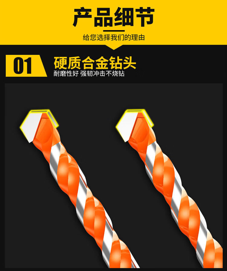 Overlord Drill Super Hard Concrete Punching Opening Alloy Triangular Drill Hand Electric Drill Glass Cement Tile Threaded Iron Sheet High Quality Overlord Drill 6+8+10