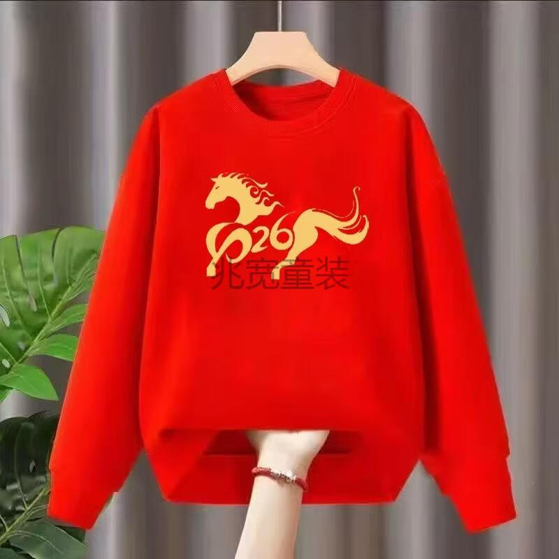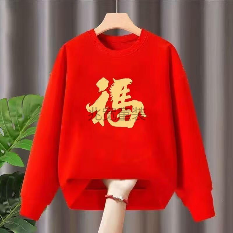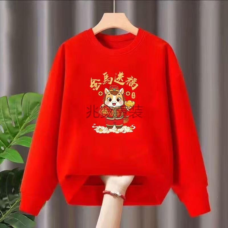 G.duck 2026 Red New Year's Greeting Clothes Plus Velvet New Year of the Horse Zodiac Year Tops Autumn and Winter Style Inner Shirts Festive Parent-Child Wear Red Get Rich Now - Spring and Autumn Style 200 Adult 5XL Size (Recommended 190-210 Jin Jin is equal to 0.5 kg)