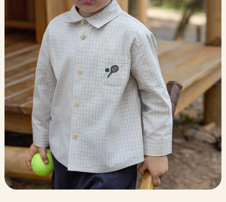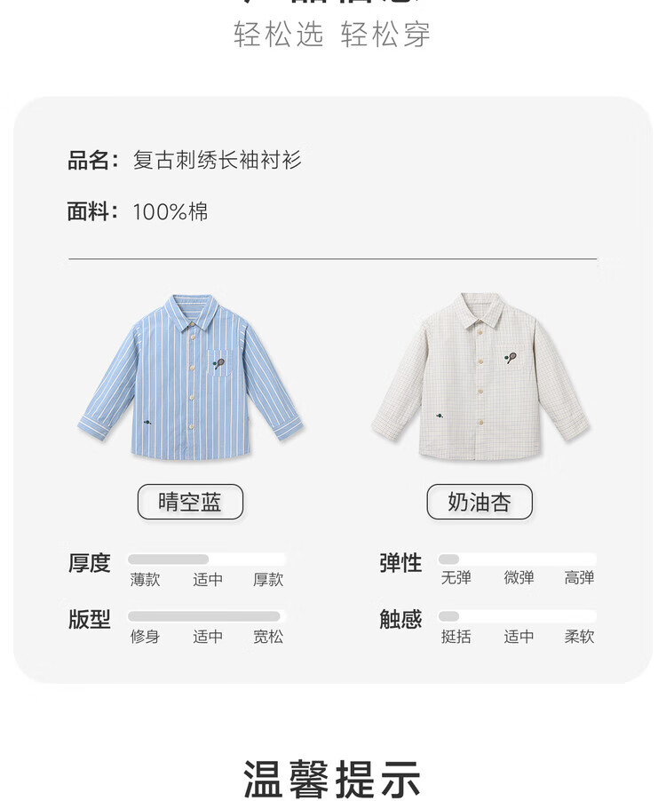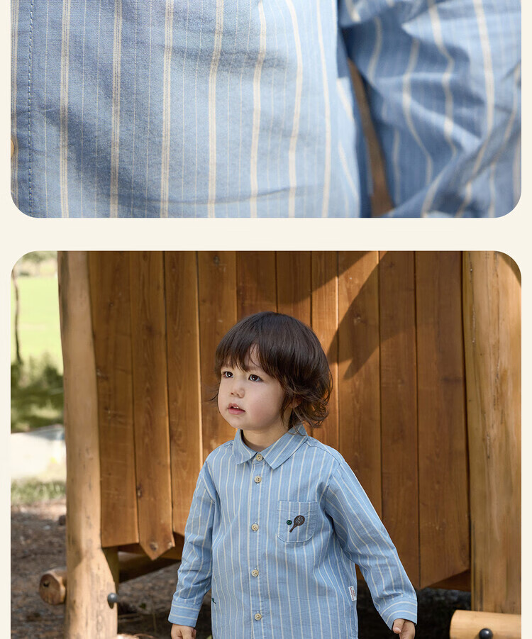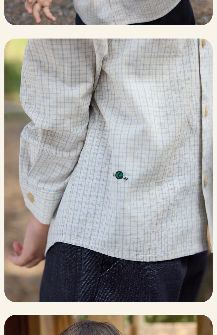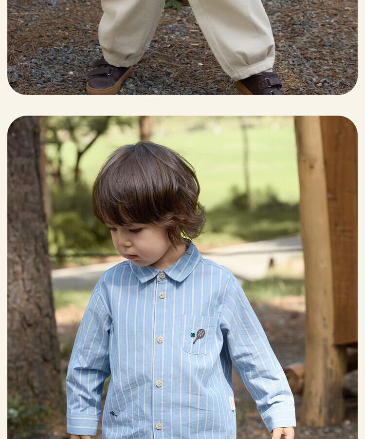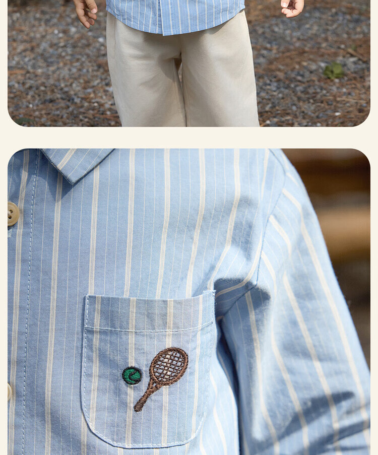 Zuoyou Wugang Qingfeng Autumn pure cotton antique embroidered shirt children's long-sleeved shirt clear sky blue ready stock 80 cm
