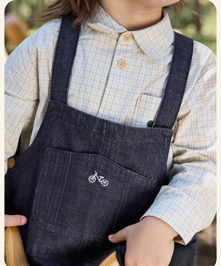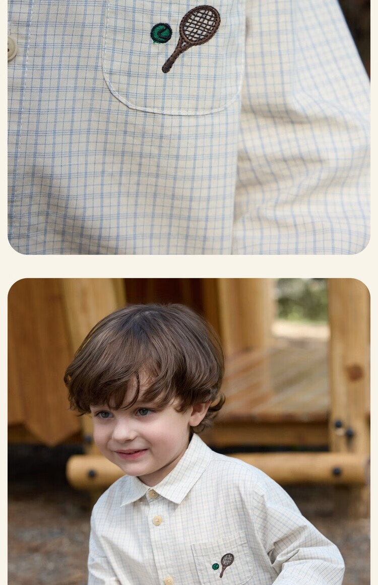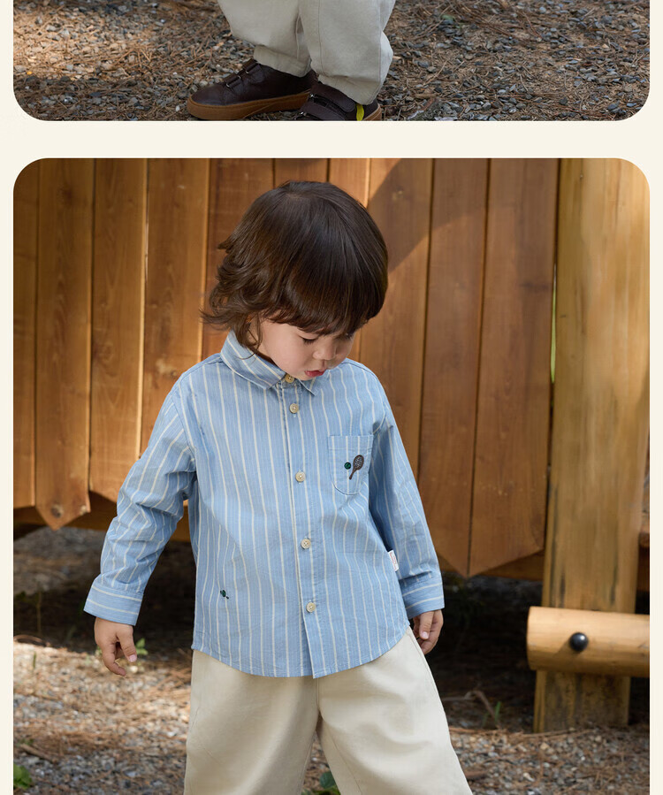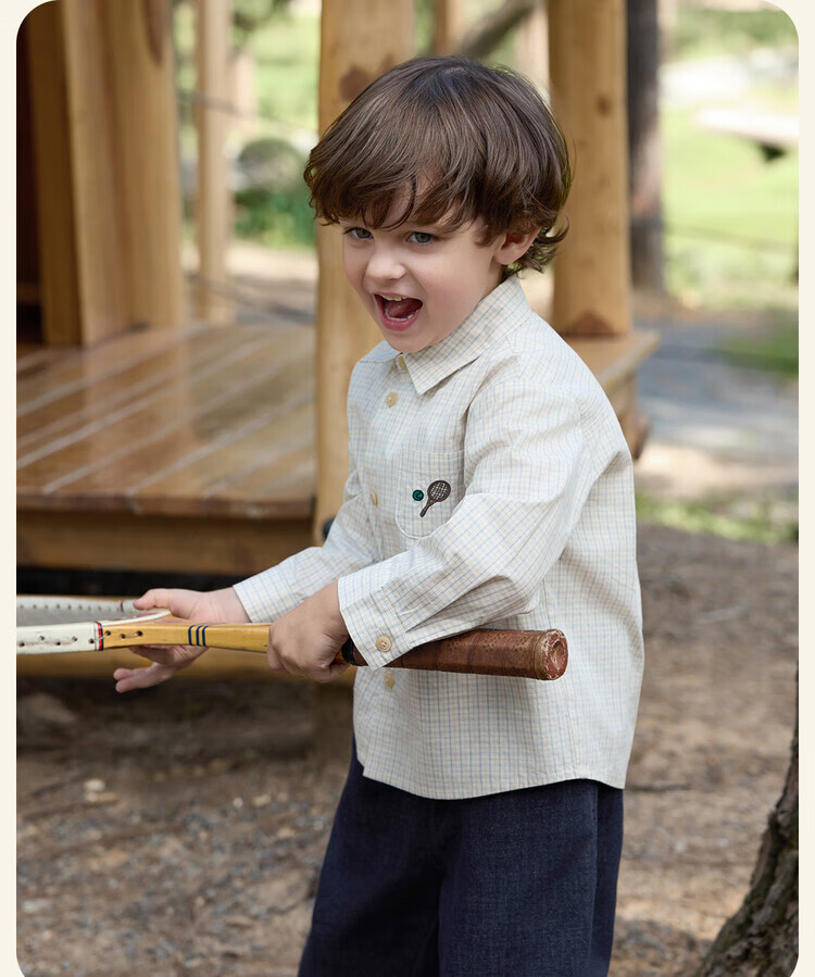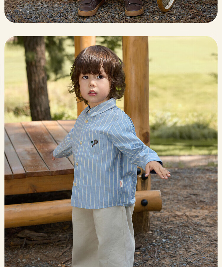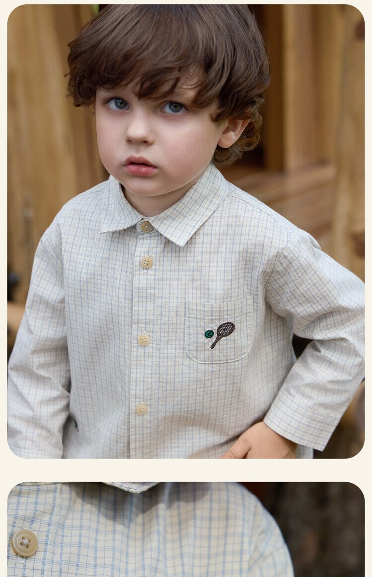 Zuoyou Wugang Qingfeng Autumn pure cotton antique embroidered shirt children's long-sleeved shirt clear sky blue ready stock 80 cm