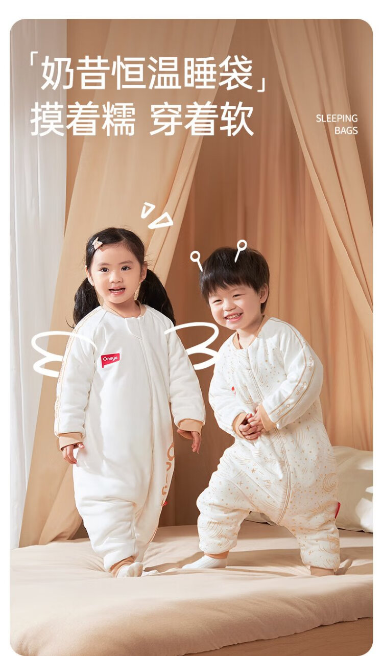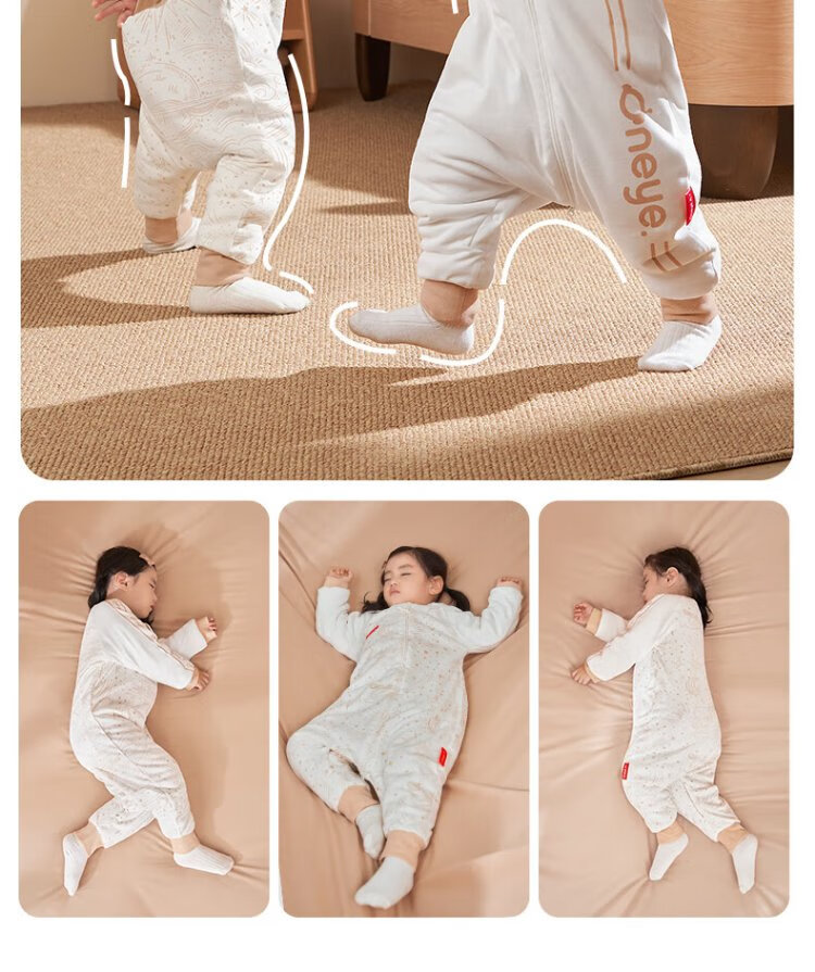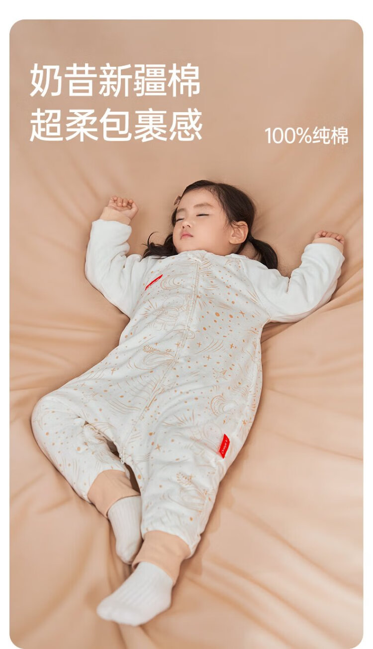 Maruya baby sleeping bag autumn and winter constant temperature children's split-leg jumpsuit pure cotton baby sleeping bag anti-kick quilt spring and autumn medium thick khaki webbing 16-24 Yuji M recommended height 80-95cm1-2 years old