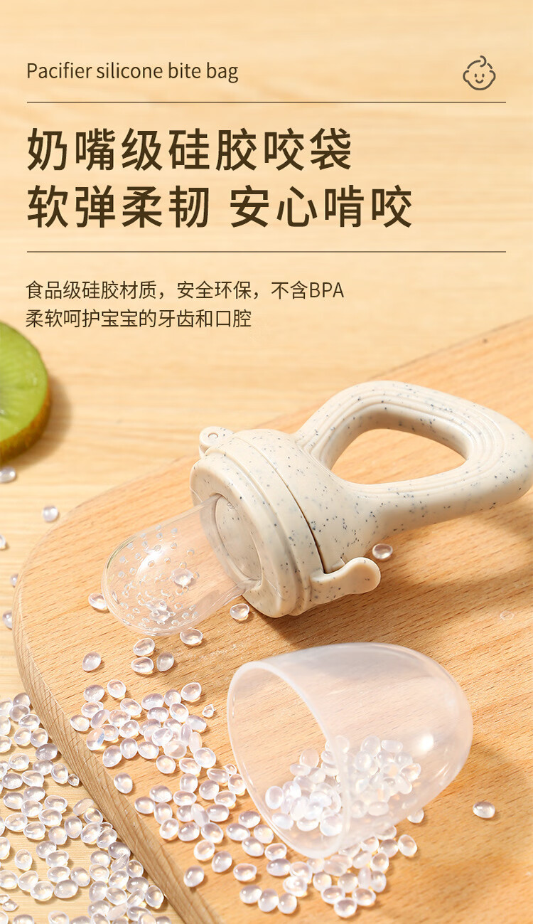 Jingqiao baby fruit food supplement bite bag bite and play food pacifier fruit and vegetable juice artifact baby bite device white 1 pack