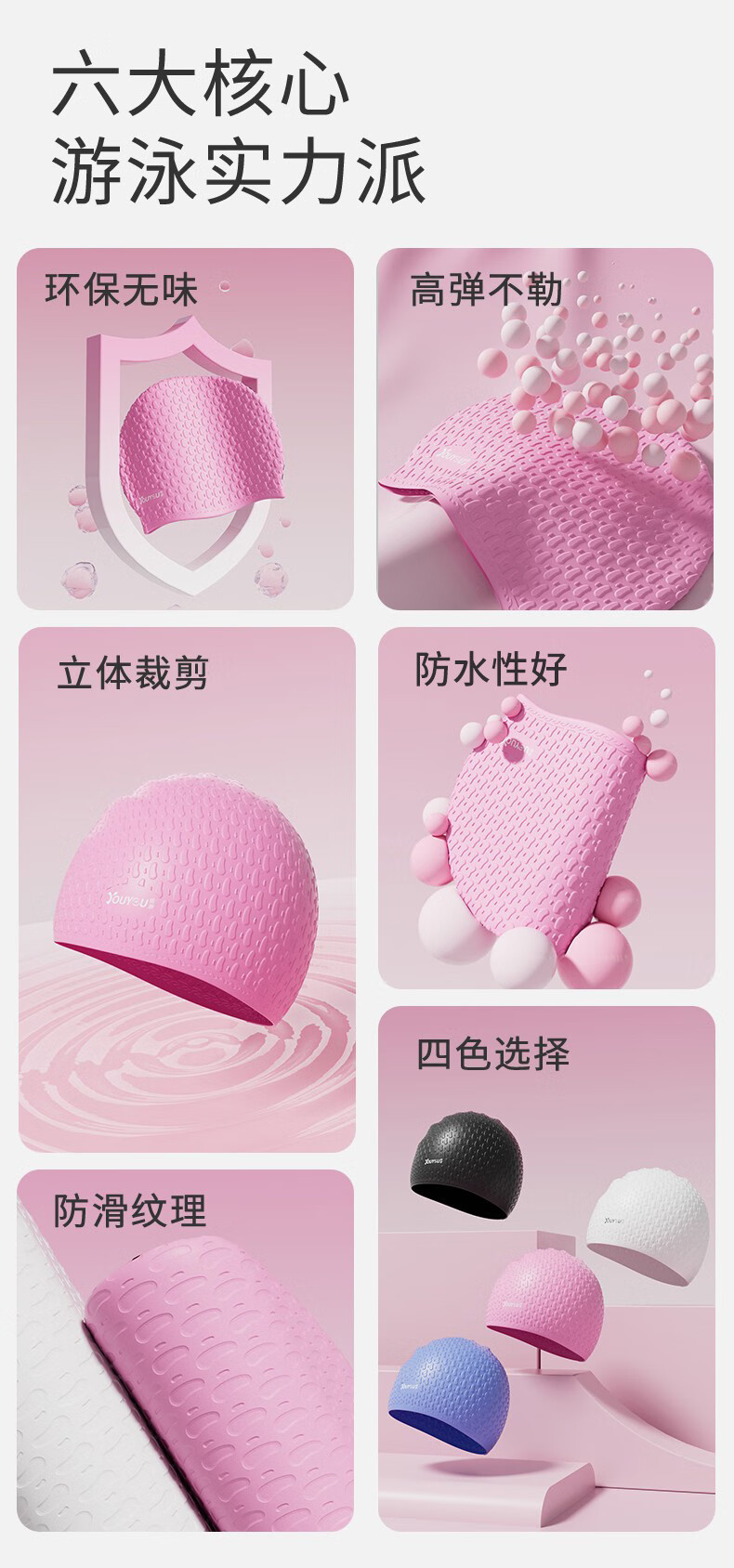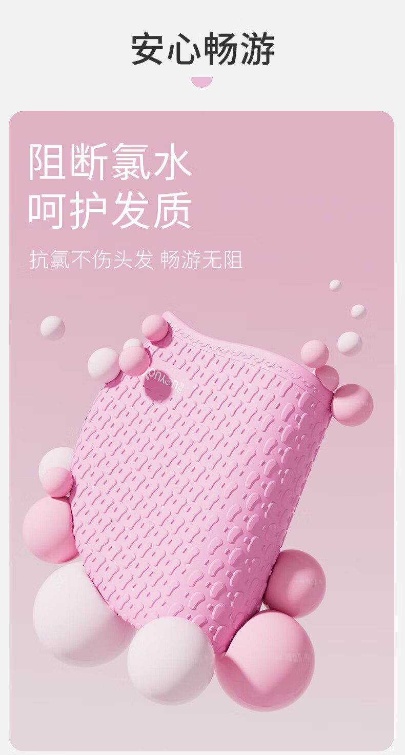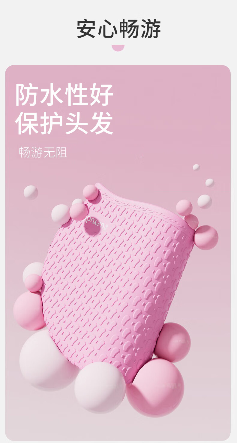 Swimming cap for women, waterproof, non-stretching silicone, fashionable long hair swimming cap for men and women, large ear protection swimming goggles, swimming cap set, pink + electroplated pink one-piece earplugs swimming goggles + nose clip +