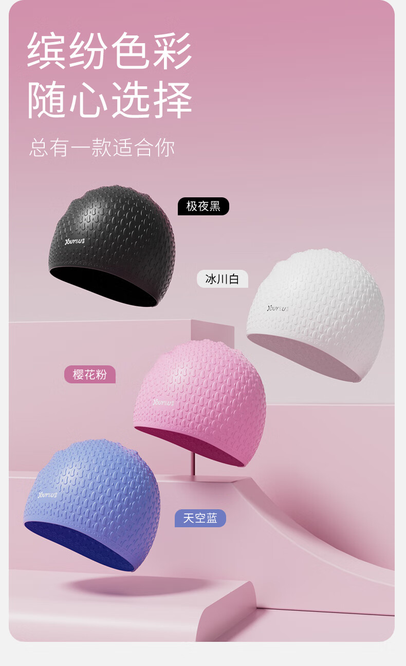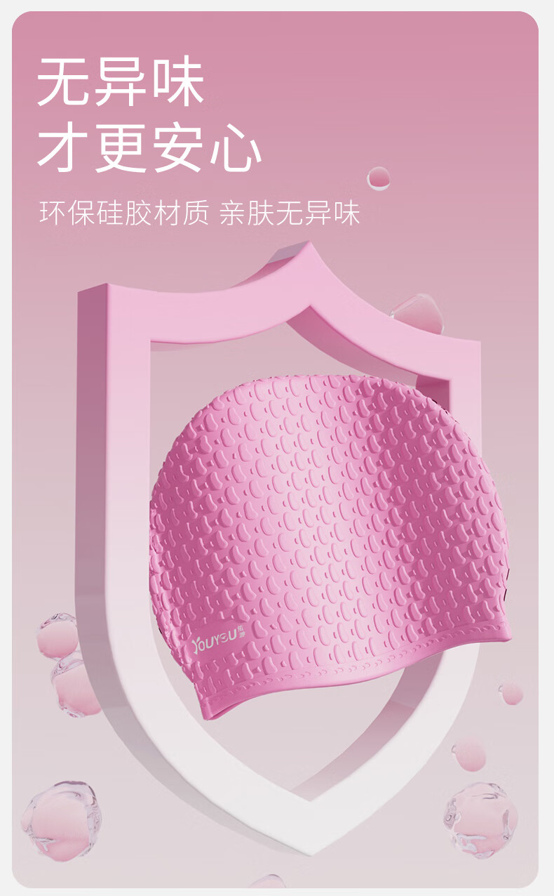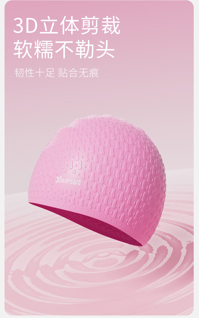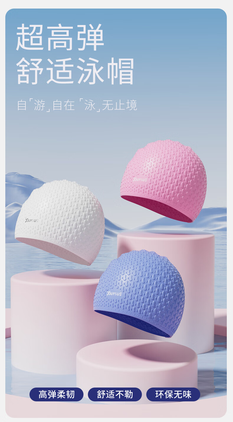 Swimming cap for women, waterproof, non-stretching silicone, fashionable long hair swimming cap for men and women, large ear protection swimming goggles, swimming cap set, pink + electroplated pink one-piece earplugs swimming goggles + nose clip +
