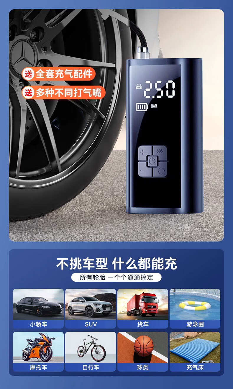 Xiaomi (MI) same model adapted car wireless air pump car portable air pump electric car tire high pressure air pump imported from Germany brushless model 9999999 pump driving force + free air bag
