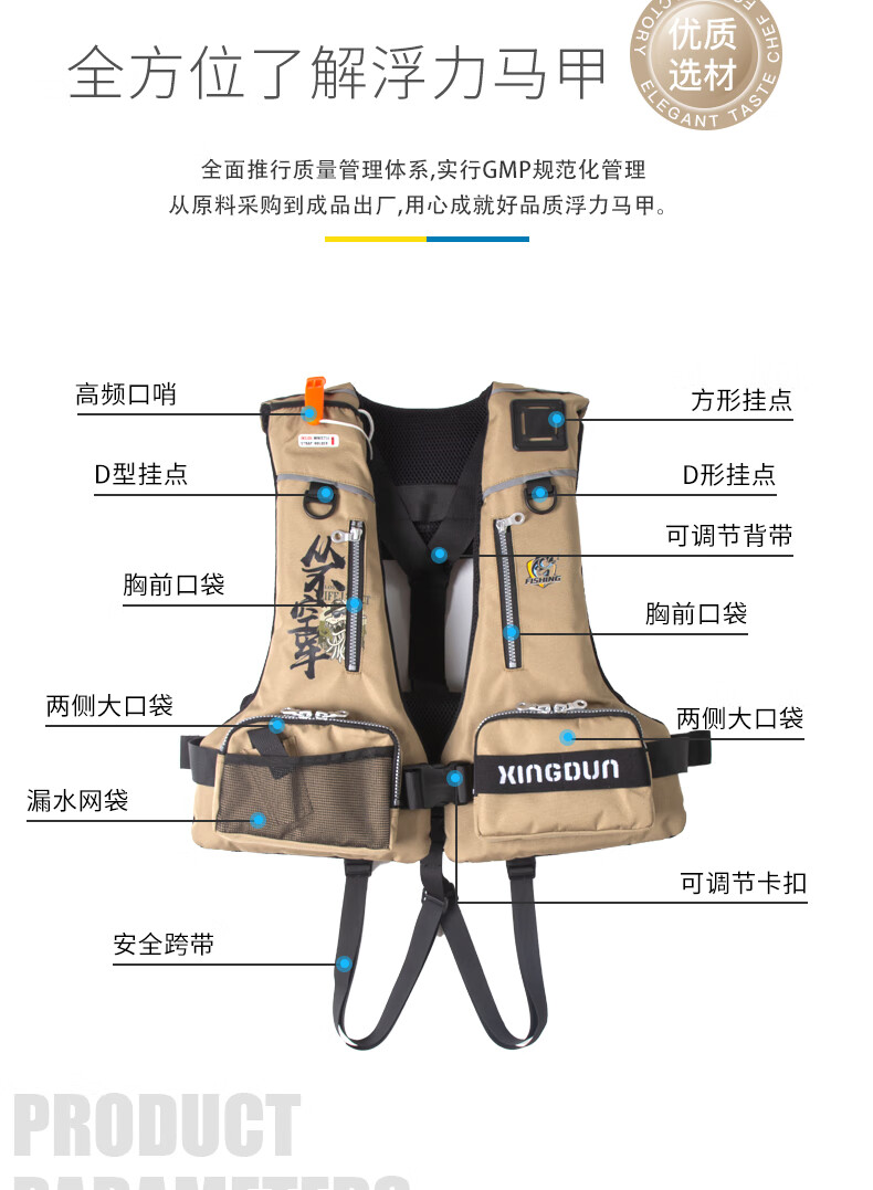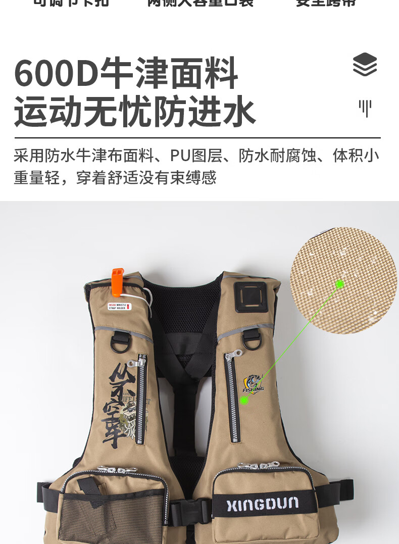 Zailu fishing portable large buoyancy fishing rock fishing sea fishing fishing clothing vest vest outdoor life jacket one size fits all khaki