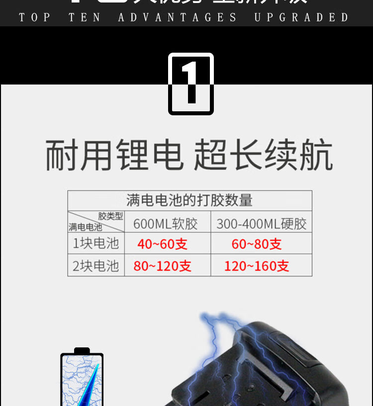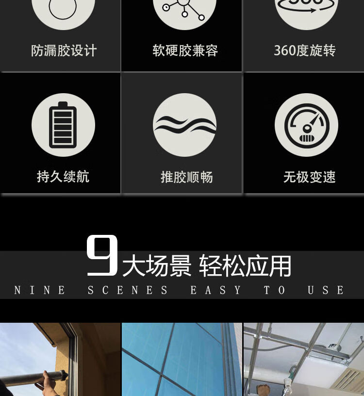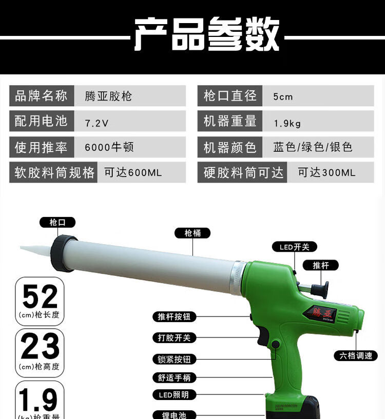 Tenya Electric Glue Gun Beautiful Seam Glass Variable Speed Soft Glue Hard Glue Structural Glue Gun Door Window Curtain Wall Fully Automatic Lithium Battery Medium Speed Six Gears 1500 One Charge One Charge