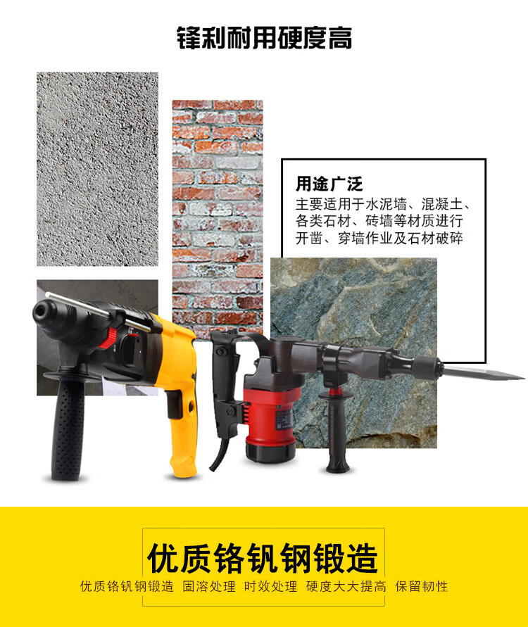 Tungsten steel alloy flat chisel square handle round handle special steel impact electric hammer drill bit chisel hexagonal widening sharp super hard square handle flat head 7D1425A