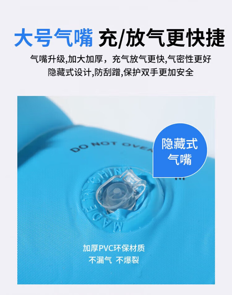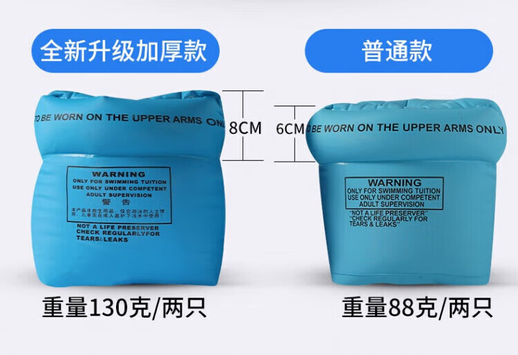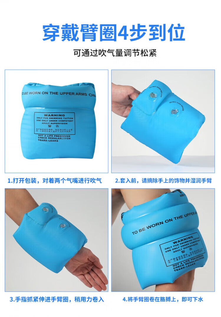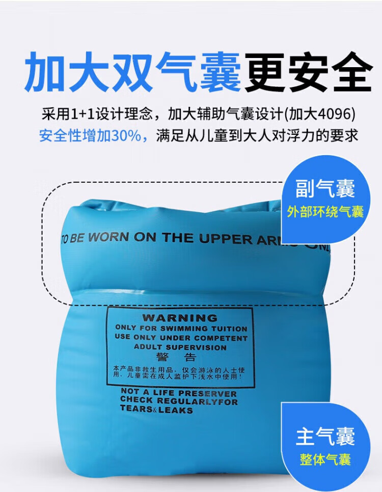 Zailu swimming ring arm ring, large buoyancy, anti-rollover, children's water sleeves, double airbag buoyancy ring, inflatable life-saving, upgraded and thickened blue pair + earplugs and nose clip