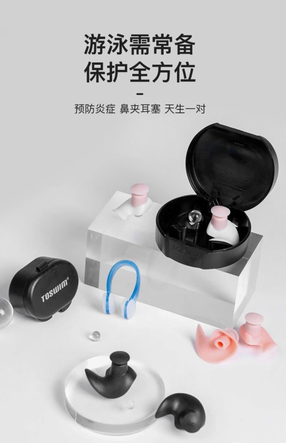 Zailu waterproof earplugs for bathing, anti-middle ears, swimming nose clip, special shampoo, children's anti-water artifact, cuttlefish black earplugs - style