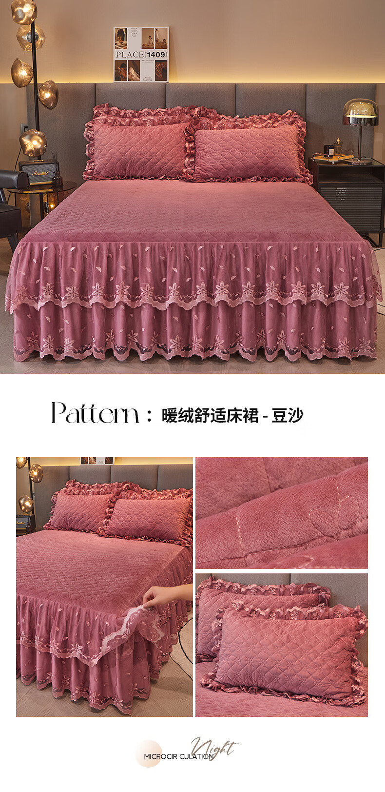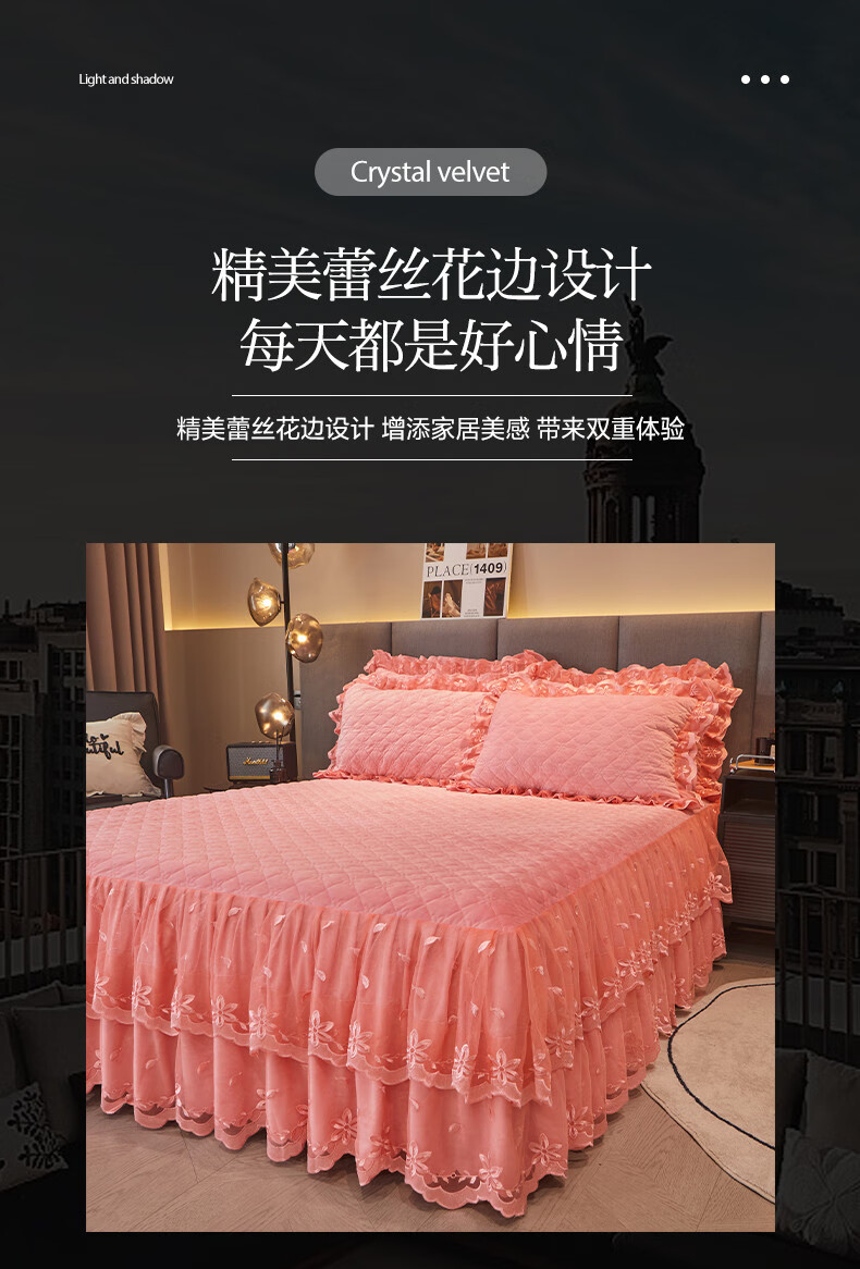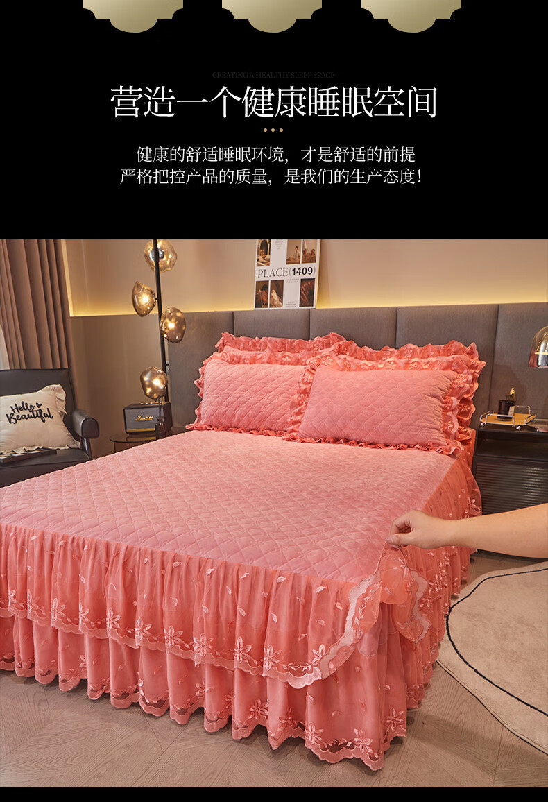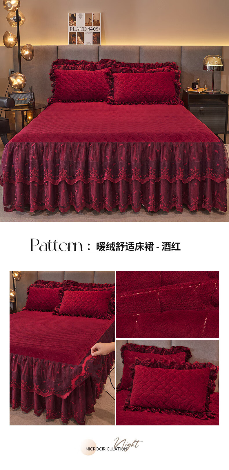 Fantasy thickened high-end baby velvet quilted bed skirt single piece red high-end lace autumn and winter Shengshi Landai-big red high-end baby velvet thickened and warm 180cmx200cm single piece bed skirt