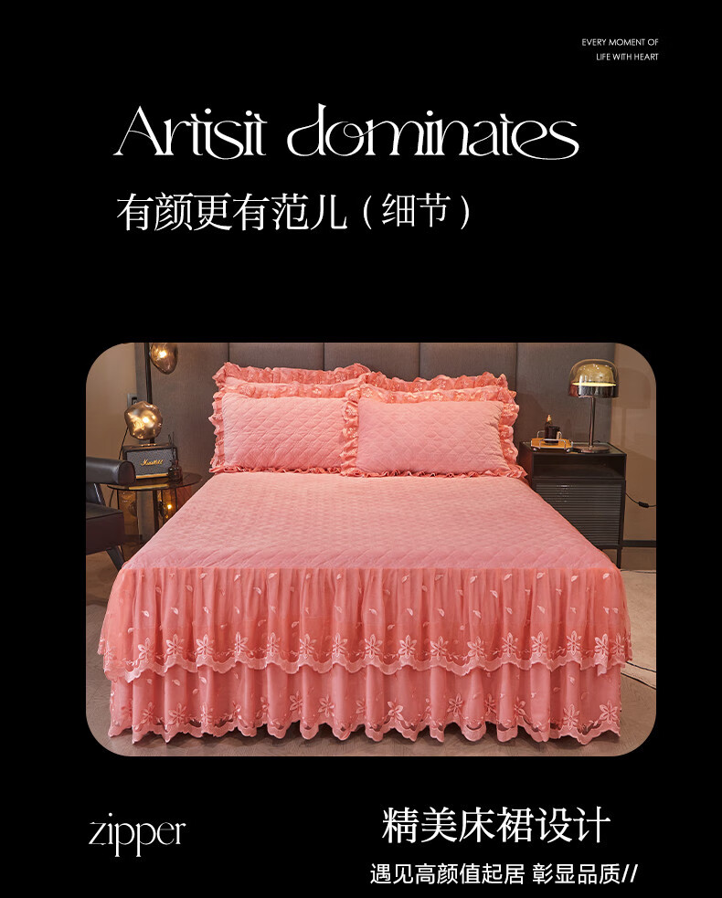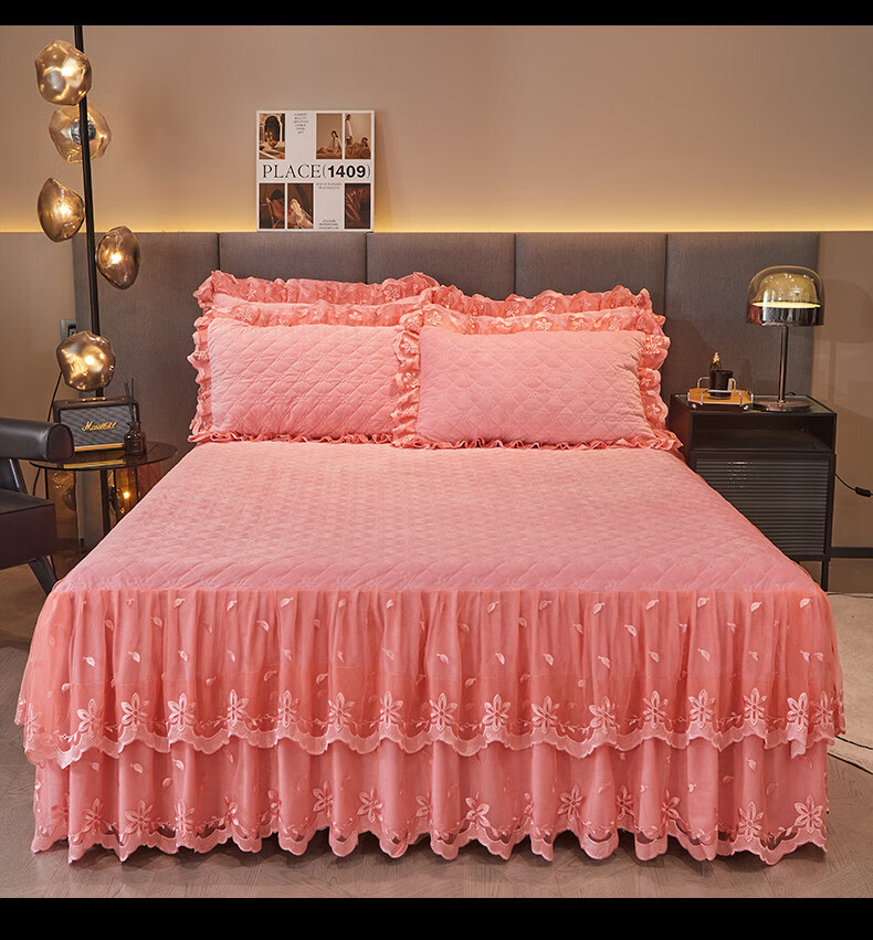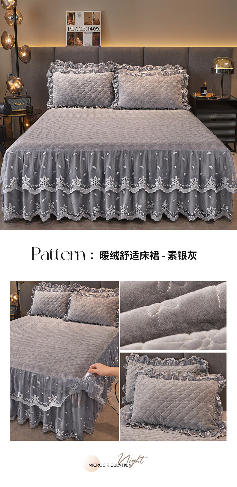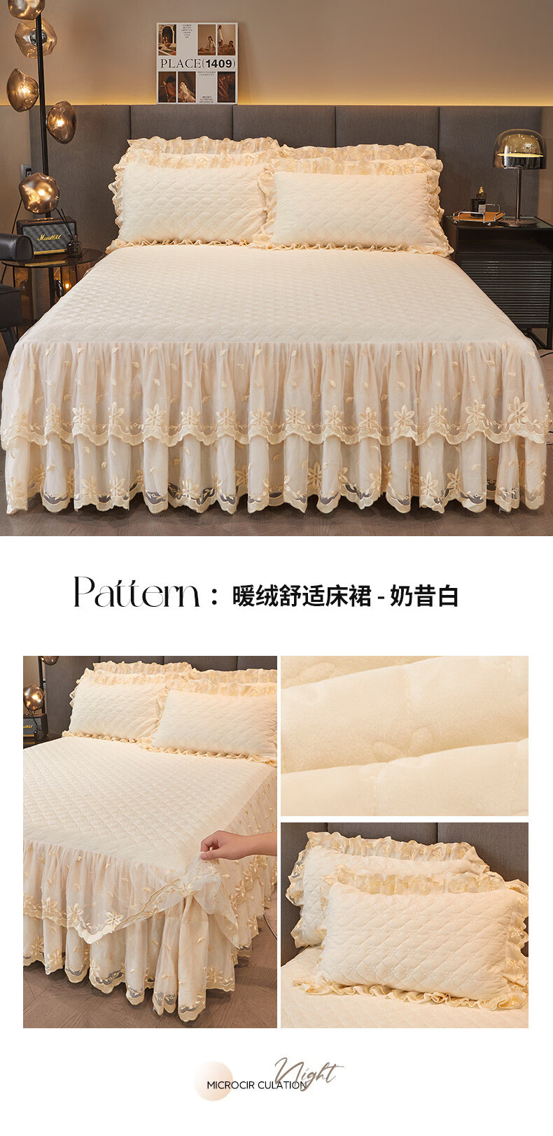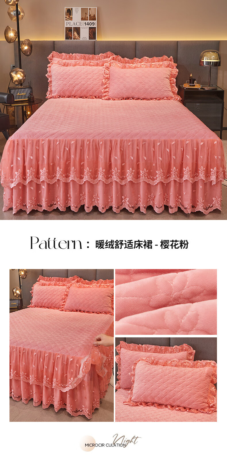 Fantasy thickened high-end baby velvet quilted bed skirt single piece red high-end lace autumn and winter Shengshi Landai-big red high-end baby velvet thickened and warm 180cmx200cm single piece bed skirt