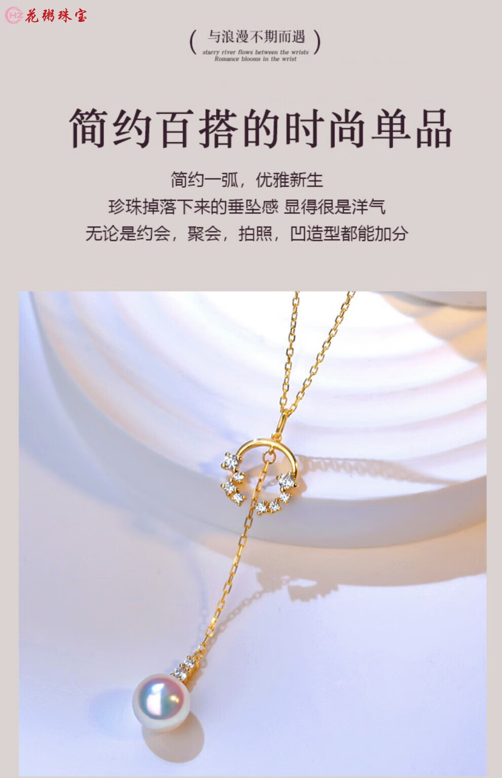 ROYALPRINCESSakoya seawater pearl pendant necklace, goddess grade extremely bright gold tassel necklace pendant 775mm 18K gold akoya pendant K gold chain