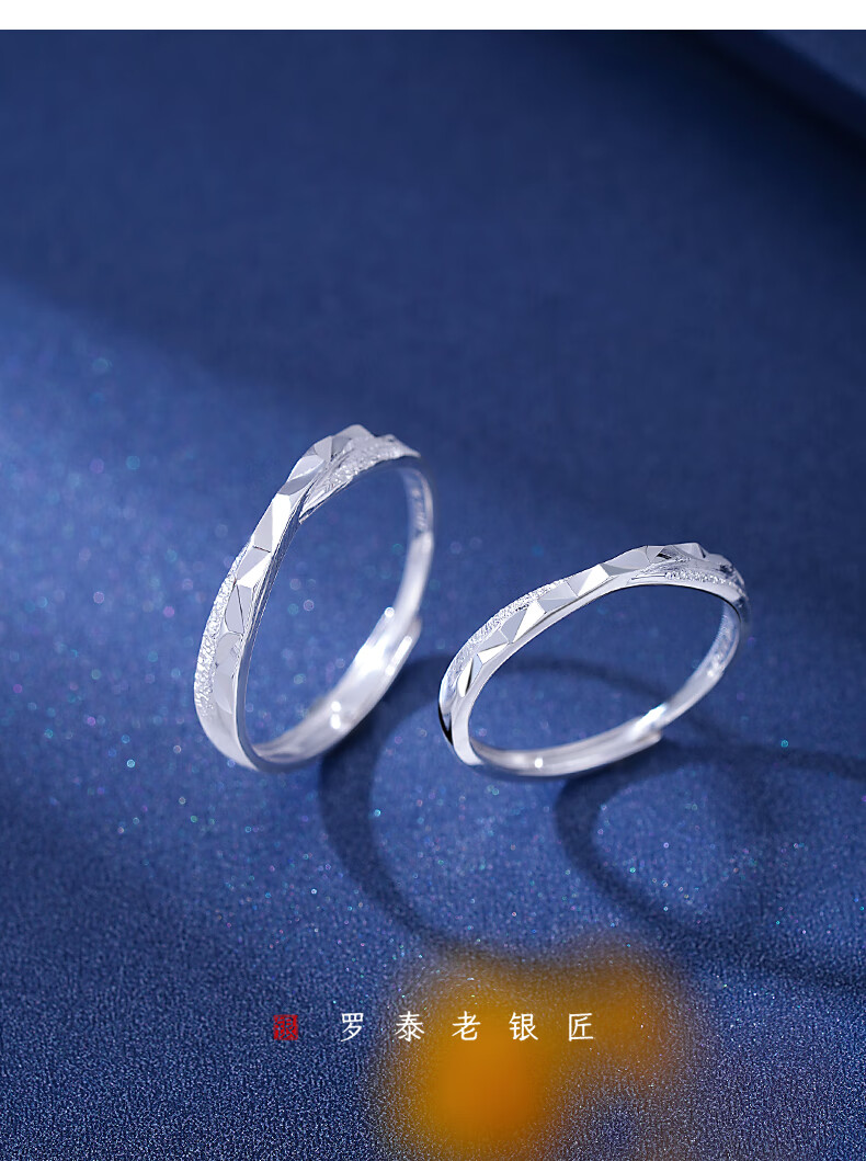 Luotai Old Silversmith 990 Pure Silver Stars and Sea Rings Men's and Women's Couples' Rings A Pair of Light Luxury Ring Gifts Stars Couples' Rings (One Pair)