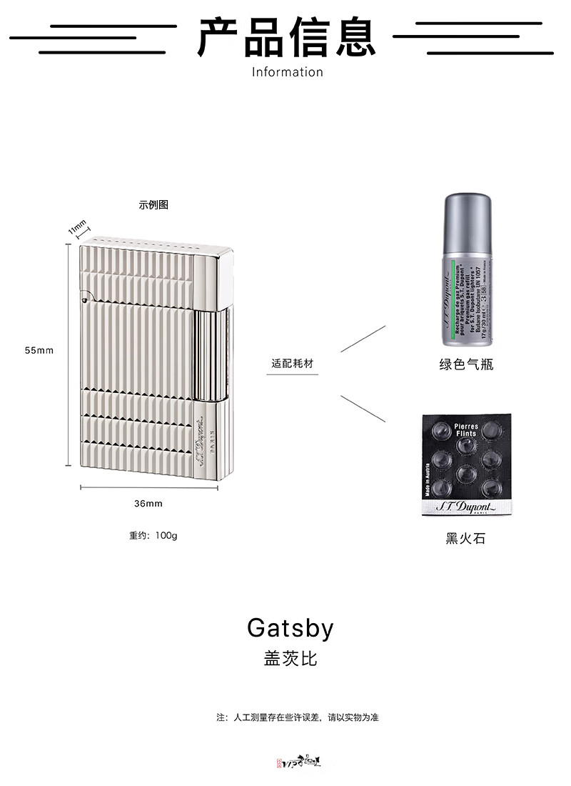 Dupont (S.T.Dupont) gebraucht 95 neu S.T.Dupont Dupont aufblasbares Longsheng-Feuerzeug GATSBY Gatsby Herrenaccessoires Luxus-Geschenkkollektion Longsheng versilberte vertikale Streifen Originalverpackung 251020002
