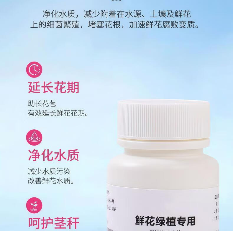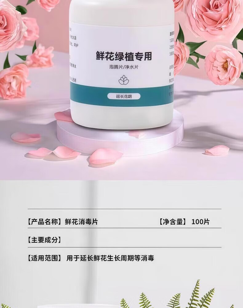 Chlorine dioxide flower effervescent tablets, disinfection tablets for flower arrangements, special preservative for flowers and green plants, deodorization, sterilization and water purification, flower water purification tablets, water purification and sterilization, extending the flowering period, live price, 1 bottle of 100 tablets
