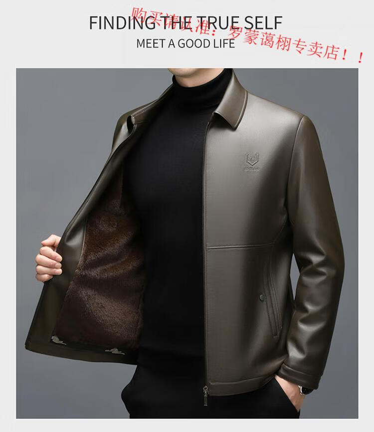 Кожаная куртка Romon с лацканами, осенне-зимняя новая тонкая куртка, мужская короткая деловая повседневная плюшевая кожаная куртка для молодежи и среднего возраста, коричневая M