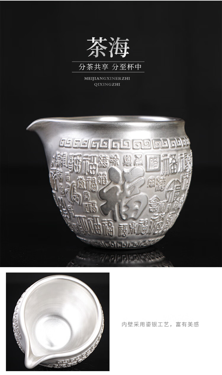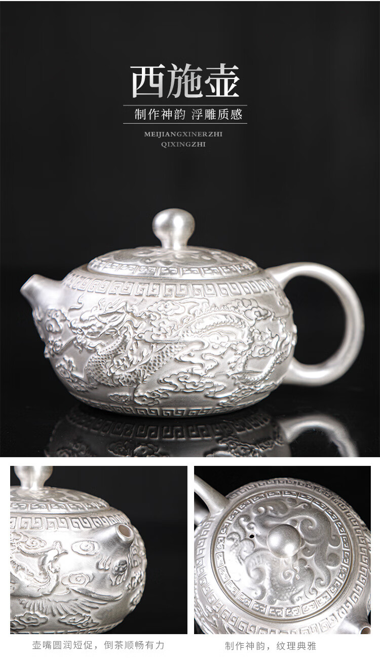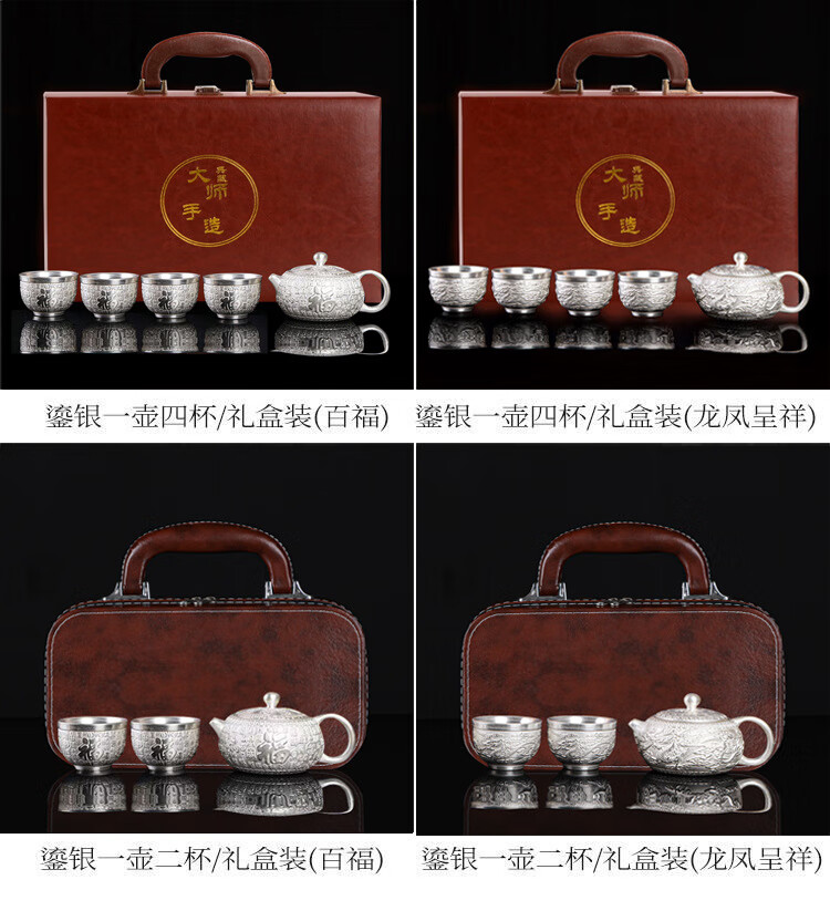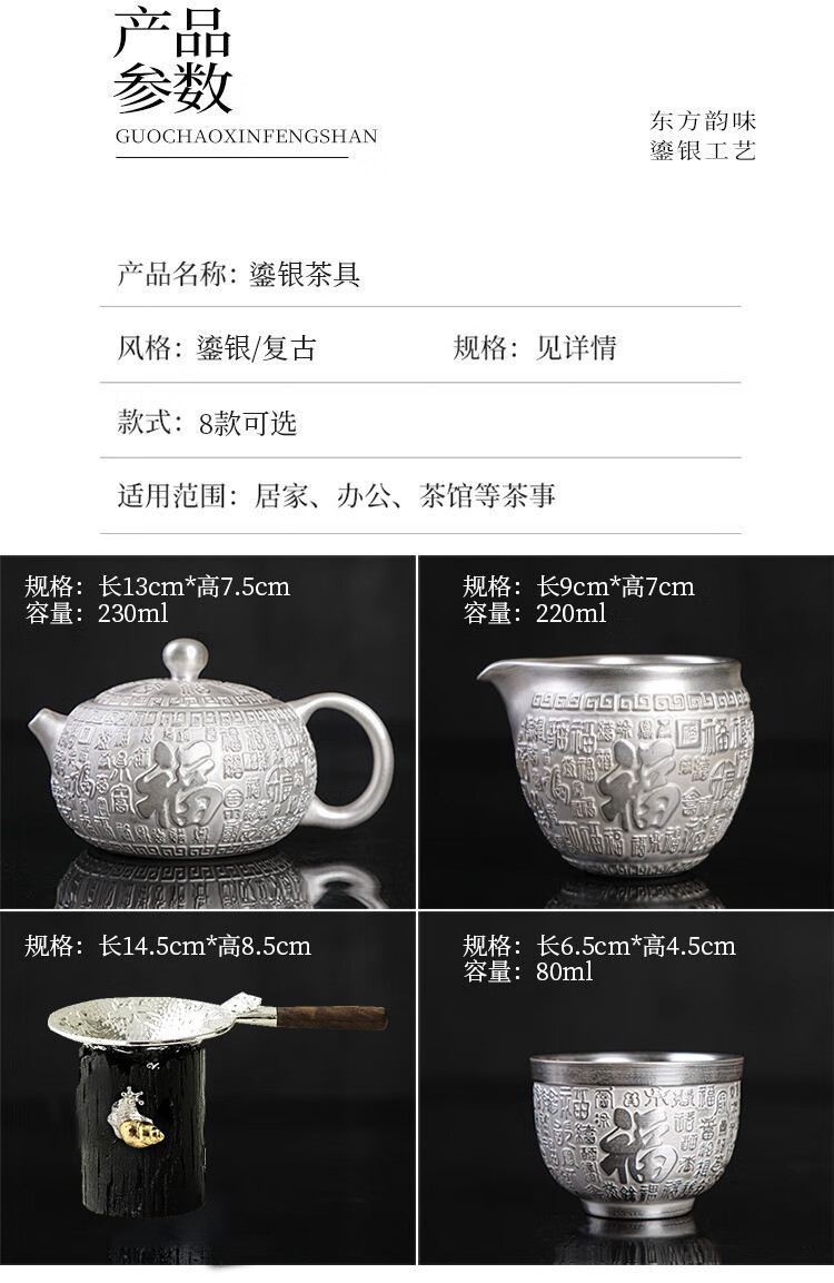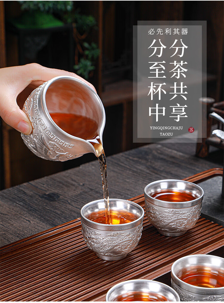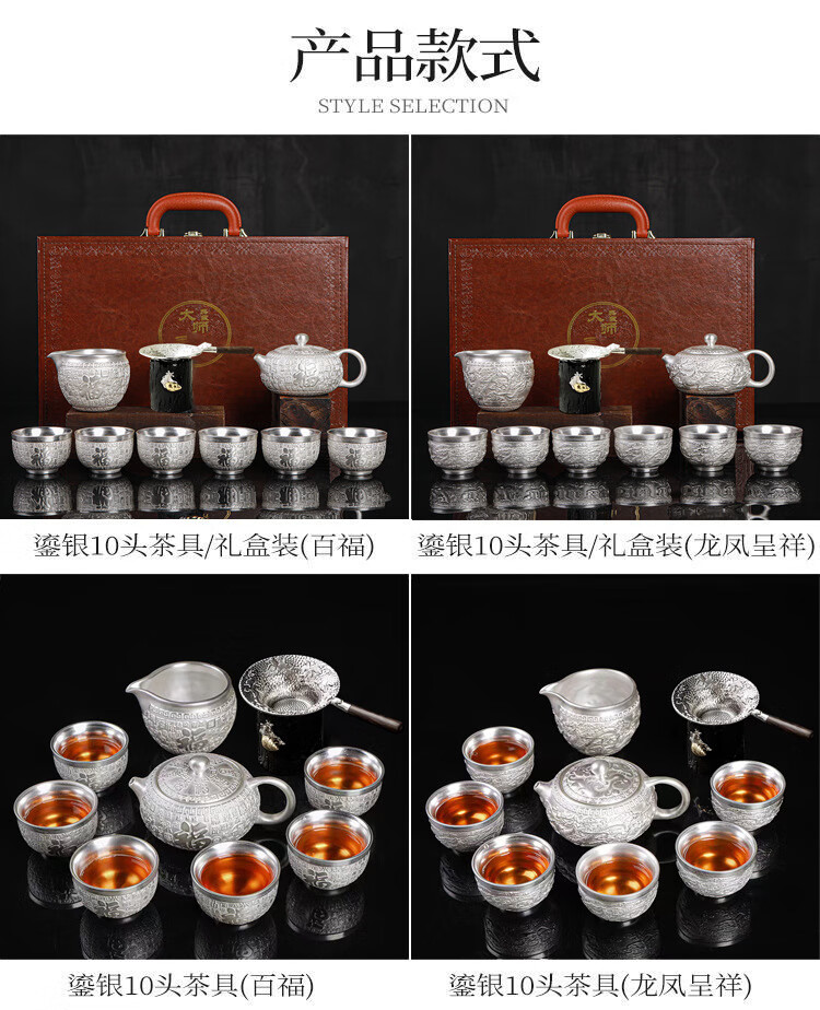 Jiaomingtang 999 sterling silver Kung Fu tea set gift set for leaders and elders to retire, housewarming and retirement practical festival Baifu silver set 10 pieces