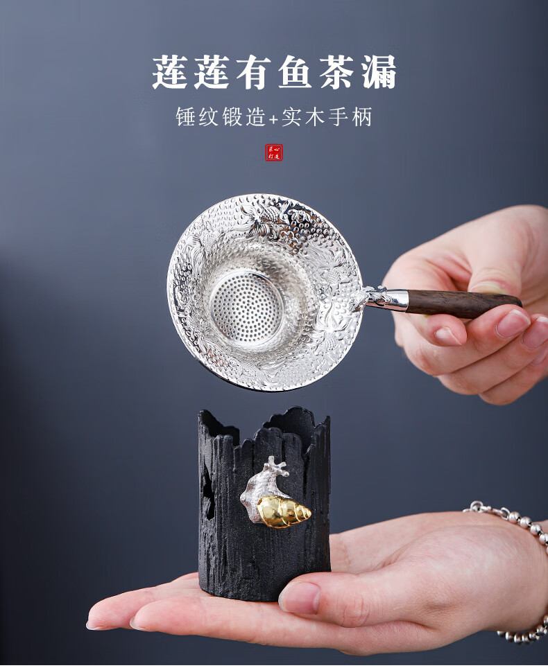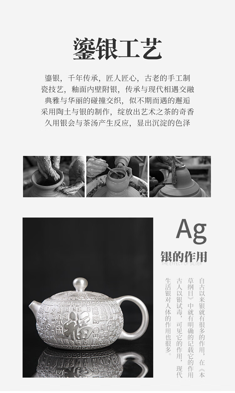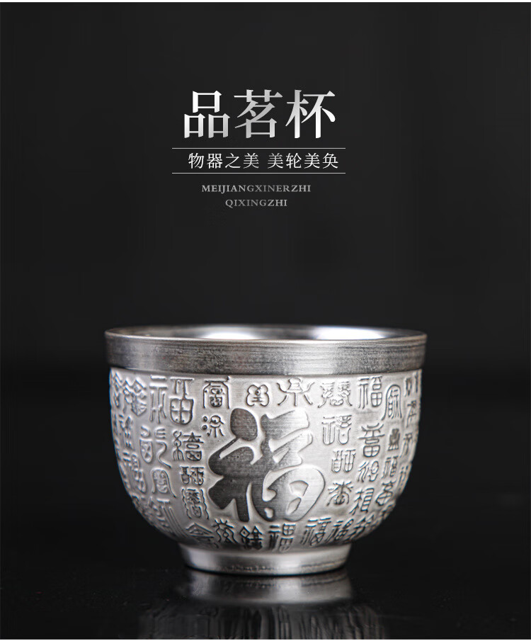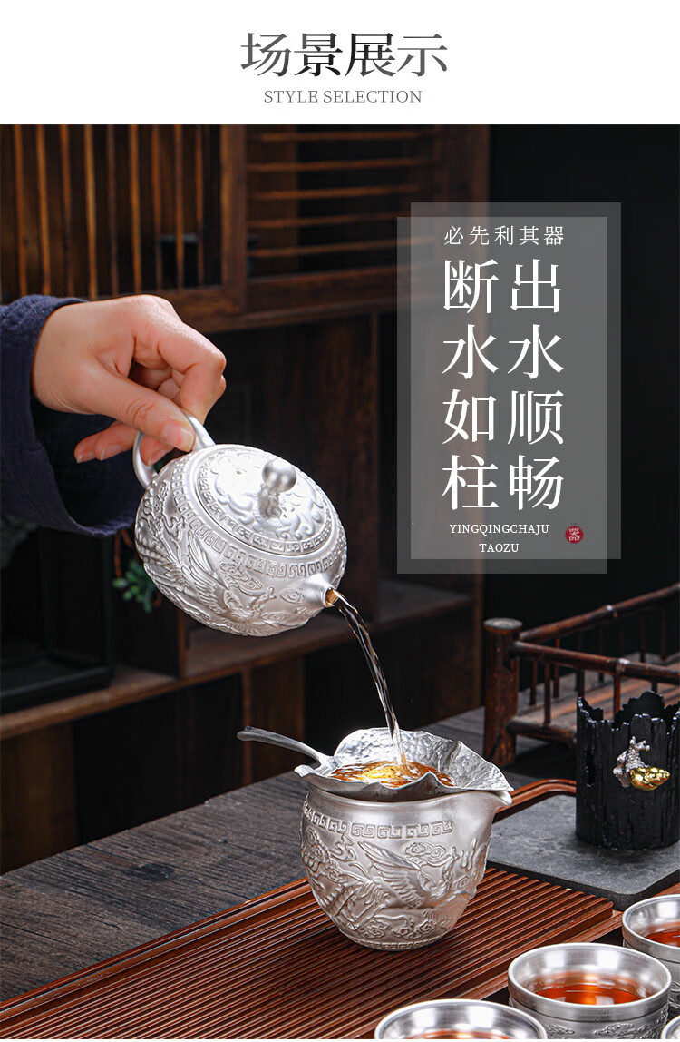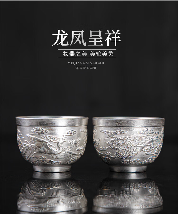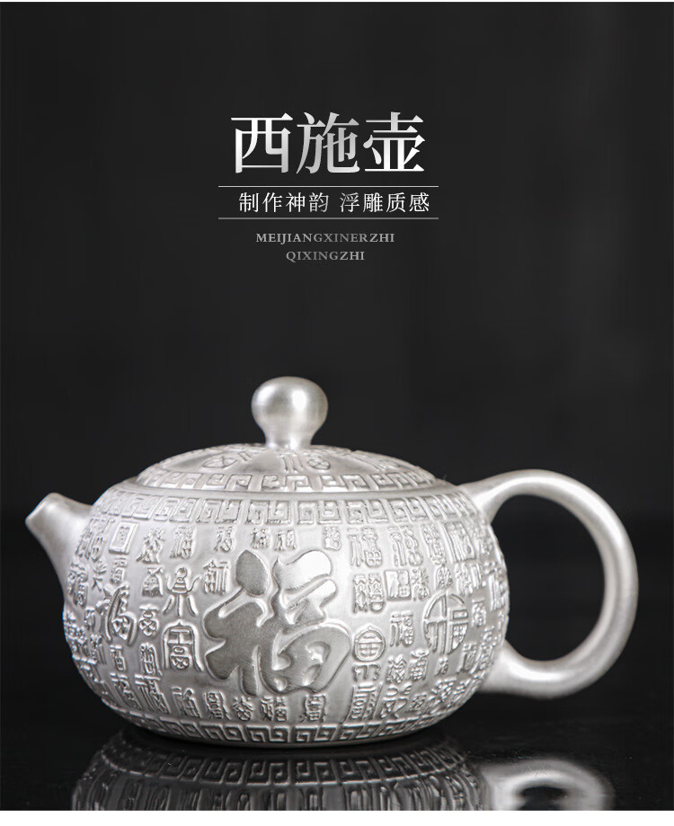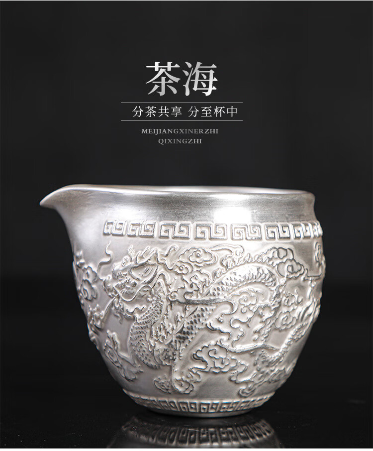 Jiaomingtang 999 sterling silver Kung Fu tea set gift set for leaders and elders to retire, housewarming and retirement practical festival Baifu silver set 10 pieces