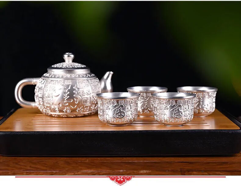 New Pfaff 999 tea set 1 pot, 1 tray, 4 cups, Chinese style high-end household host cup, fair cup, luxury brown leather gift box - Pfaff six-piece set (1 pot, 1 plate, 4 cups)