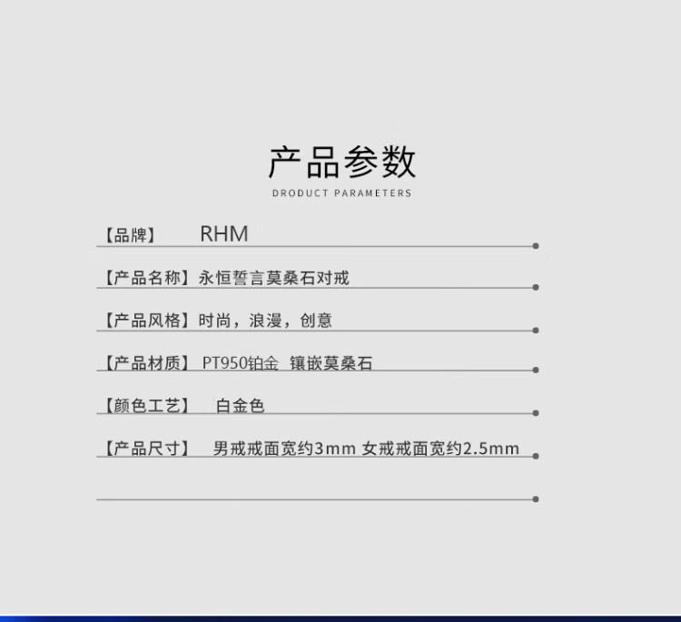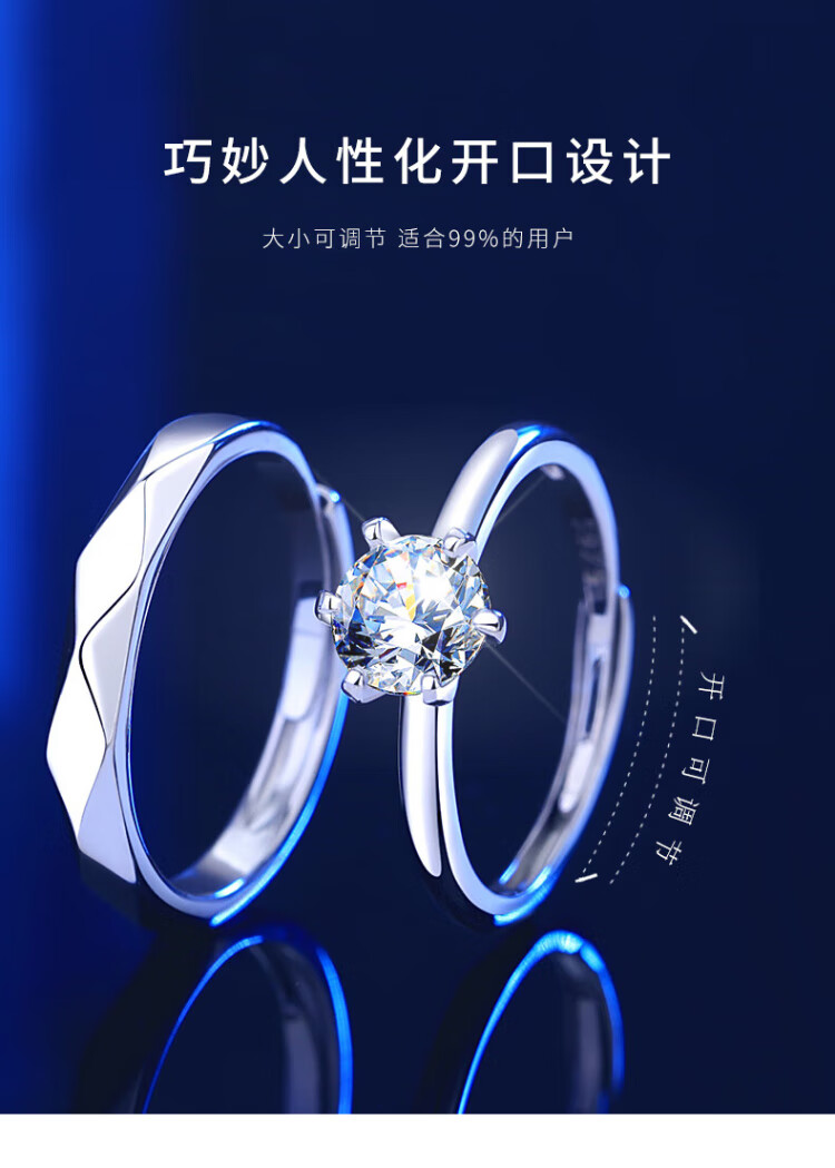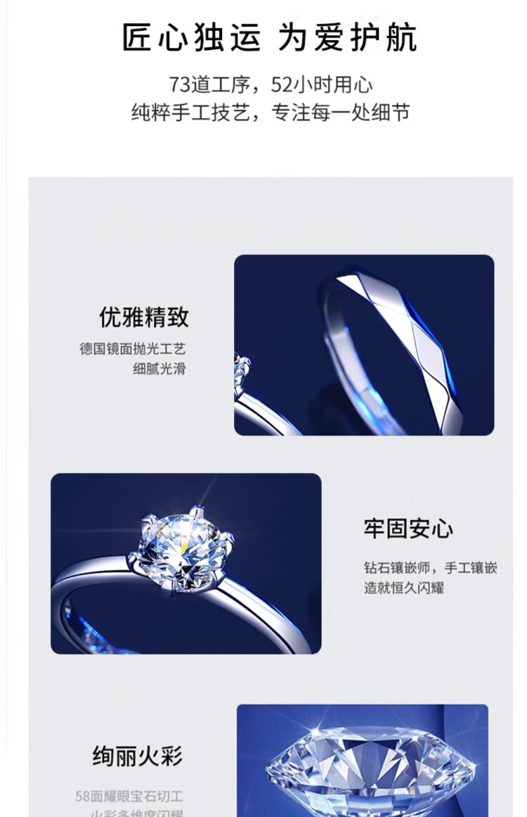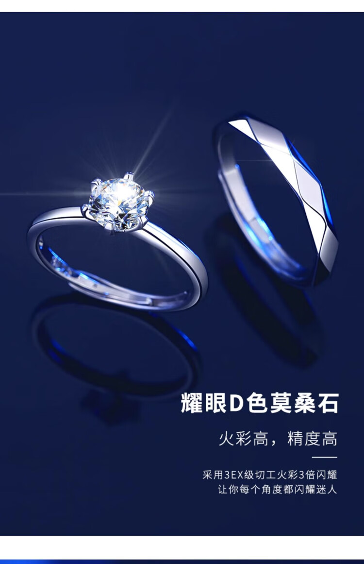 RHM Eternal Love Platinum Couple Ring Moissanite Diamond Ring Six-Prong Wedding Ring Valentine's Day Gift for Girlfriend A Pair of Platinum Couple Rings + Certificate + Gift Box