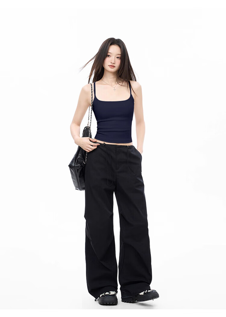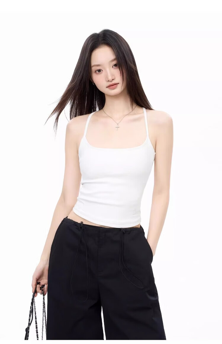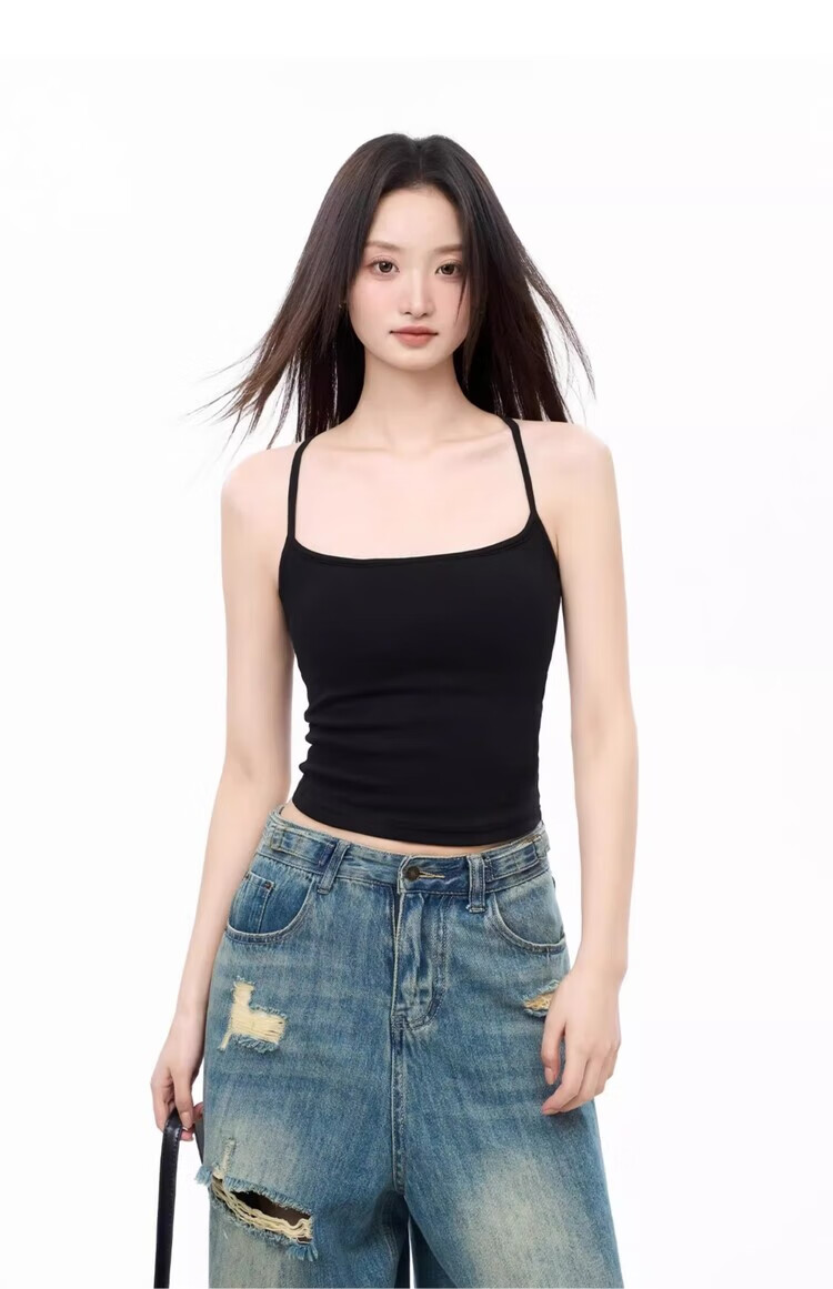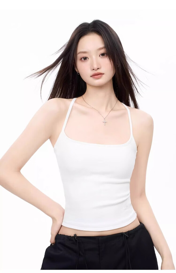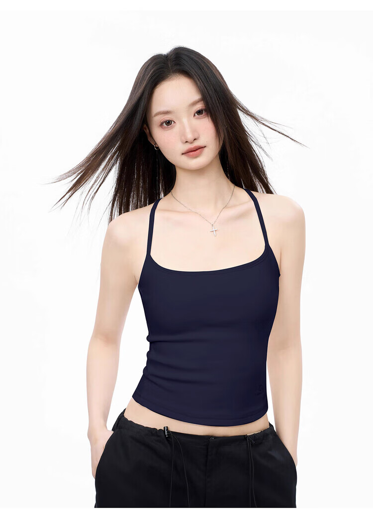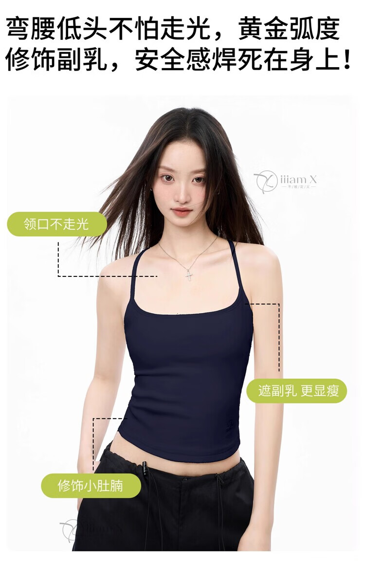 IiiamX navy blue camisole with breast pads for women 2025 summer beautiful back underwear with hot girl tops black S recommended 85-100Jin Jin is equal to 0.5 kg