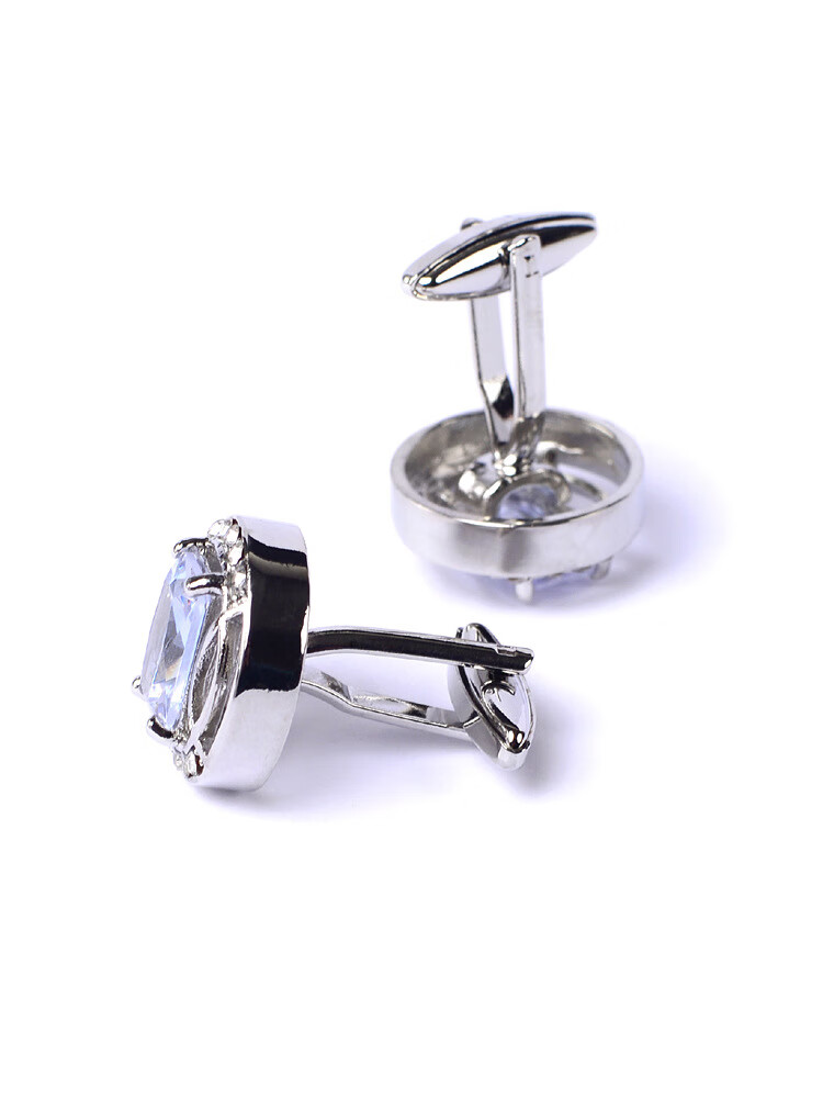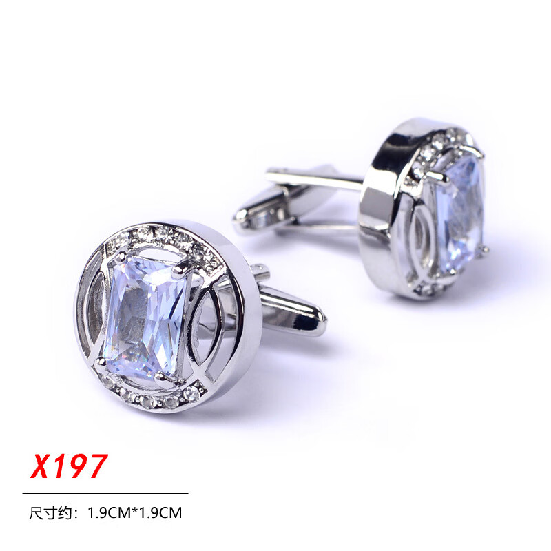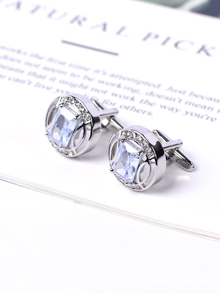 YWZR French shirt cuff buttons for men, light luxury round hollow square diamond silver cuff buttons groom wedding banquet accessories trendy X197 square diamond silver ring 2 pieces