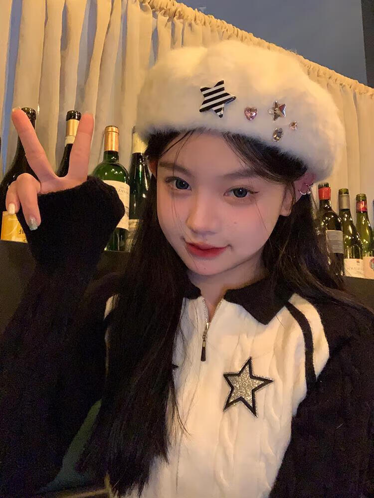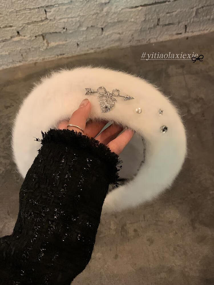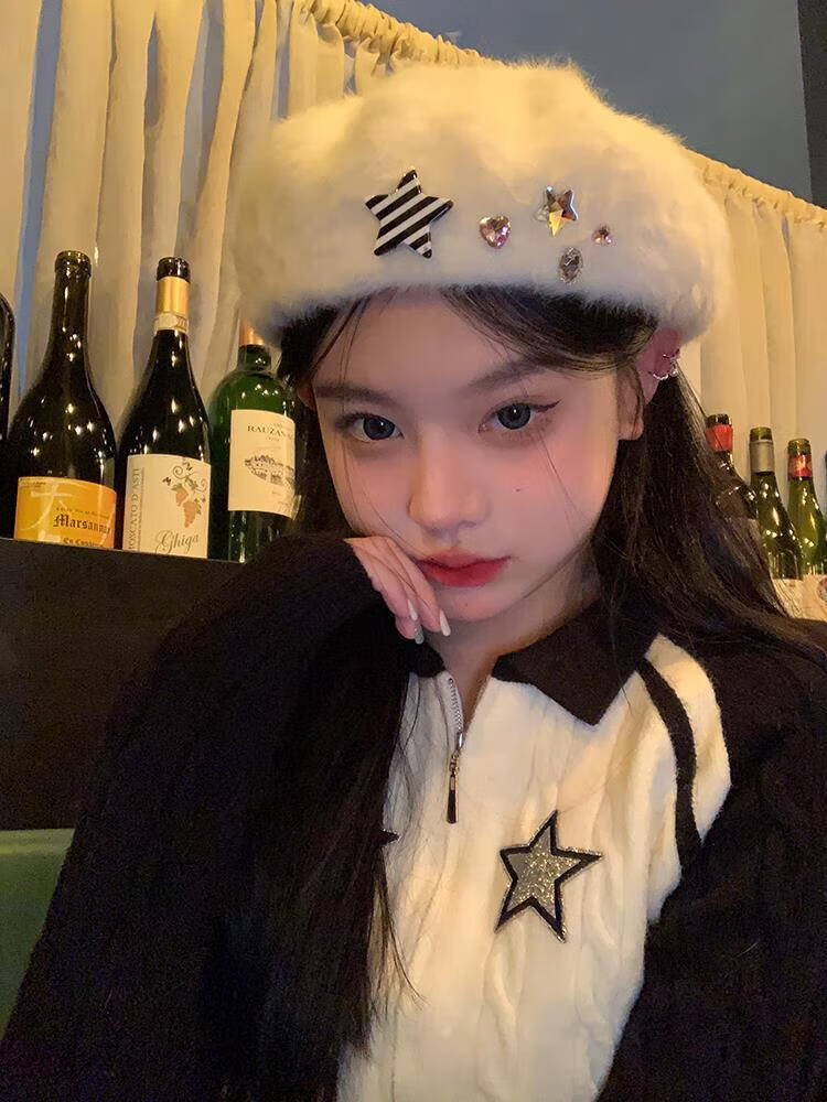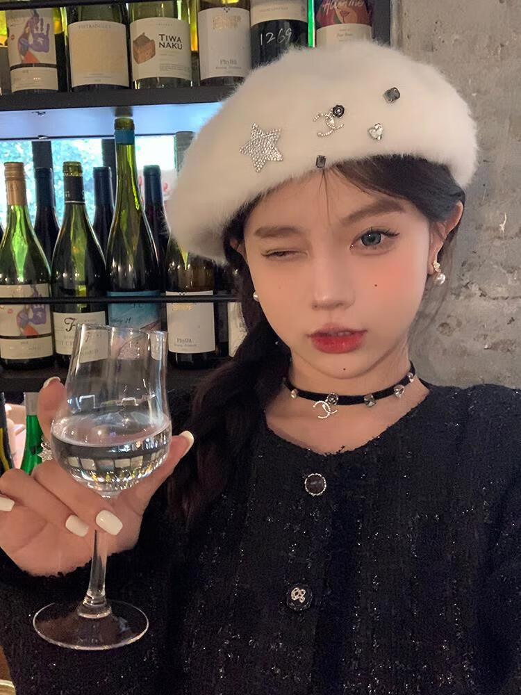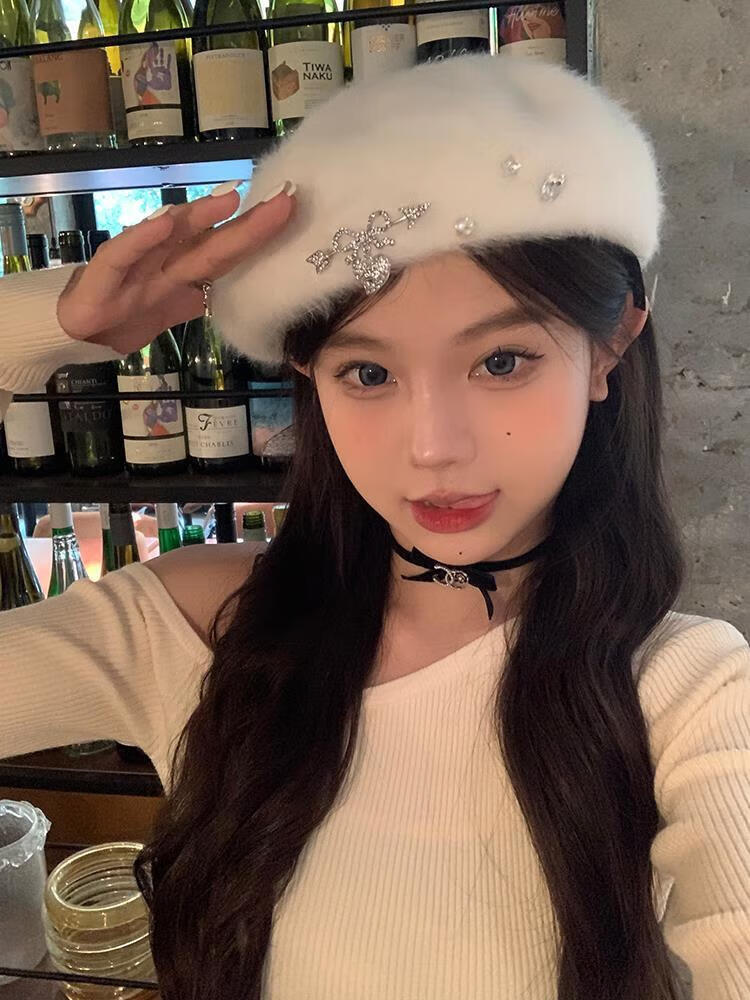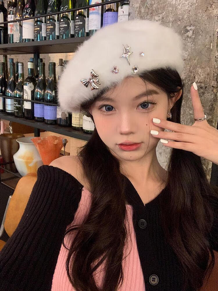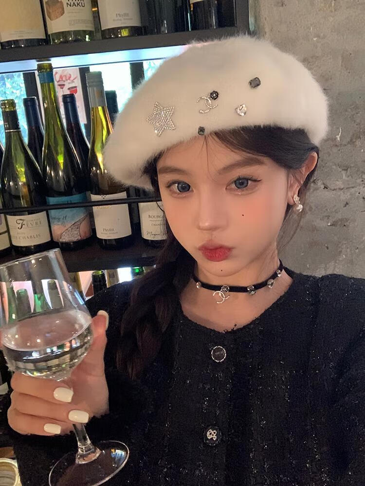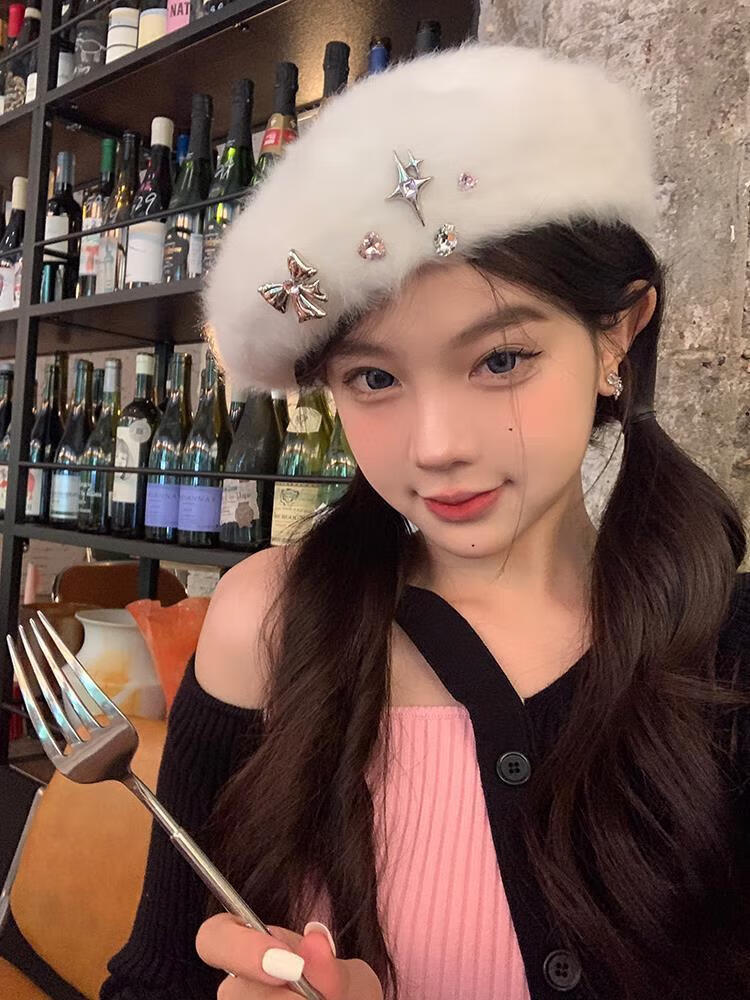 Miss Right's daughter, the heroine, original white beret, Cupid Love Autumn and Winter Plush, small face-showing painter's hat for women, daughter, heroine, planet model, M 54-58cm