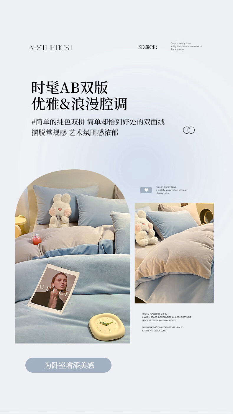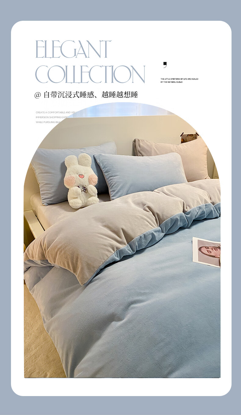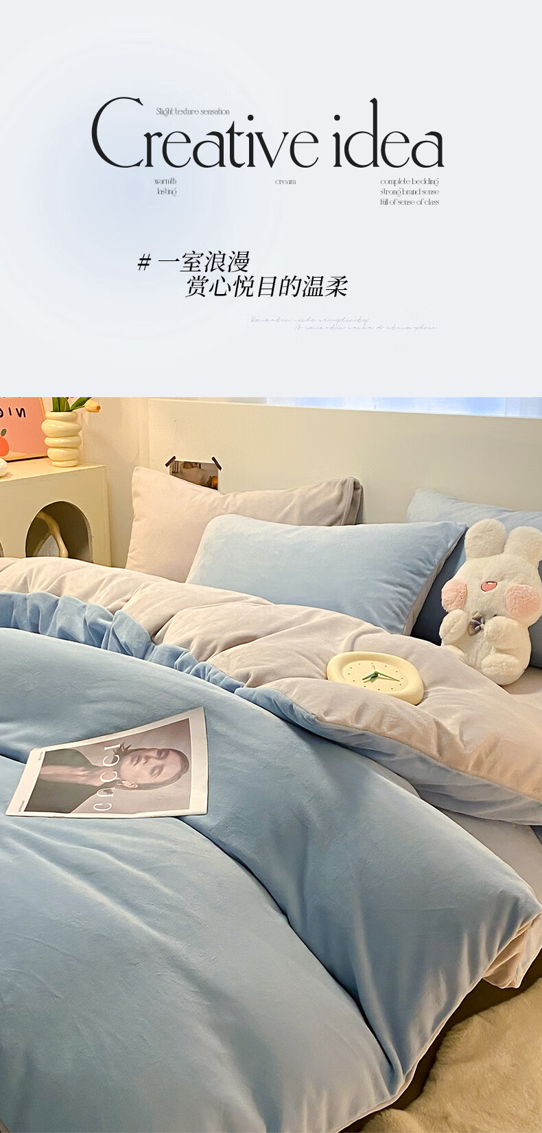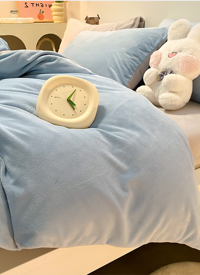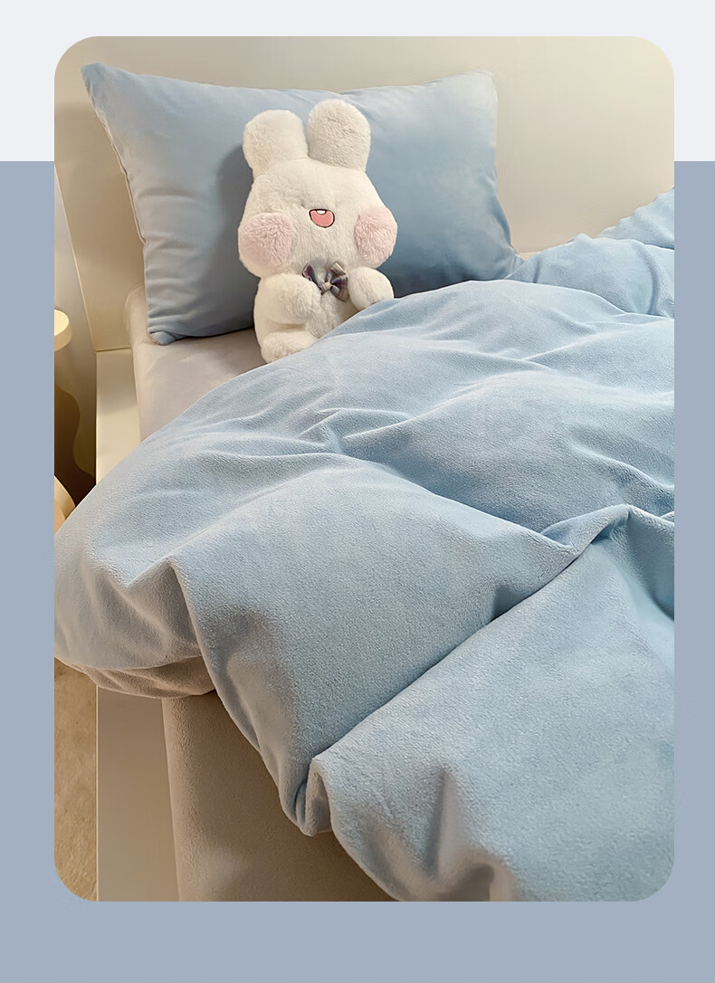 Red bean milk velvet quilt cover 150x200cm single piece winter thickened warm double quilt cover coral velvet bed four-piece set milk white + baby blue double-sided warm velvet thermal storage and warmth single quilt cover-200x230cm