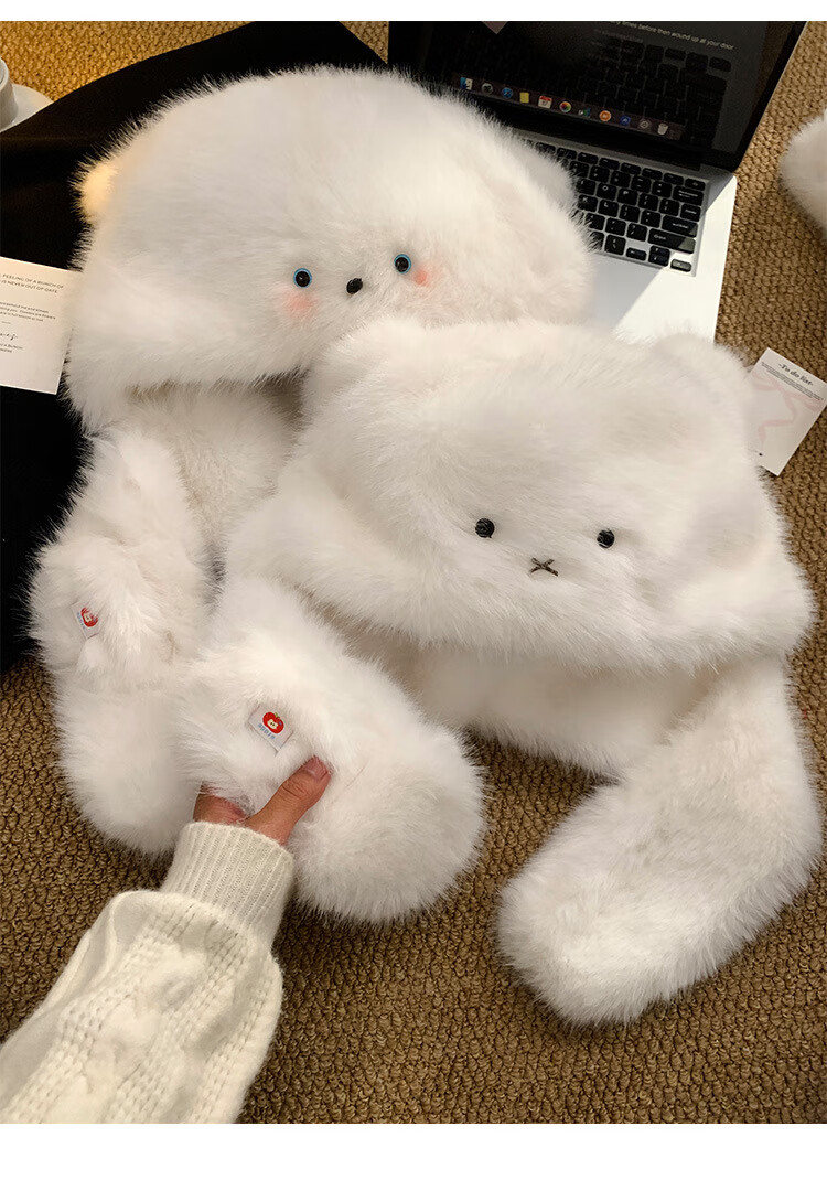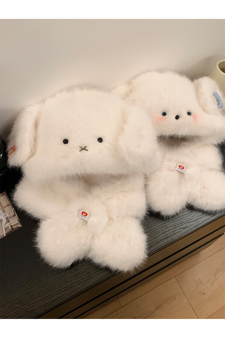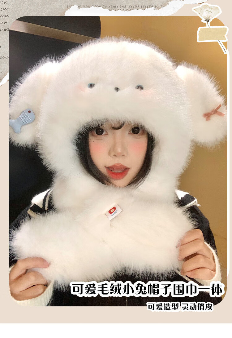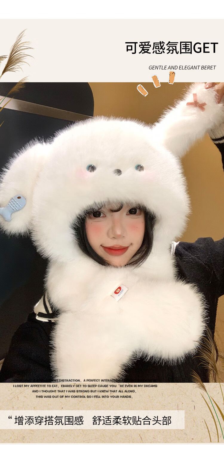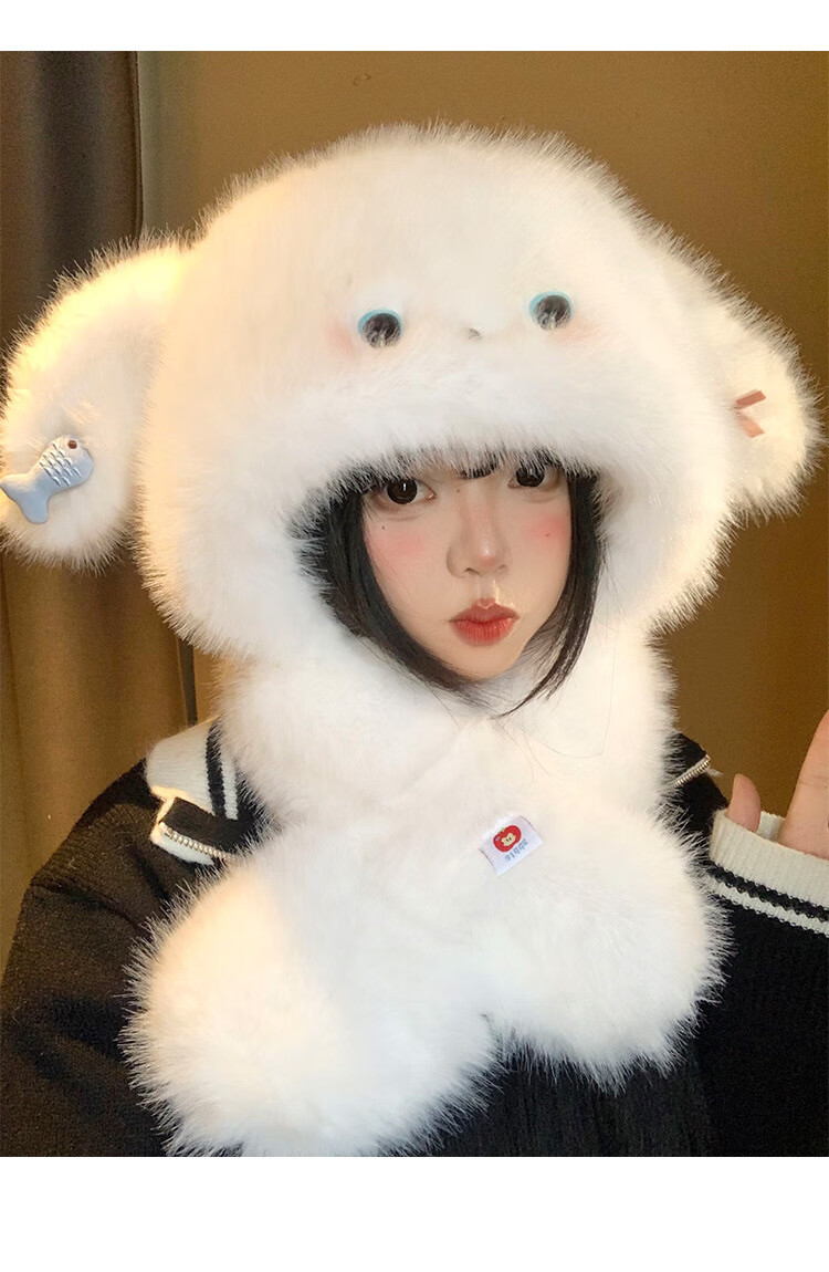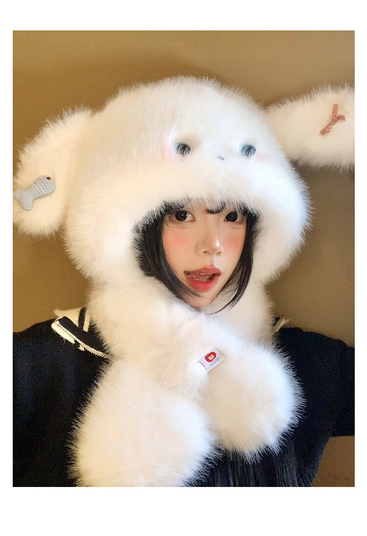 CTRLEND2025 New Cute Puppy Ears Plush Hat Scarf All-In-One Winter Ear Protection Cold Warm Lei Feng Hat Small Fish Puppy Plush Hat