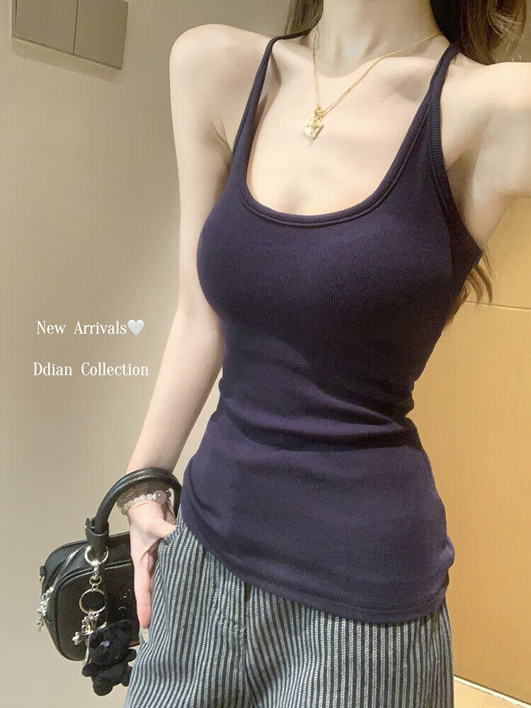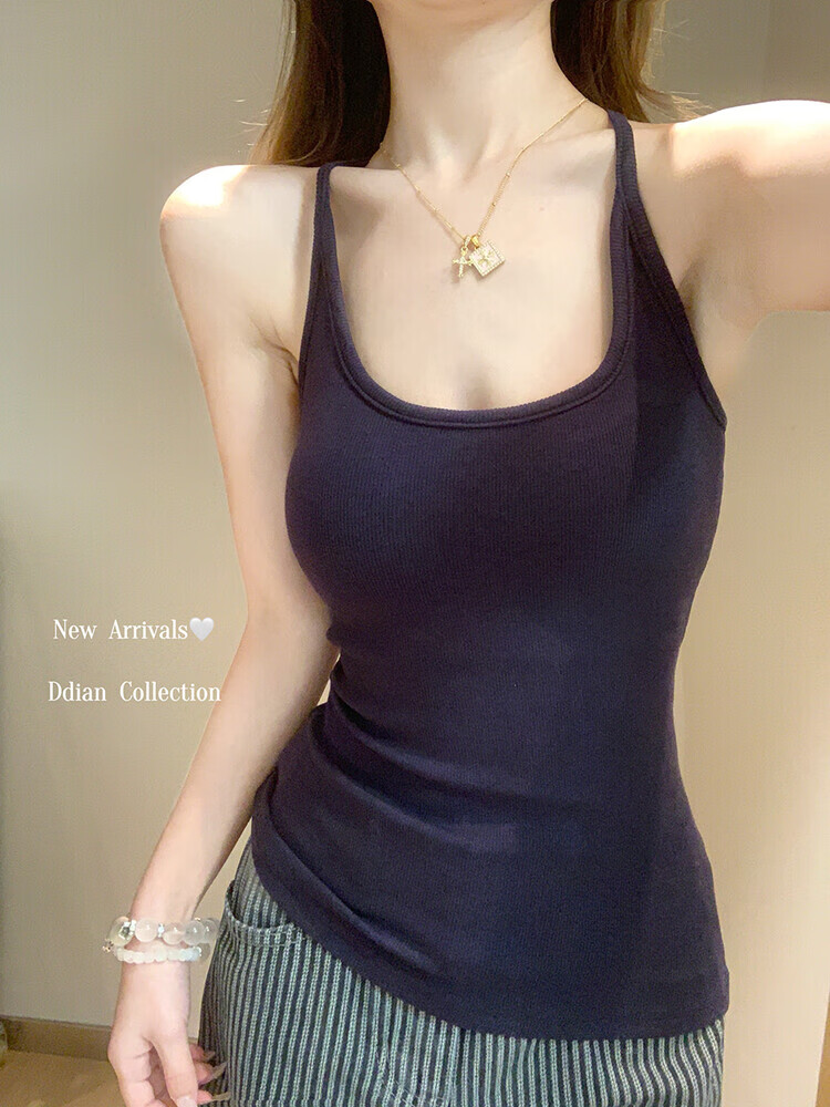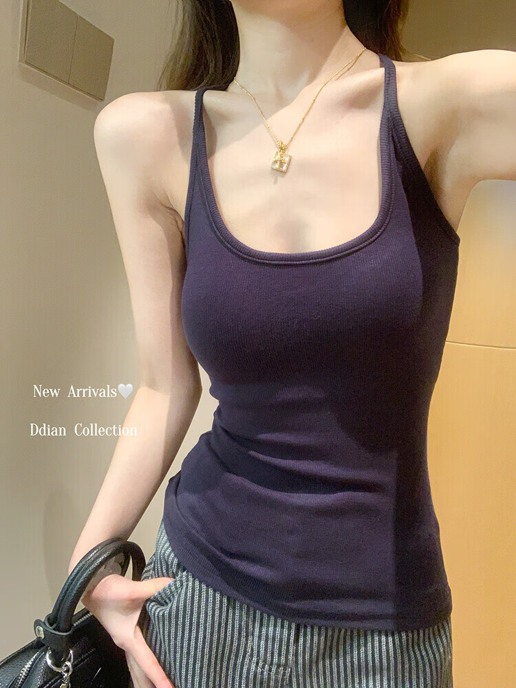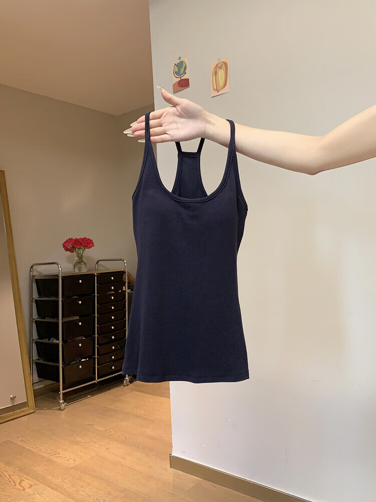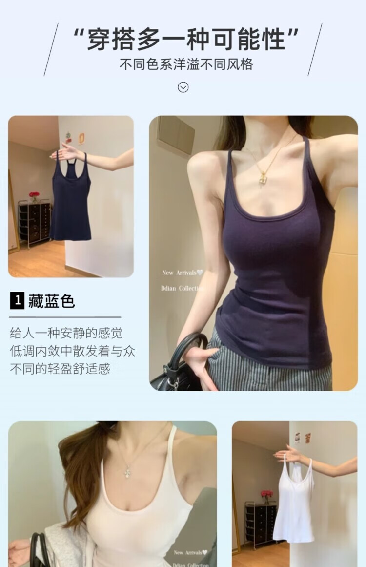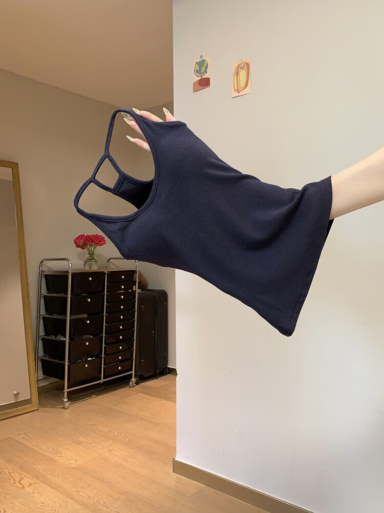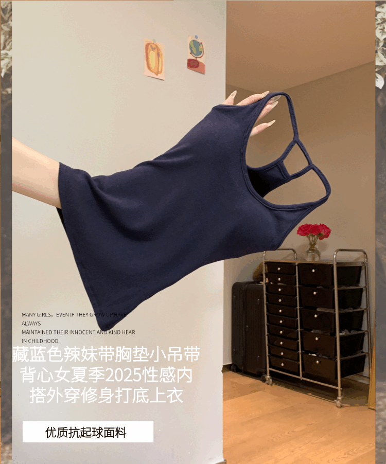 Navy hot girl's small camisole with breast pads for women summer 2025 inner wear and outer wear slim bottoming top Navy blue M 90-105Jin Jin is equal to 0.5 kg