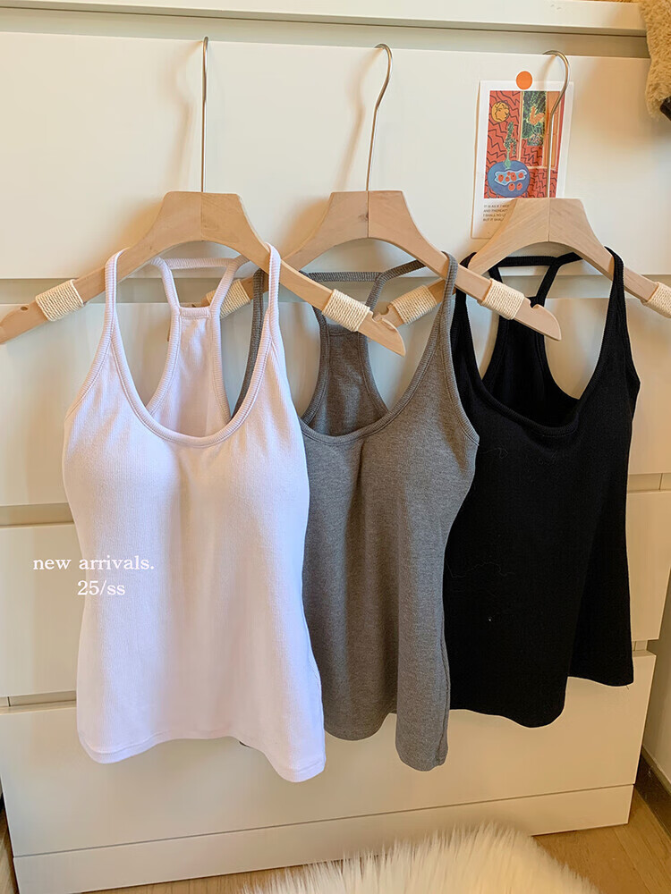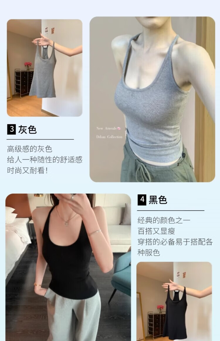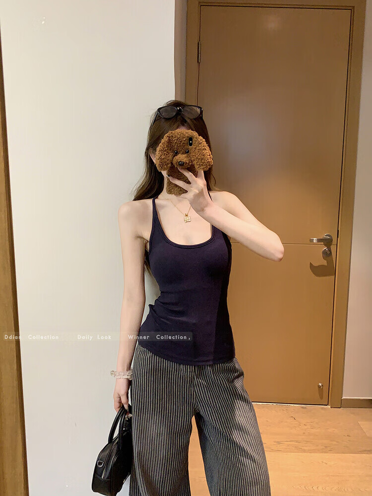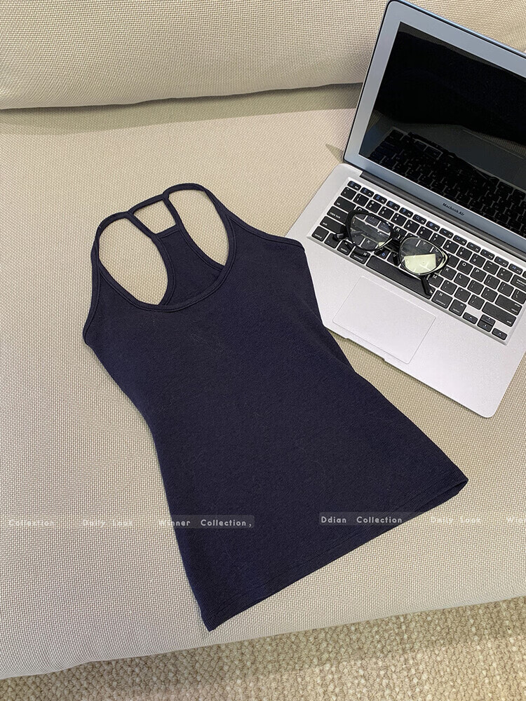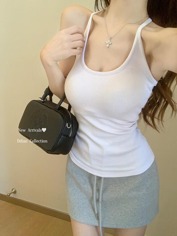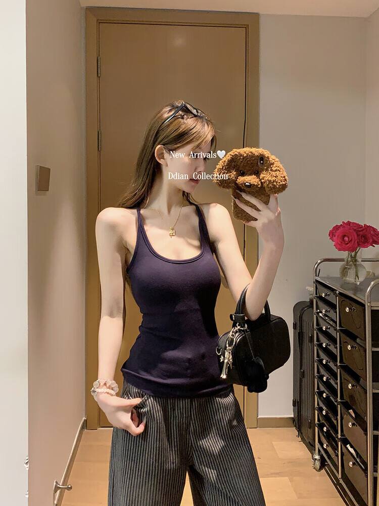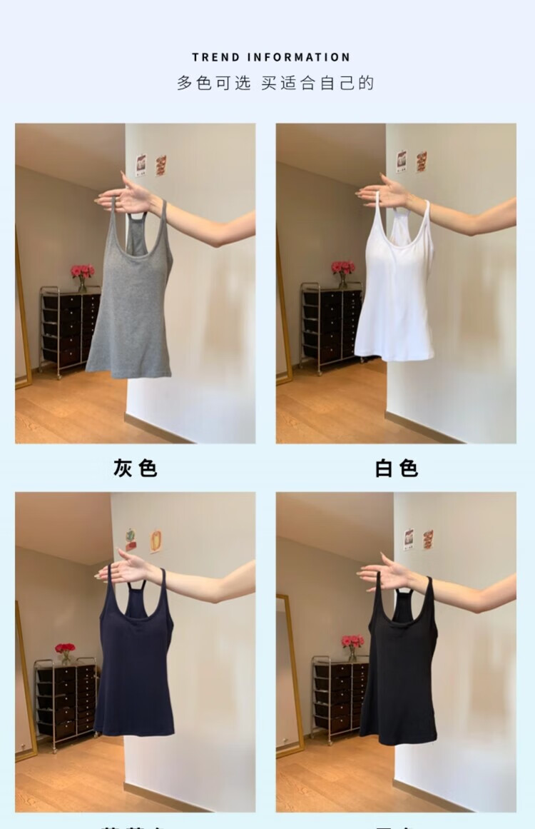 Navy hot girl's small camisole with breast pads for women summer 2025 inner wear and outer wear slim bottoming top Navy blue M 90-105Jin Jin is equal to 0.5 kg