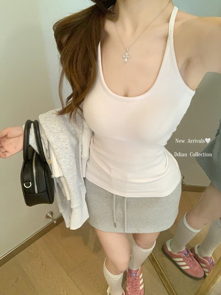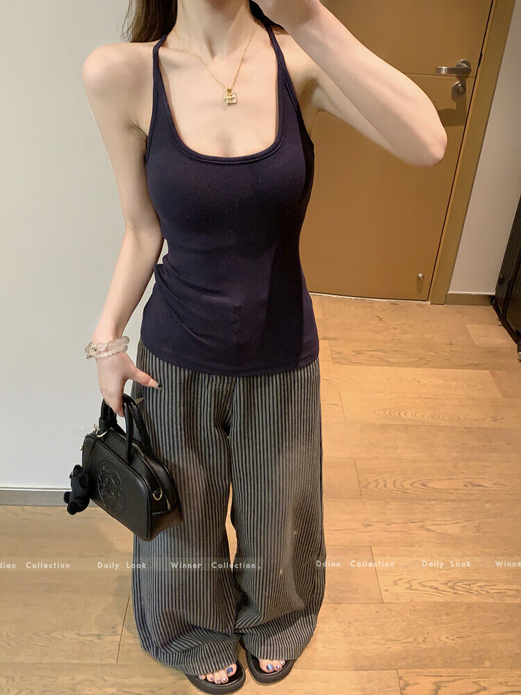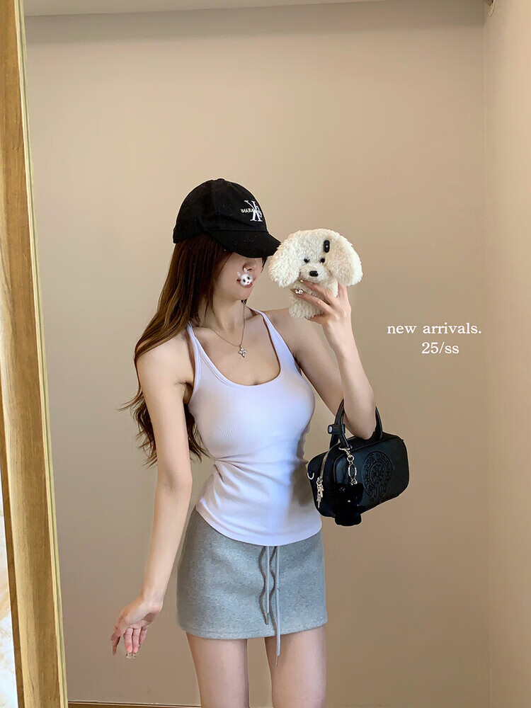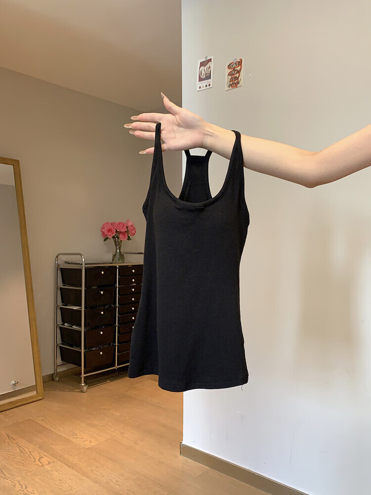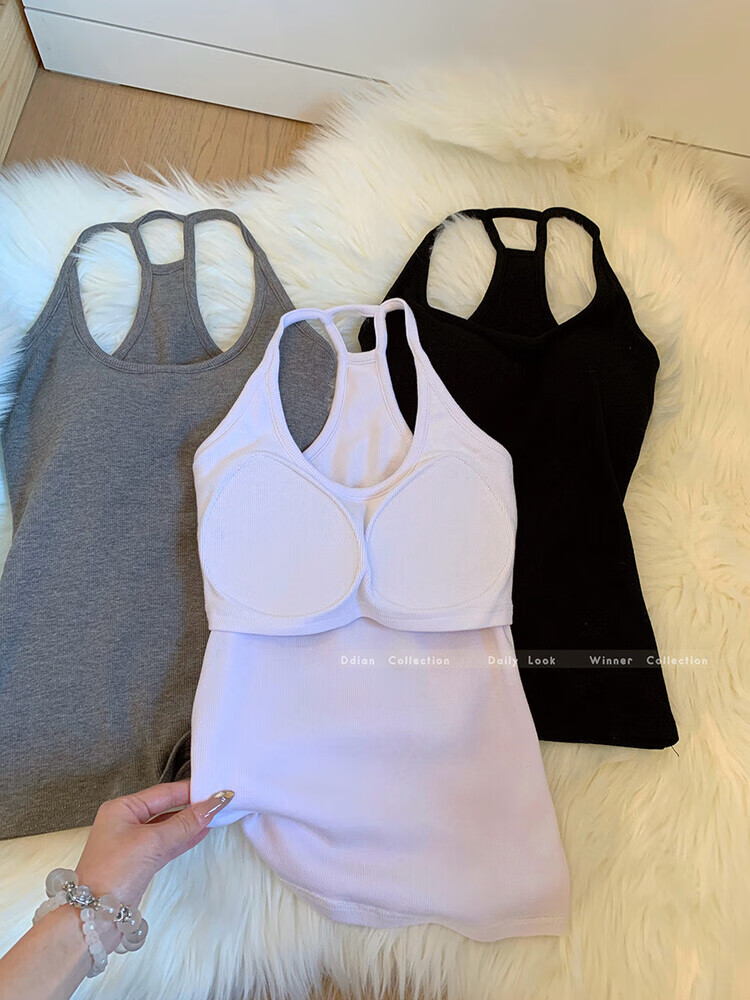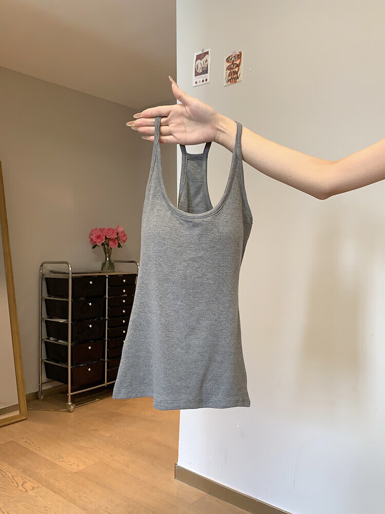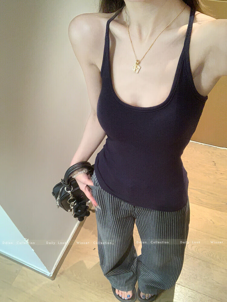 Navy hot girl's small camisole with breast pads for women summer 2025 inner wear and outer wear slim bottoming top Navy blue M 90-105Jin Jin is equal to 0.5 kg