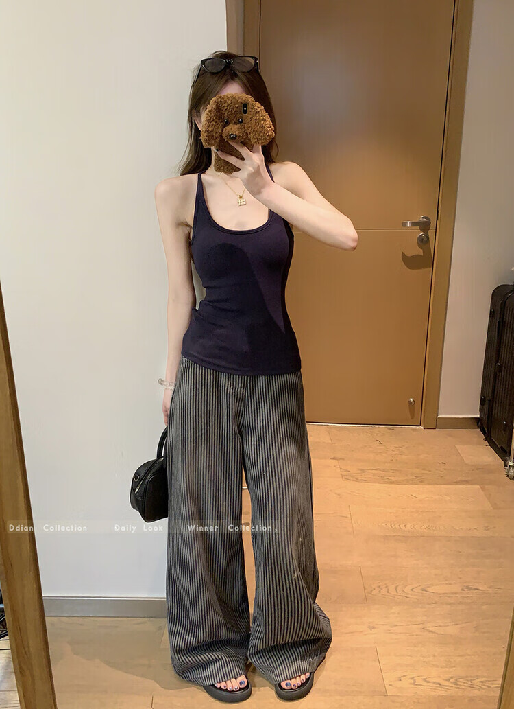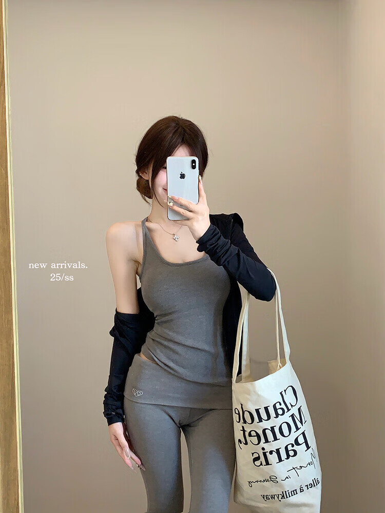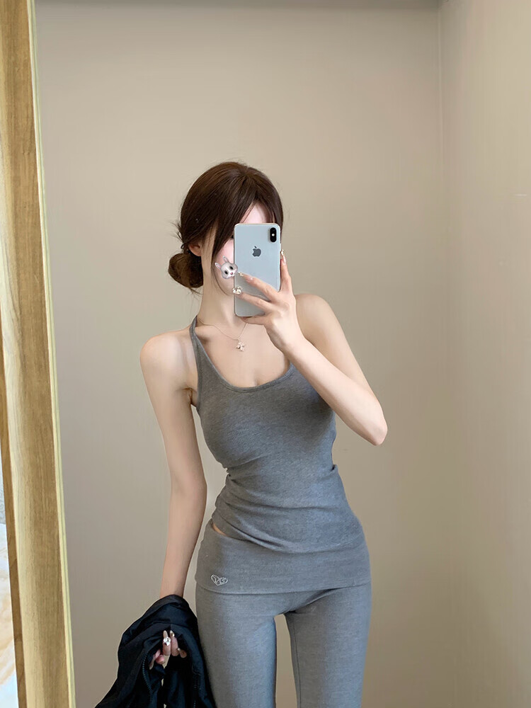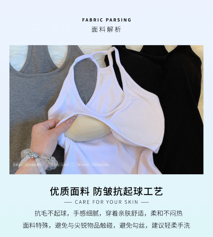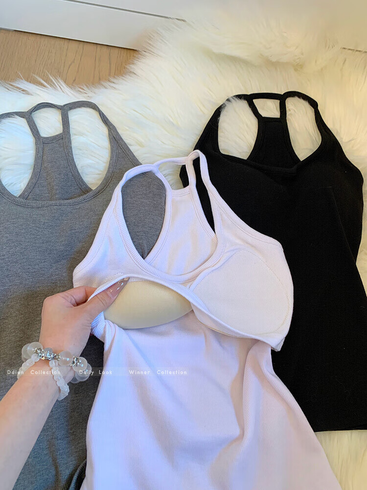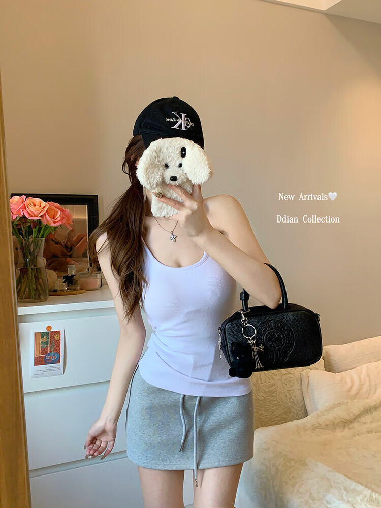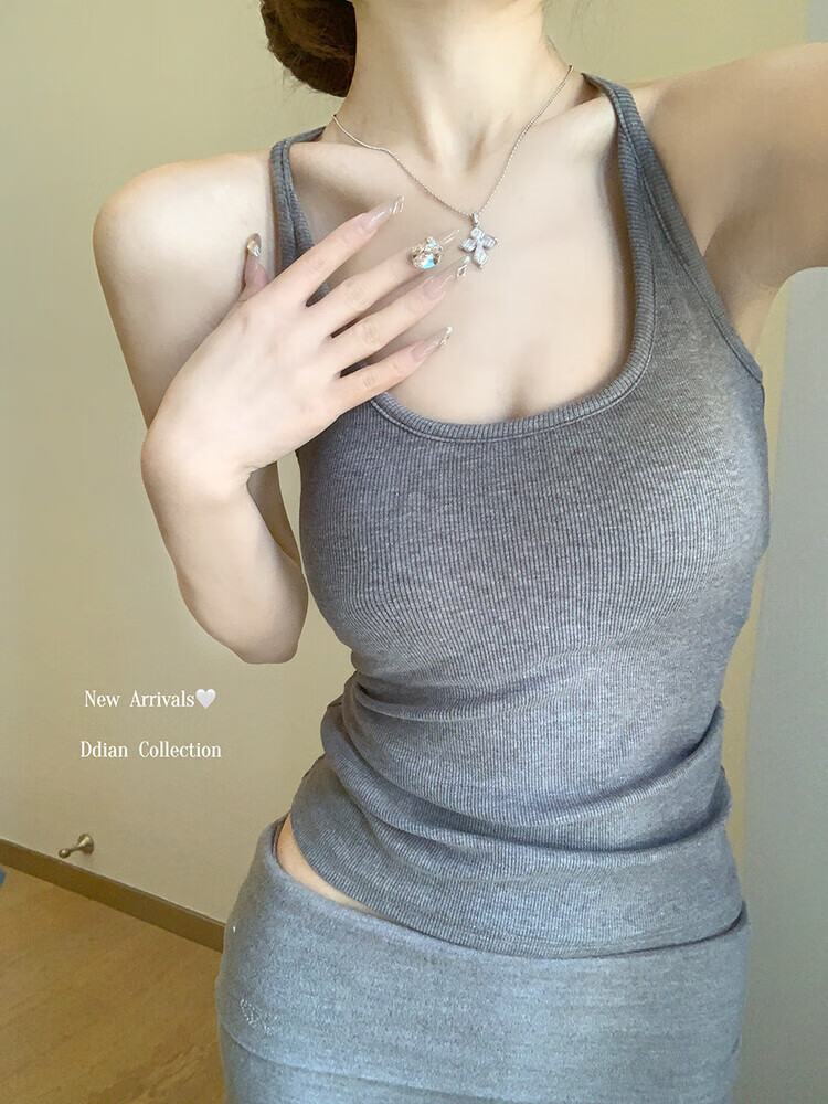 Navy hot girl's small camisole with breast pads for women summer 2025 inner wear and outer wear slim bottoming top Navy blue M 90-105Jin Jin is equal to 0.5 kg