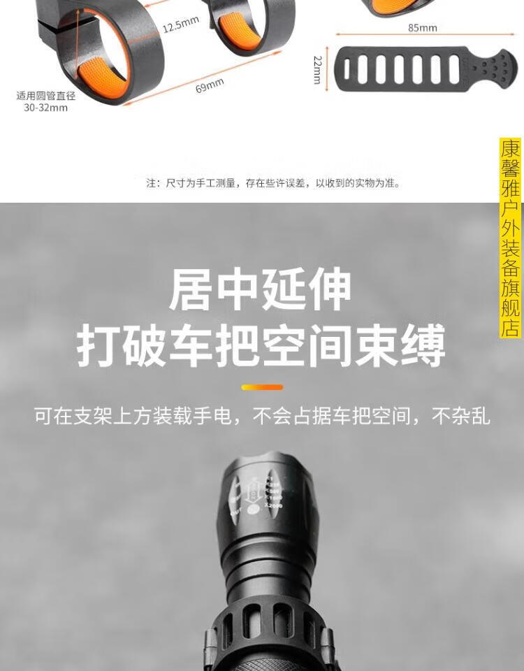 Ayub bicycle flashlight bracket mountain bike night riding light clip riding center handlebar double hole fixing clip quick release equipment 360-degree rotating magic strap type