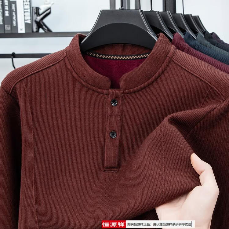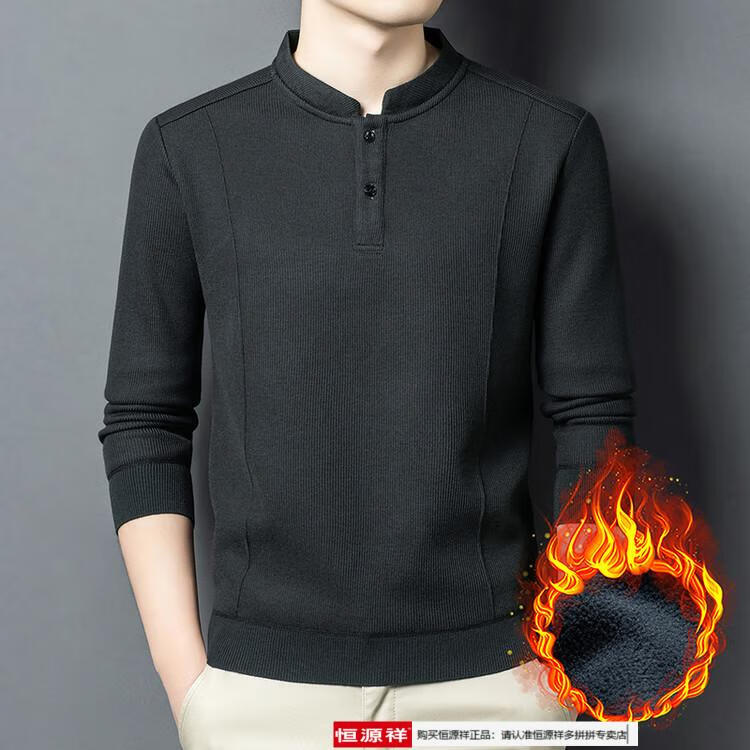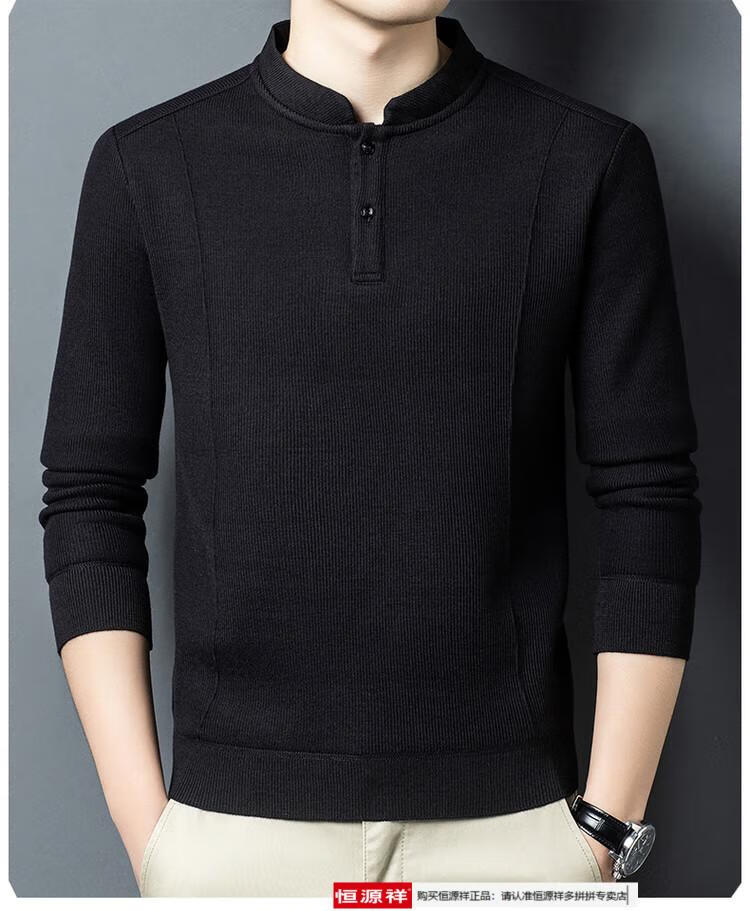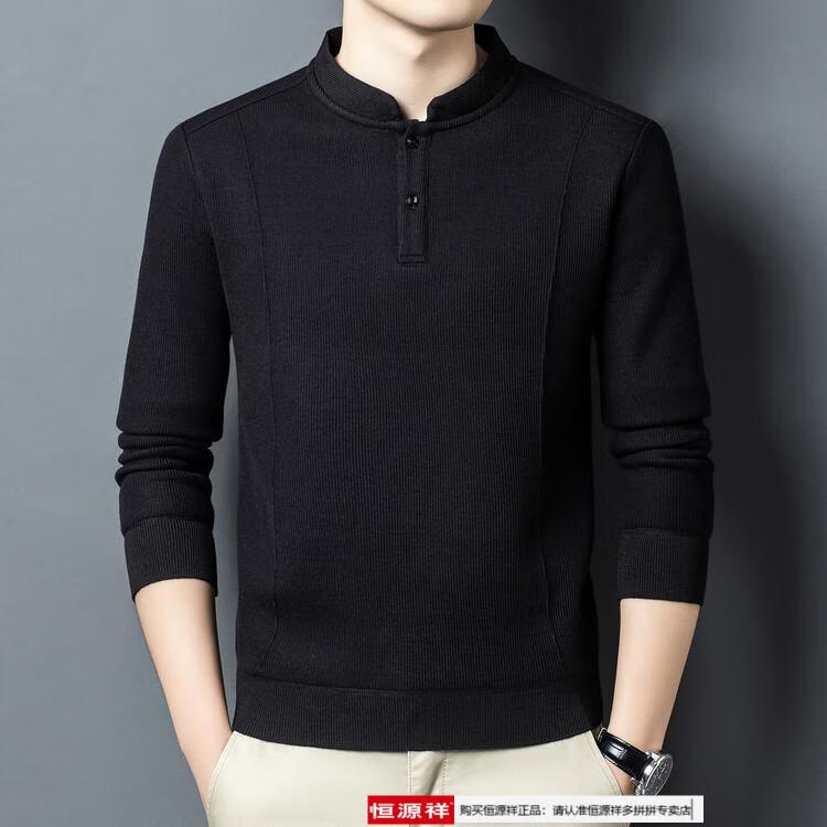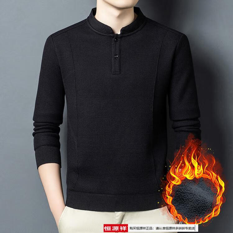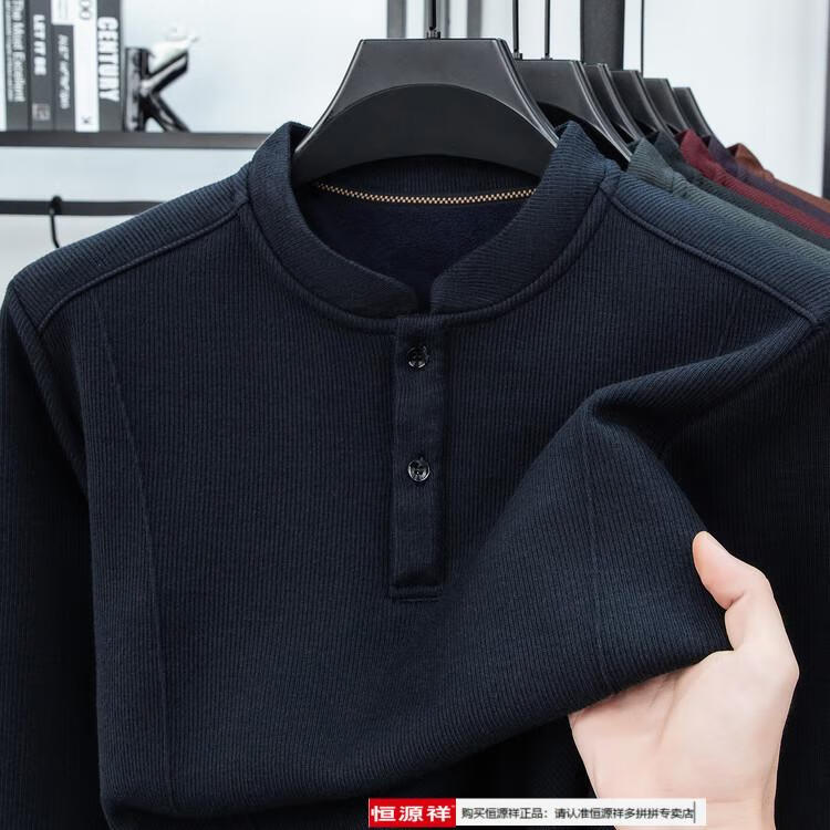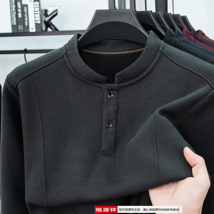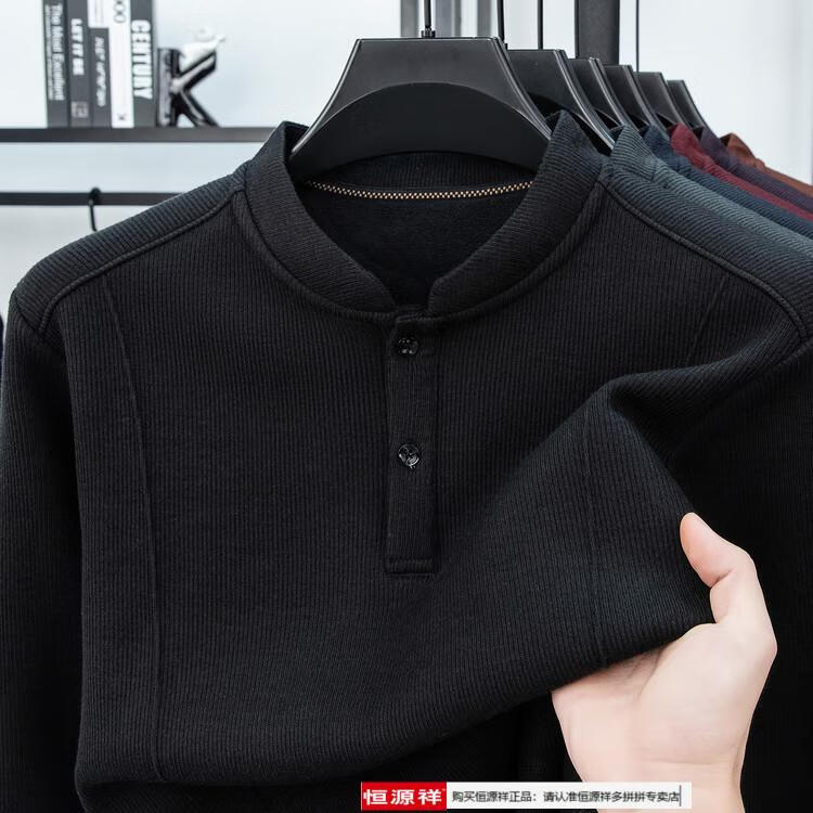 Hengyuanxiang autumn and winter double-sided German velvet bottoming shirt men's Henry collar trendy versatile long-sleeved T-shirt stand-up collar sweatshirt for men black XL