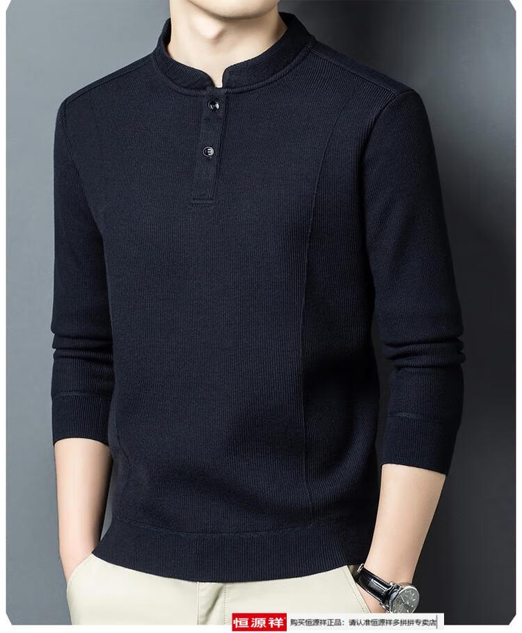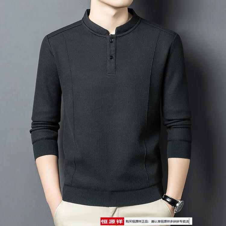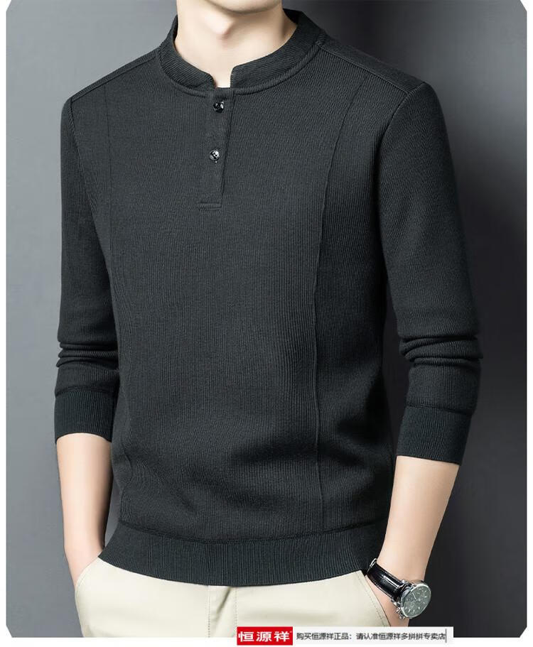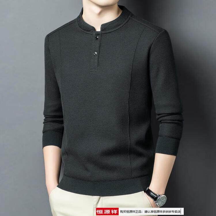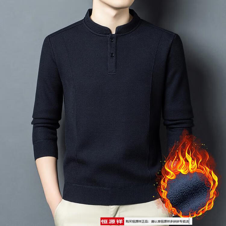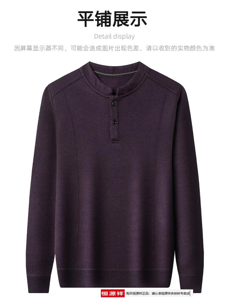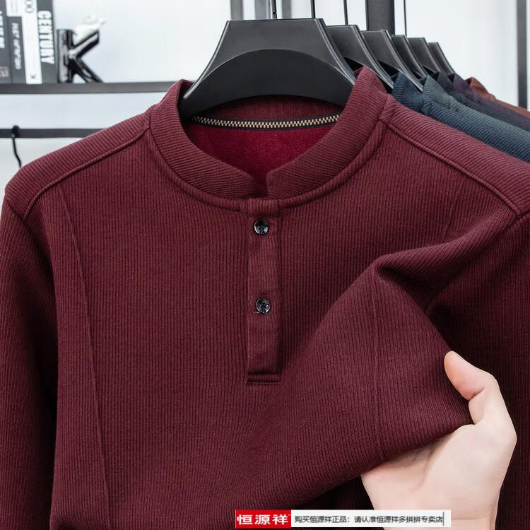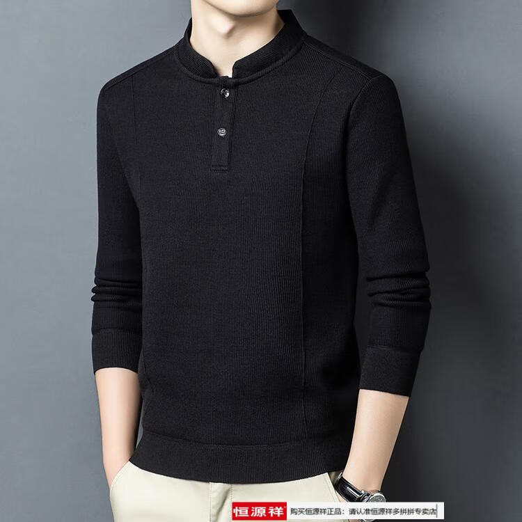 Hengyuanxiang autumn and winter double-sided German velvet bottoming shirt men's Henry collar trendy versatile long-sleeved T-shirt stand-up collar sweatshirt for men black XL