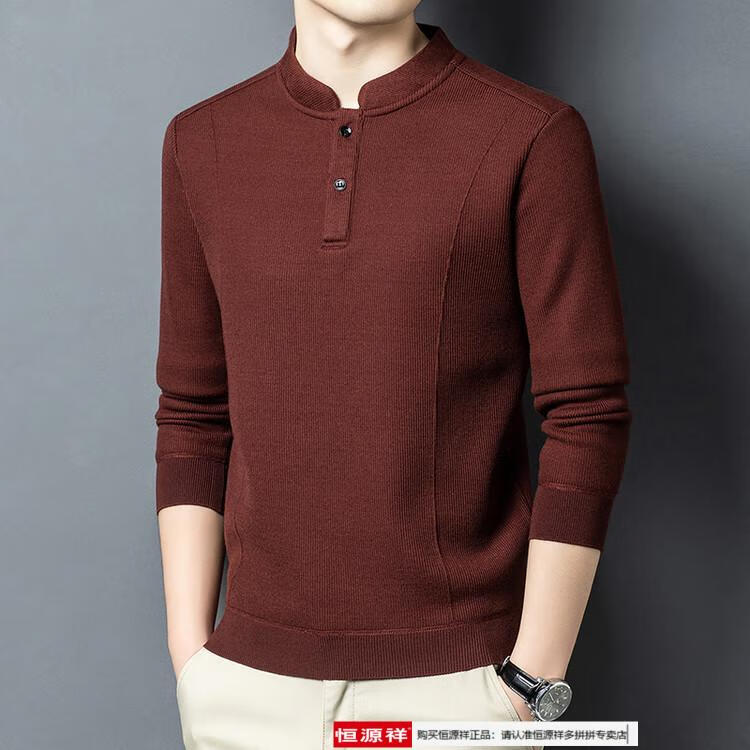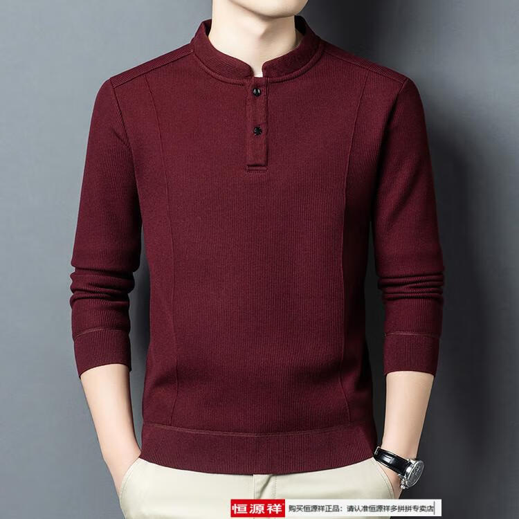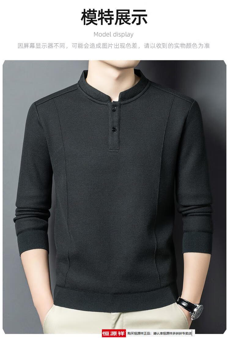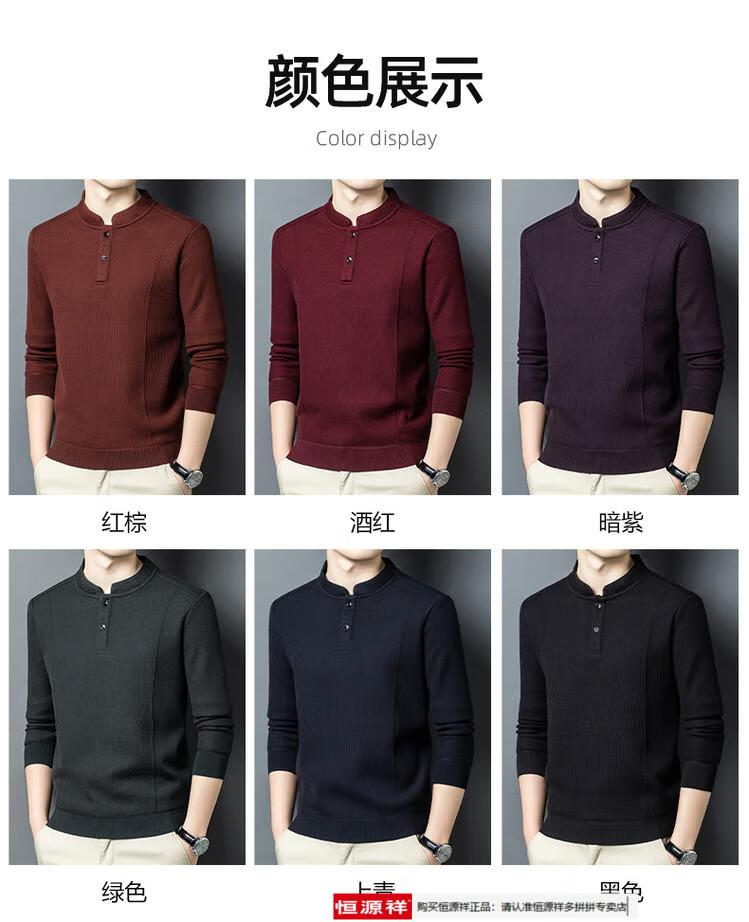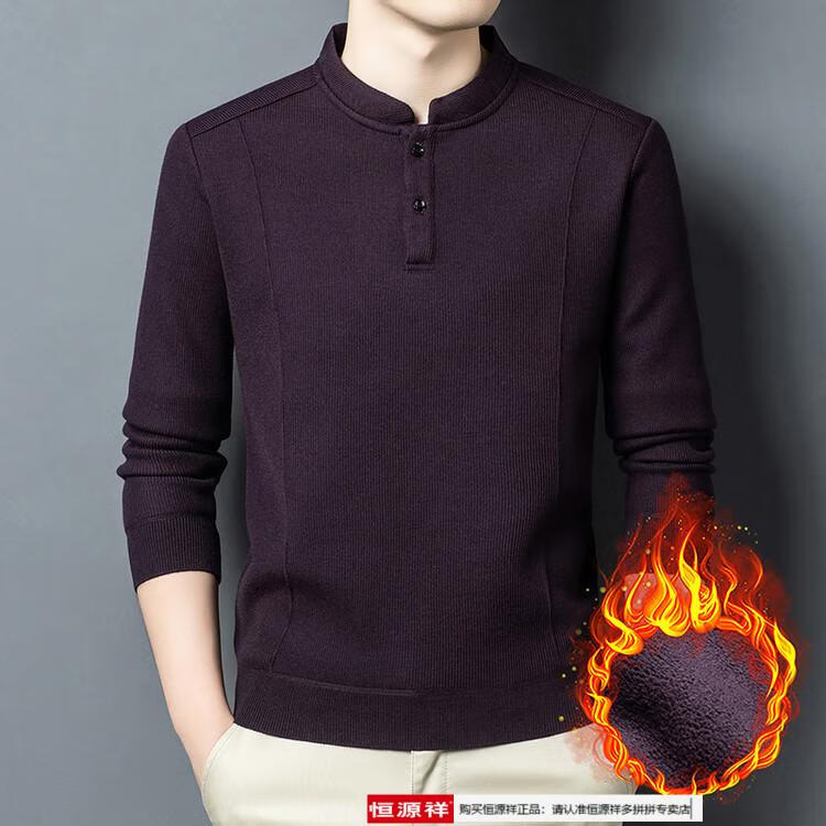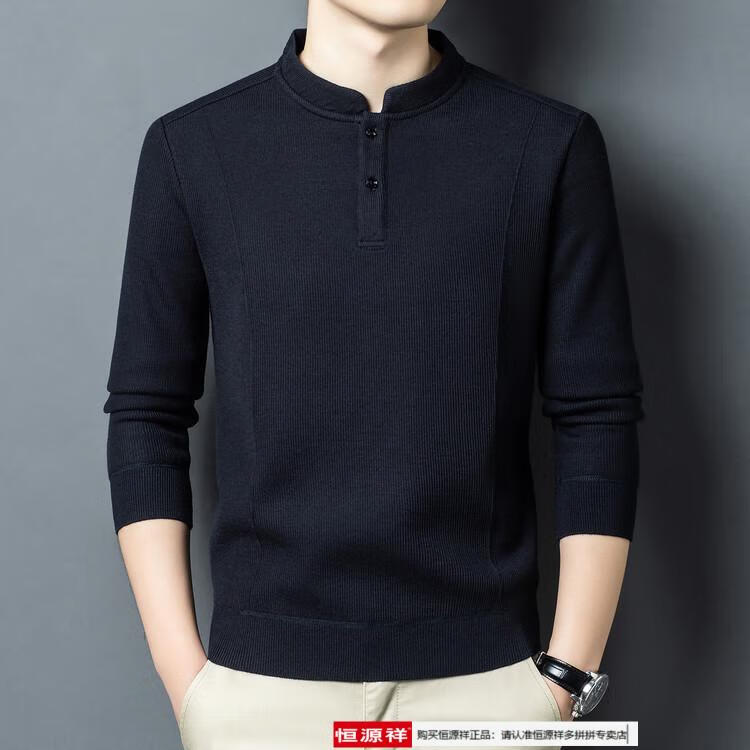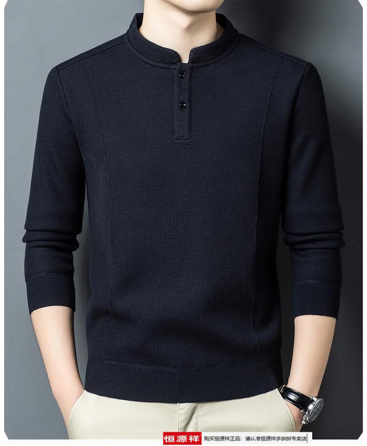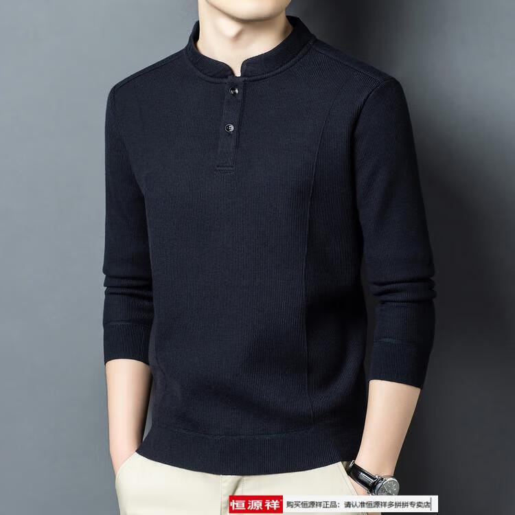 Hengyuanxiang autumn and winter double-sided German velvet bottoming shirt men's Henry collar trendy versatile long-sleeved T-shirt stand-up collar sweatshirt for men black XL