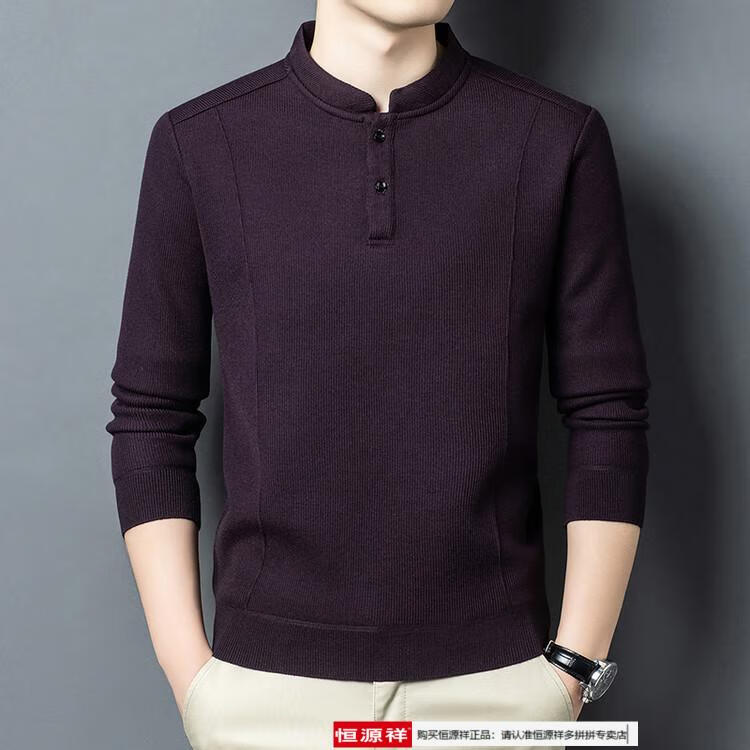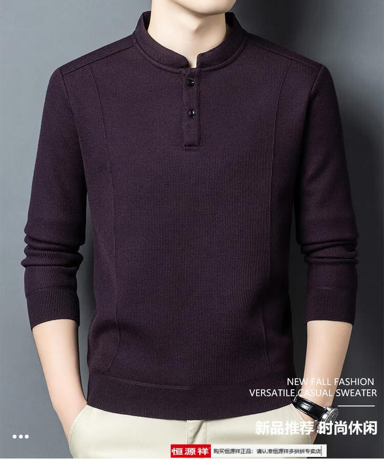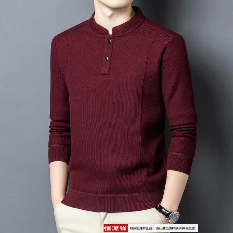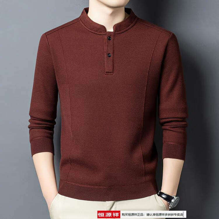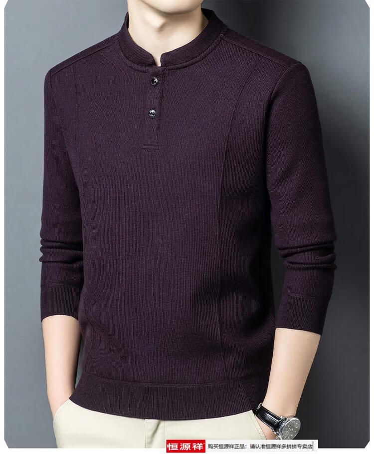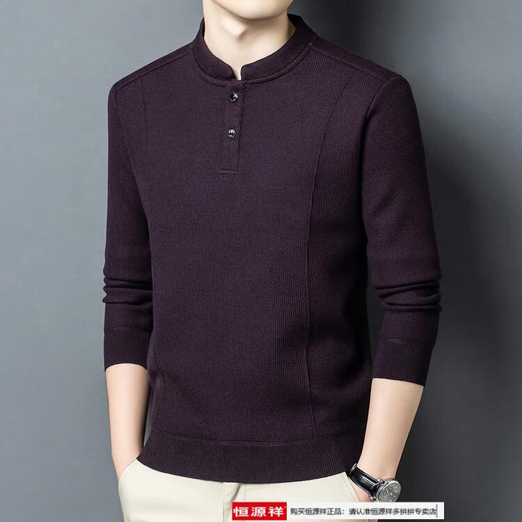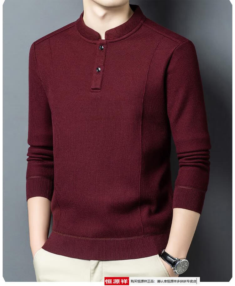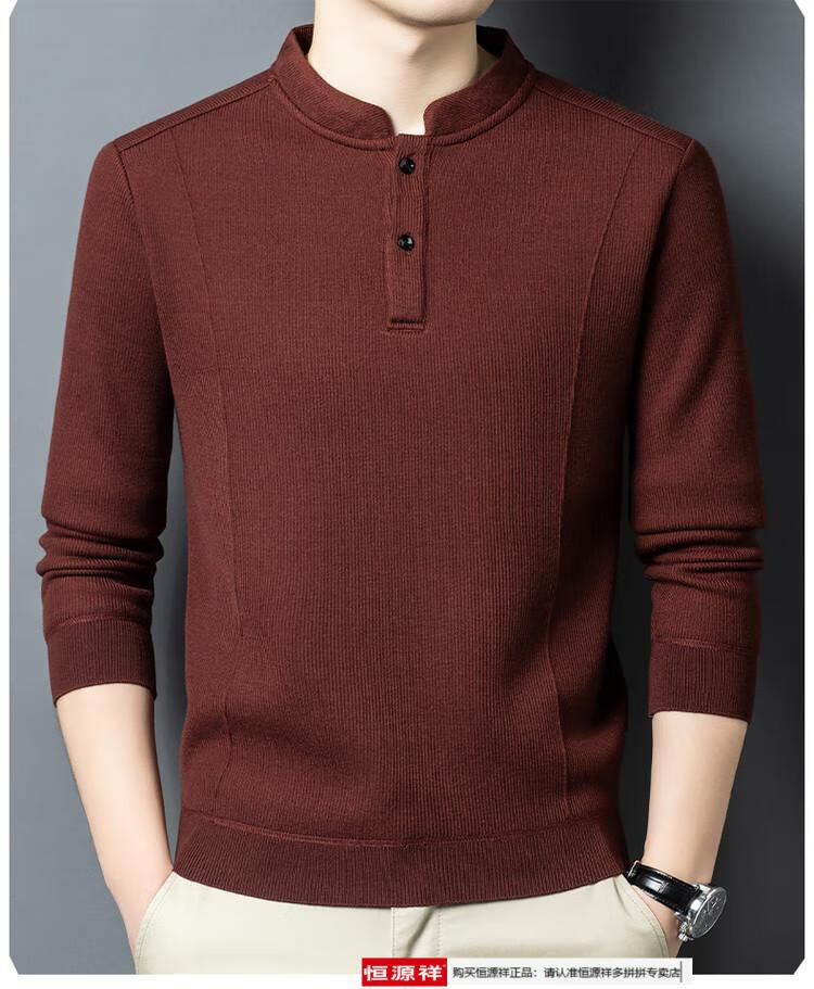 Hengyuanxiang autumn and winter double-sided German velvet bottoming shirt men's Henry collar trendy versatile long-sleeved T-shirt stand-up collar sweatshirt for men black XL