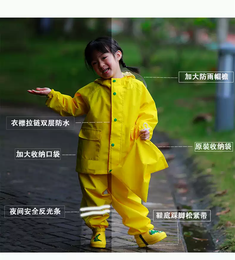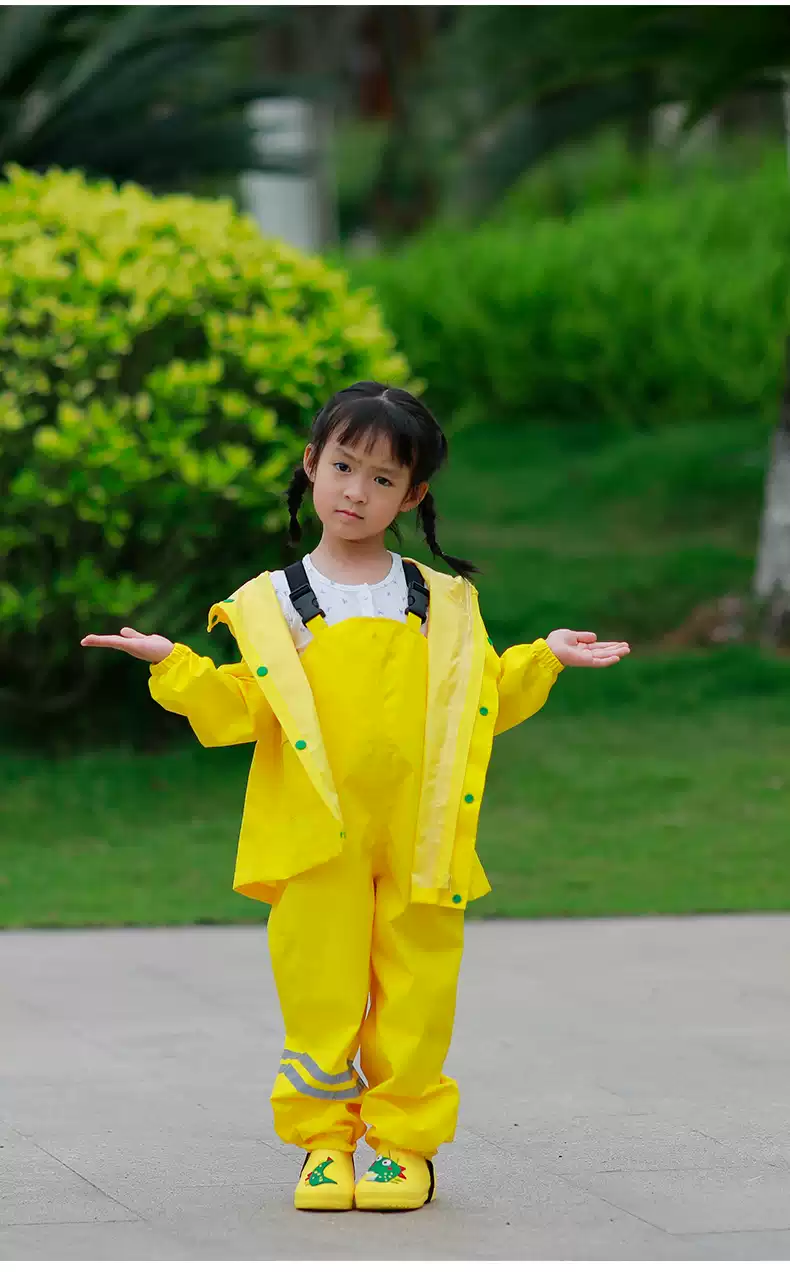 Fantasy children's raincoat overalls rain pants one-piece Anji play clothes dual-purpose waterproof full body boys and girls kindergarten set 901 yellow overalls + top M M