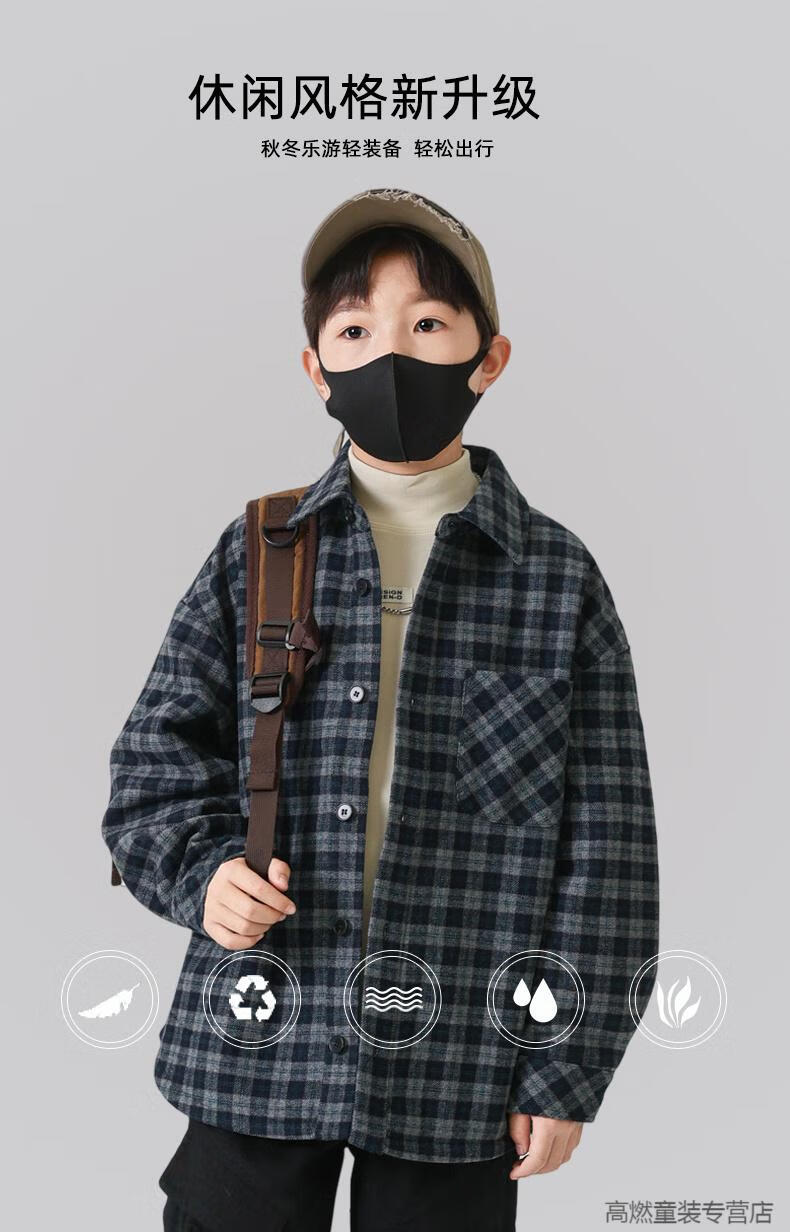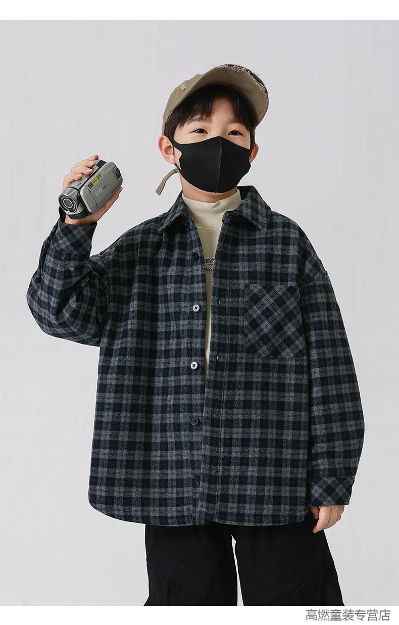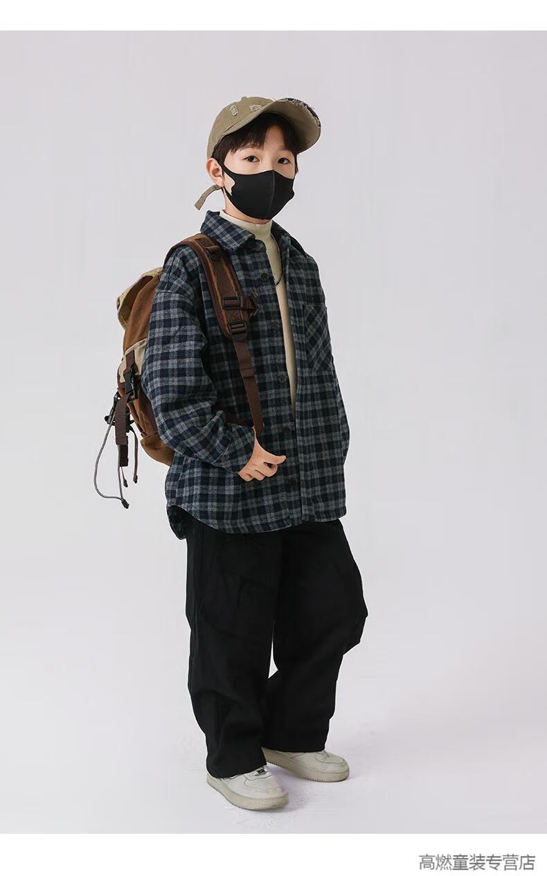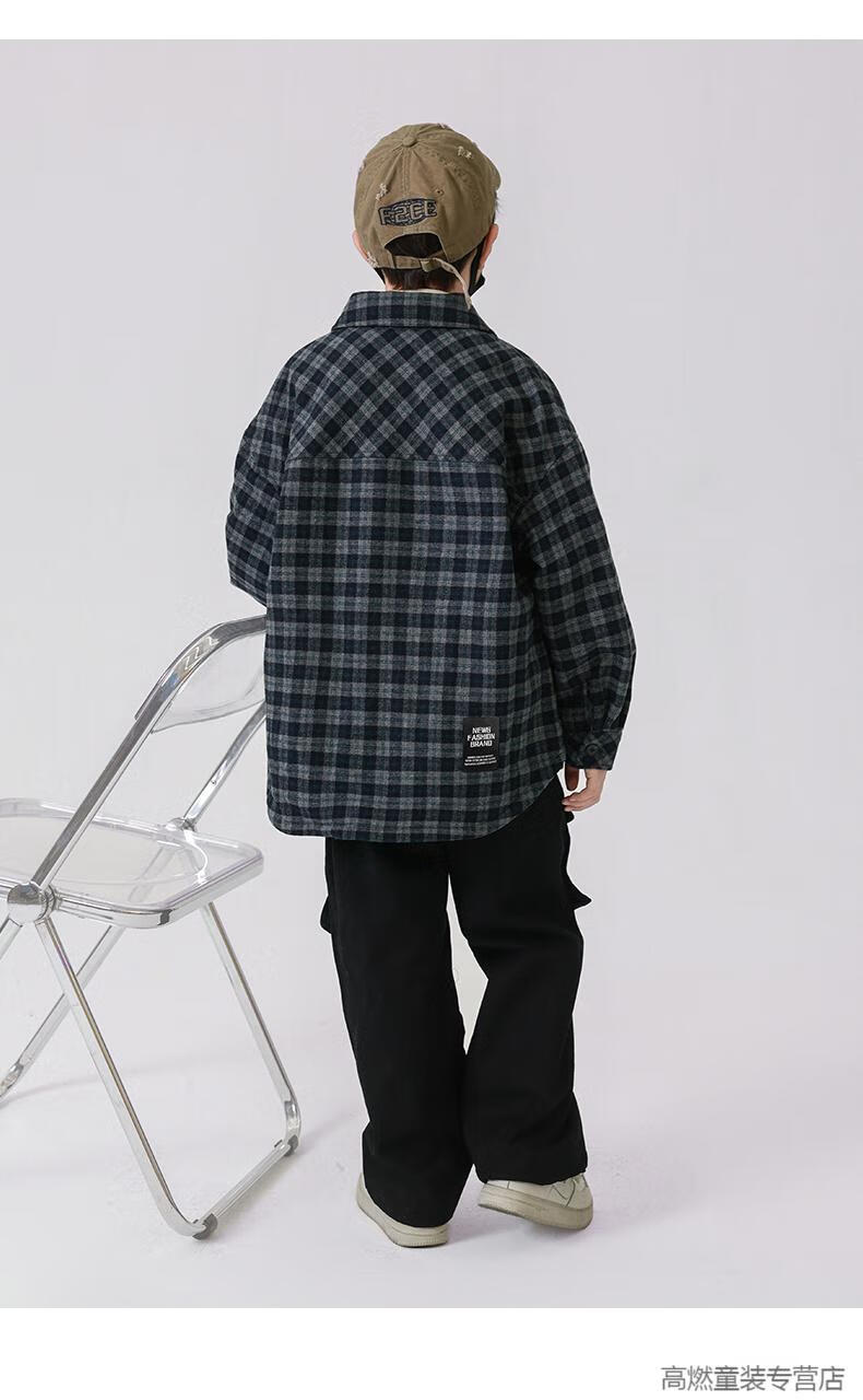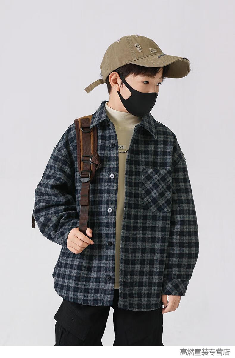 G.duck boys' quilted shirt autumn and winter velvet thickened jacket 24 new style medium and large children's style Korean tartan plaid color 120 cm