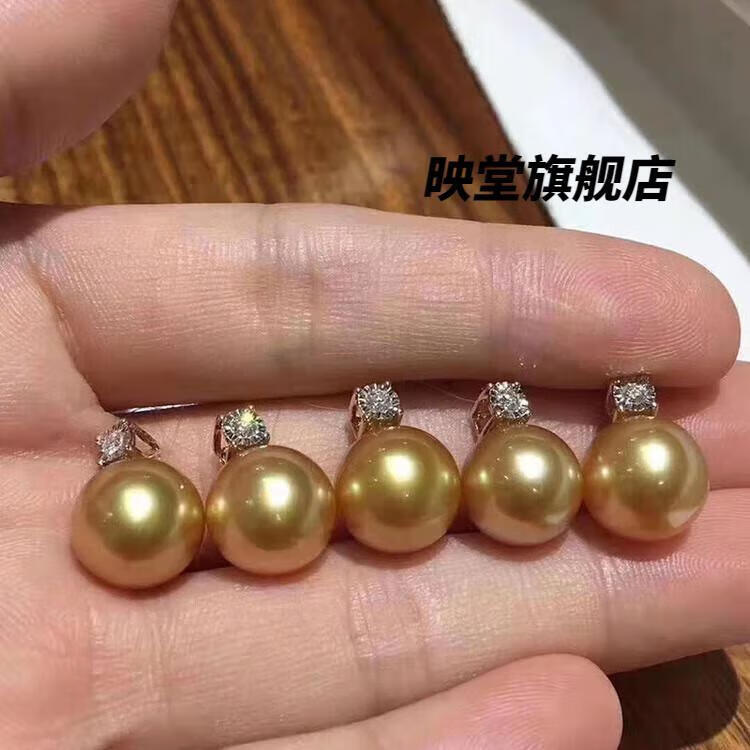 Yu Guojue gold bead pendant seawater South Sea pearl necklace perfect round almost flawless glare 1011mm very slight blemish regular princess head