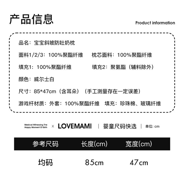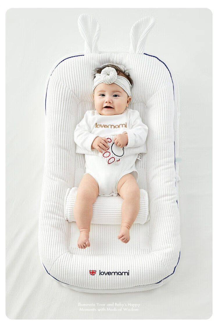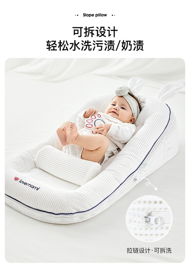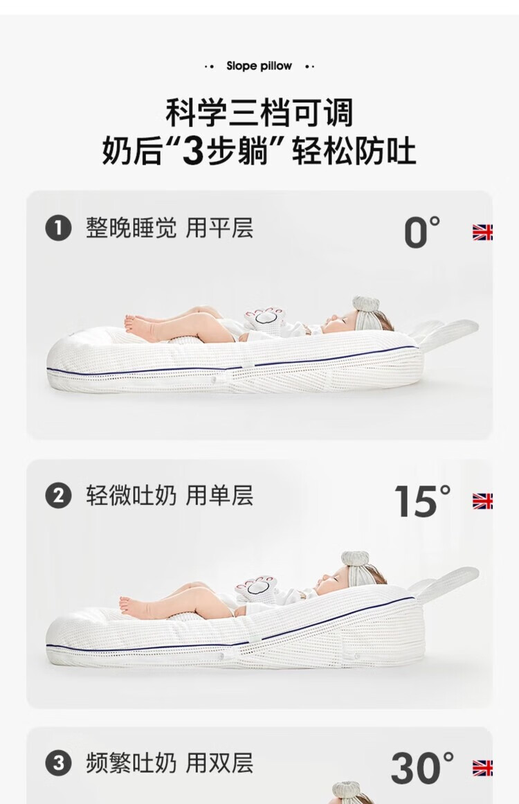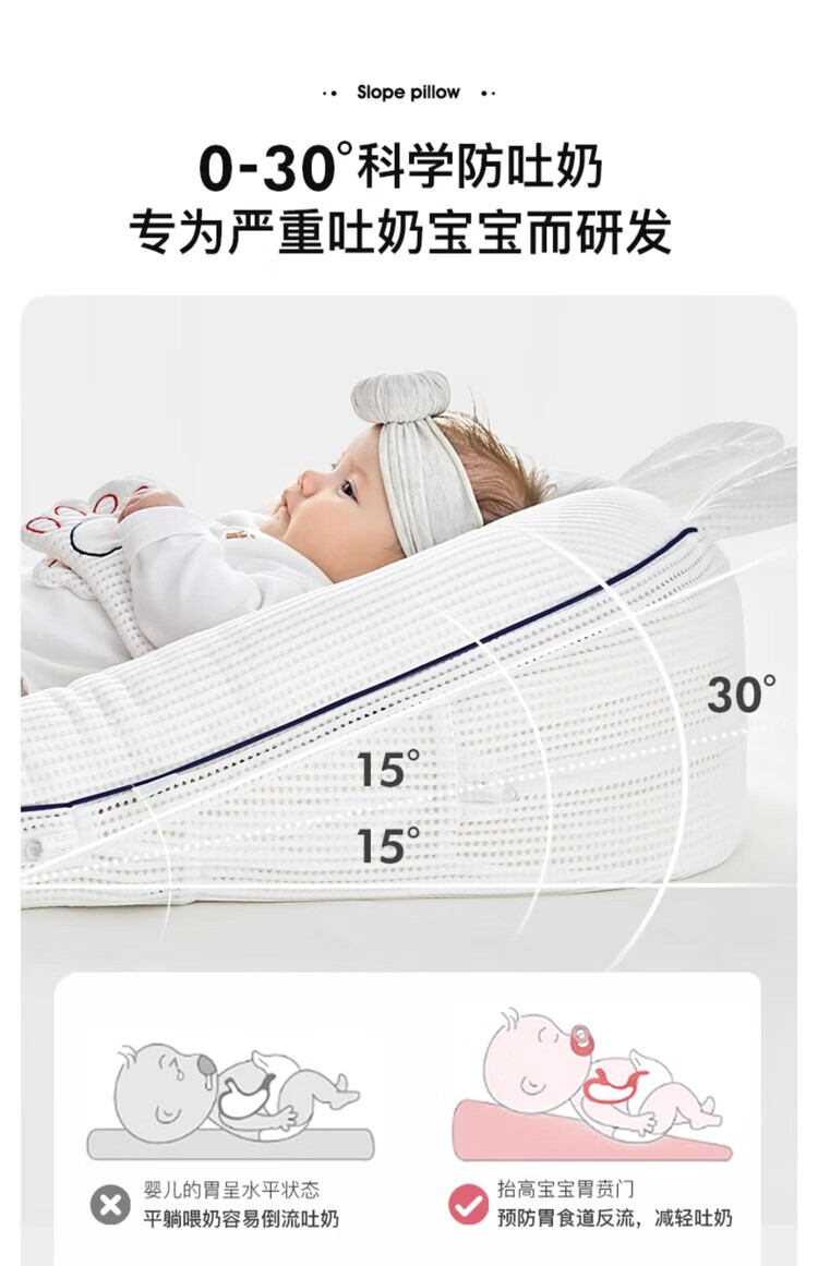 British Slope Pillow Baby Anti-Spitting Slope Mat Baby Bed-in-Bed Newborn Anti-Jumping Sleep Welsh White-Upgraded Large + Baby Blanket Default cm