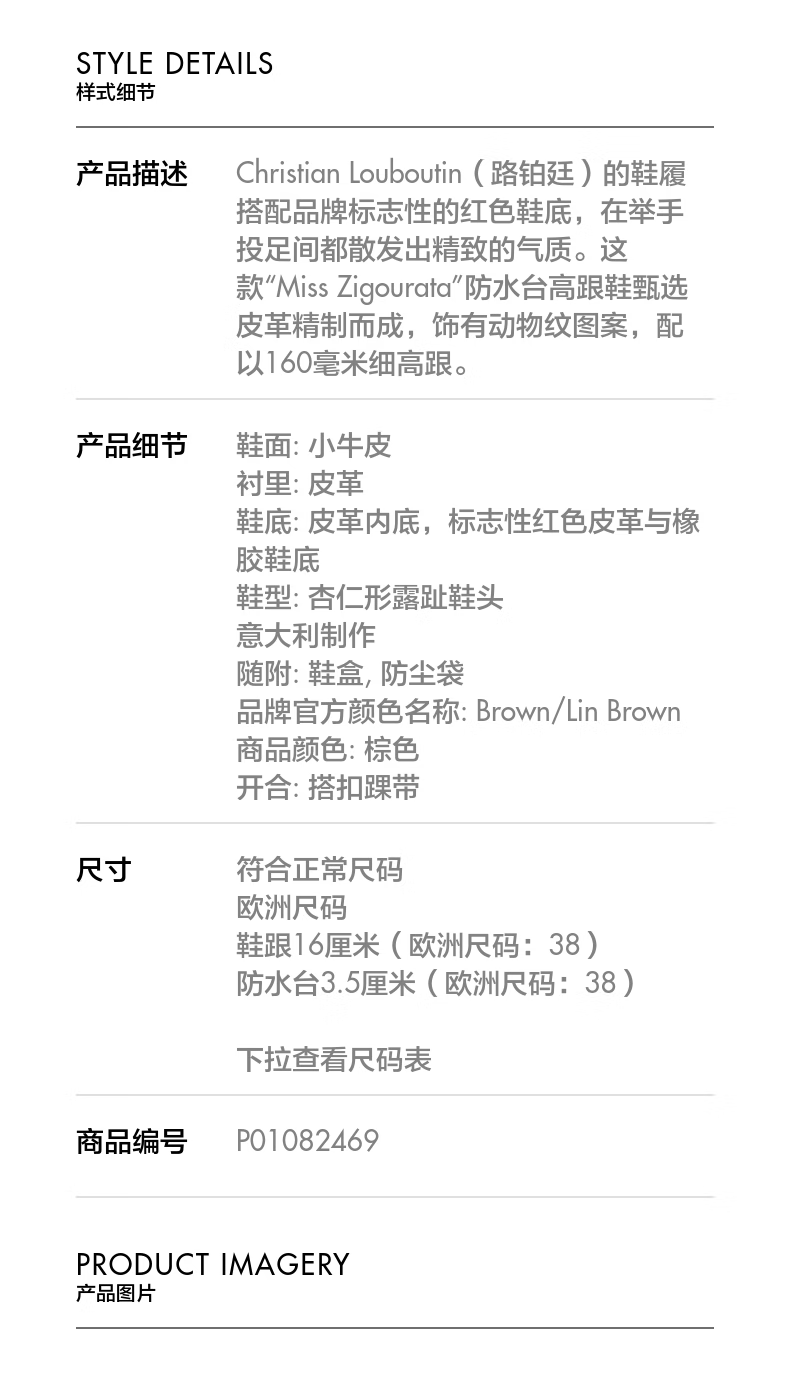 Christian Louboutin New Year's Gift Autumn and Winter New Products Women's Leather Platform High Heels P01082469 Brown 37 CN 37